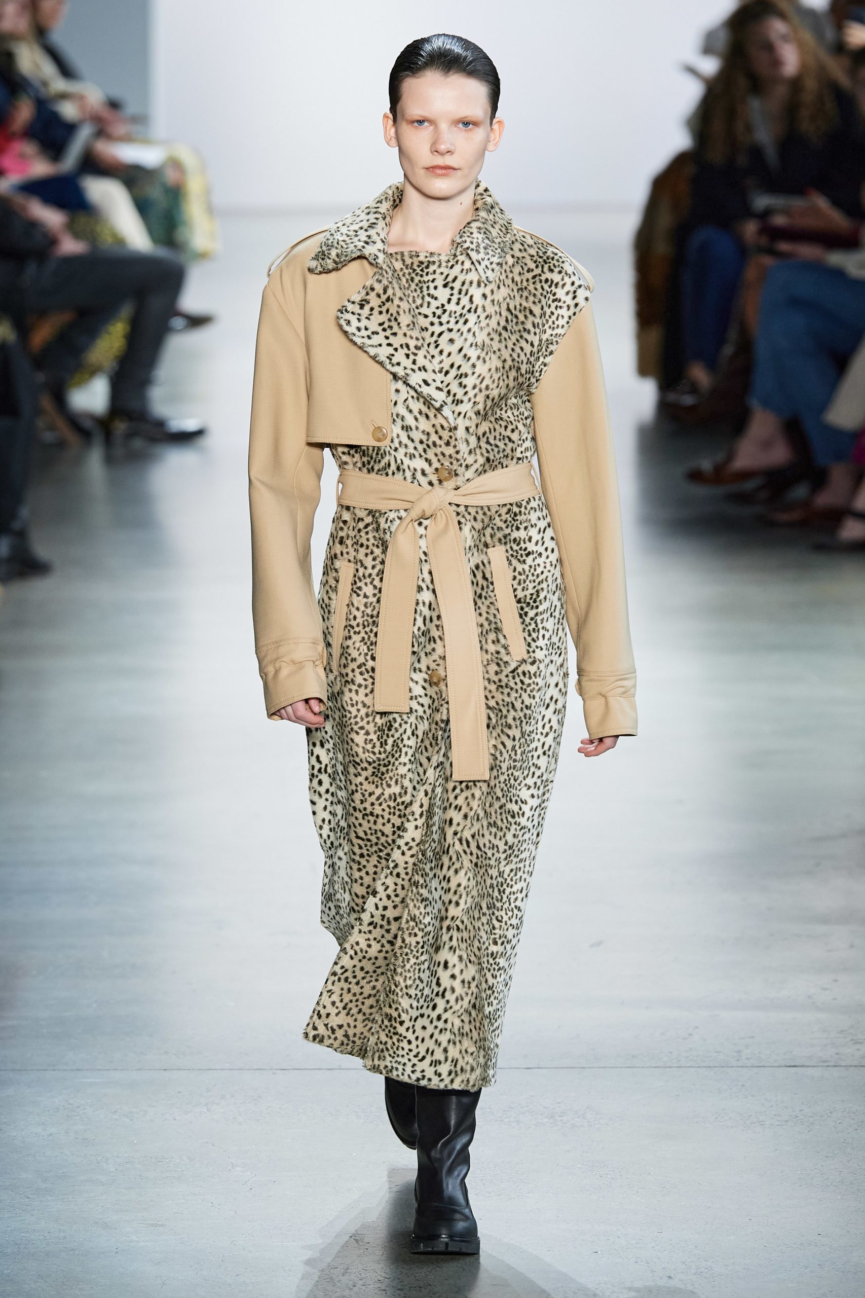We often start designing outerwear well in advance, but in addition to the season’s classics, you need to have in mind what the season’s must-haves will be. This season there is no doubt about the cape or poncho. A choice between these two depending on the brand DNA. Then there are several interesting ways to revisit the trench coat for FW20, especially looking at emerging brands like Monse, Rokh, Moohong. For the trendiest pieces, we start from the red vinyl raincoat to the black leather coat. About shapes, the oversize is the leading one, but also the fitted pretty coat is back in vogue, so you need to know how to make the right product mix.