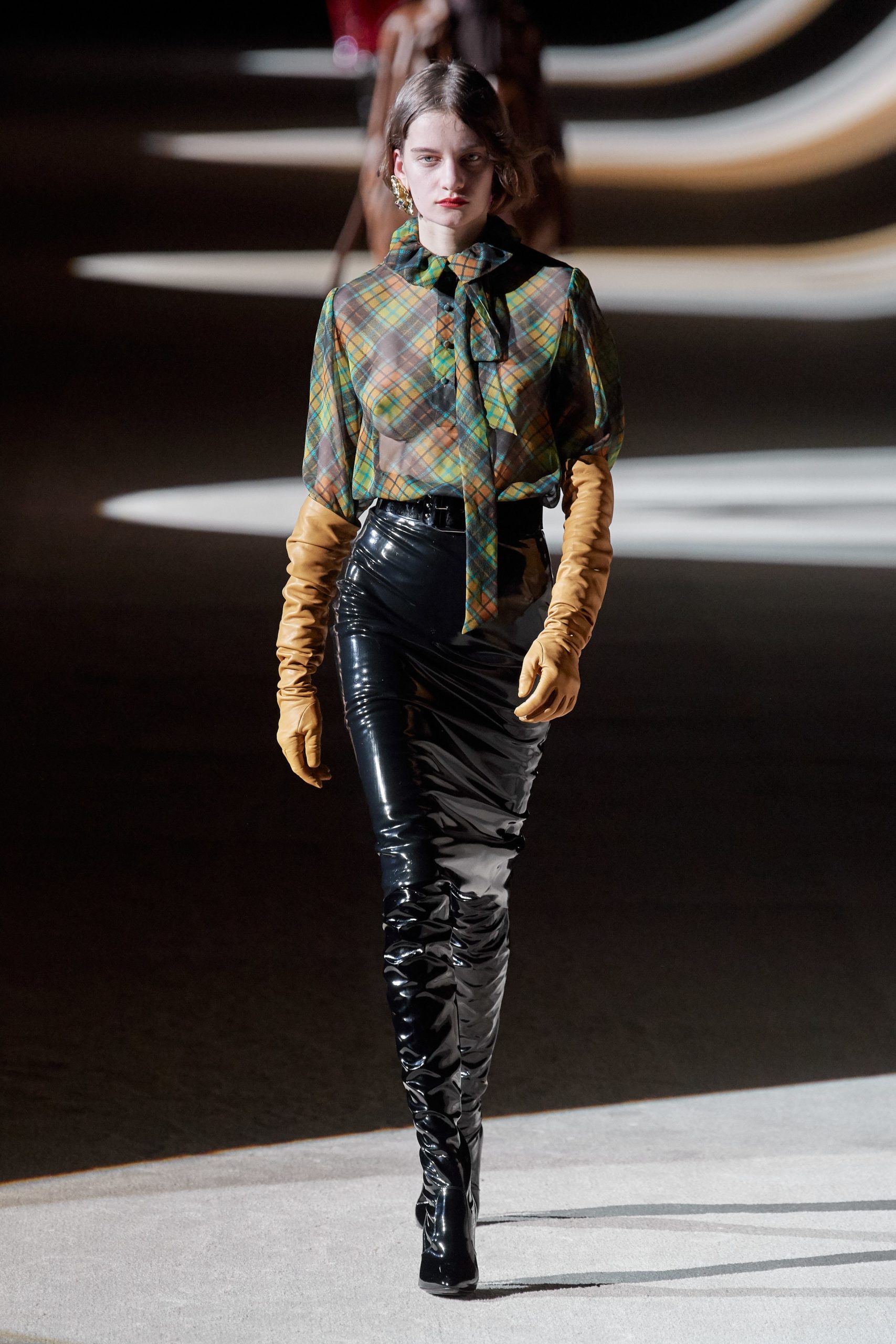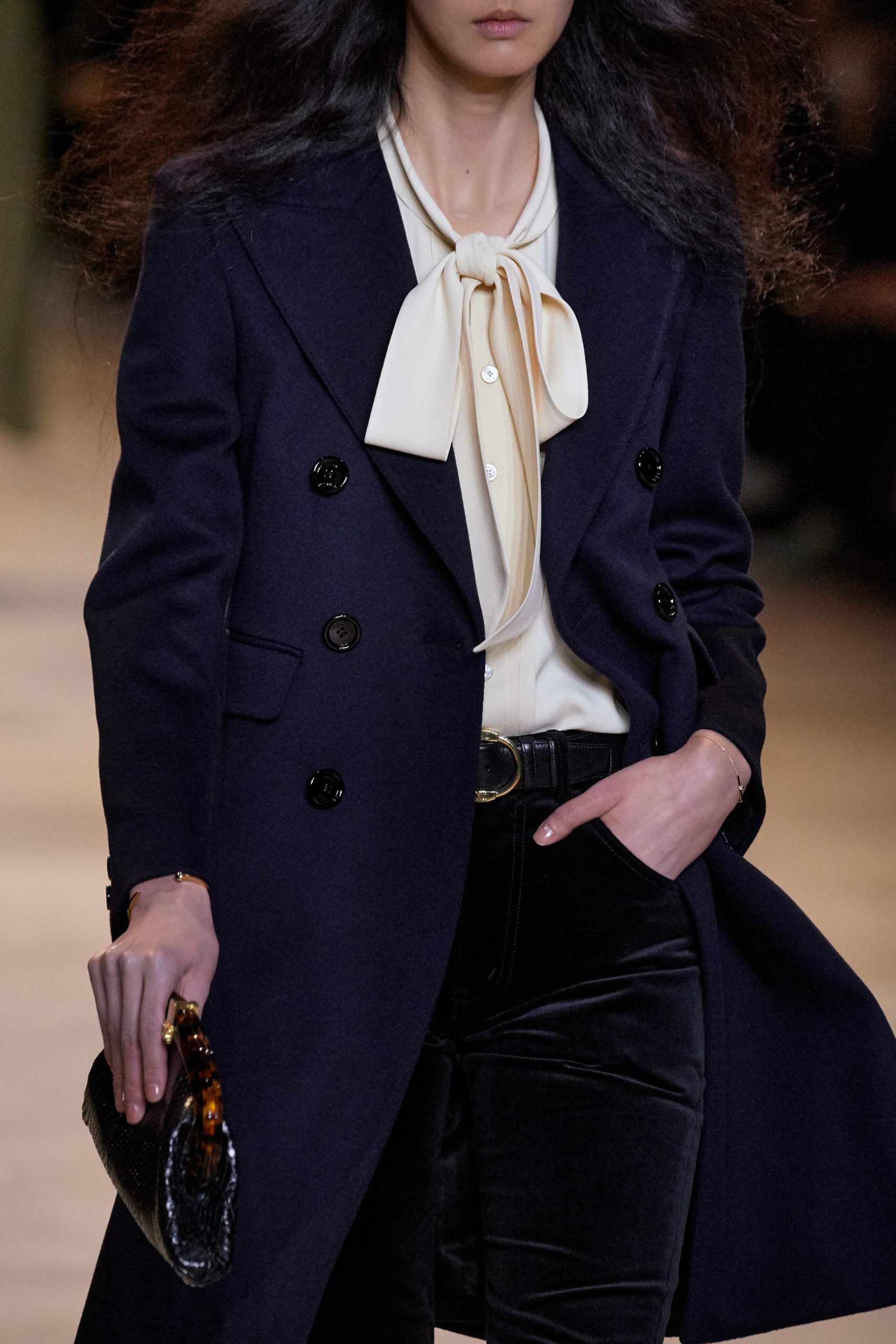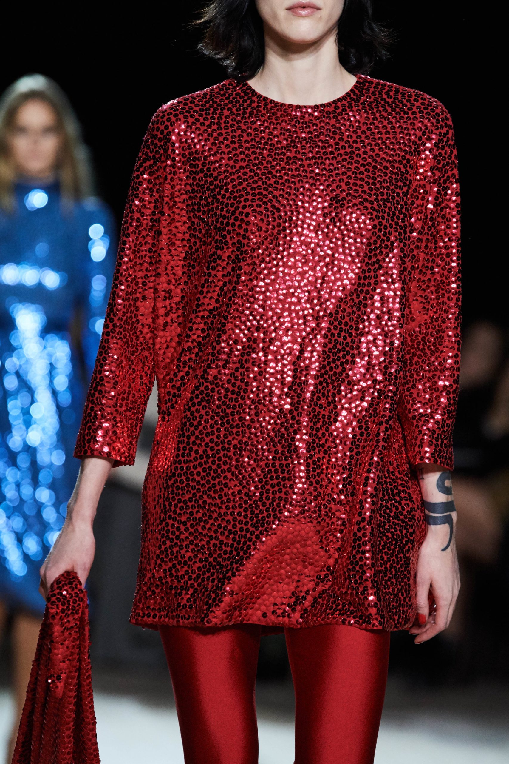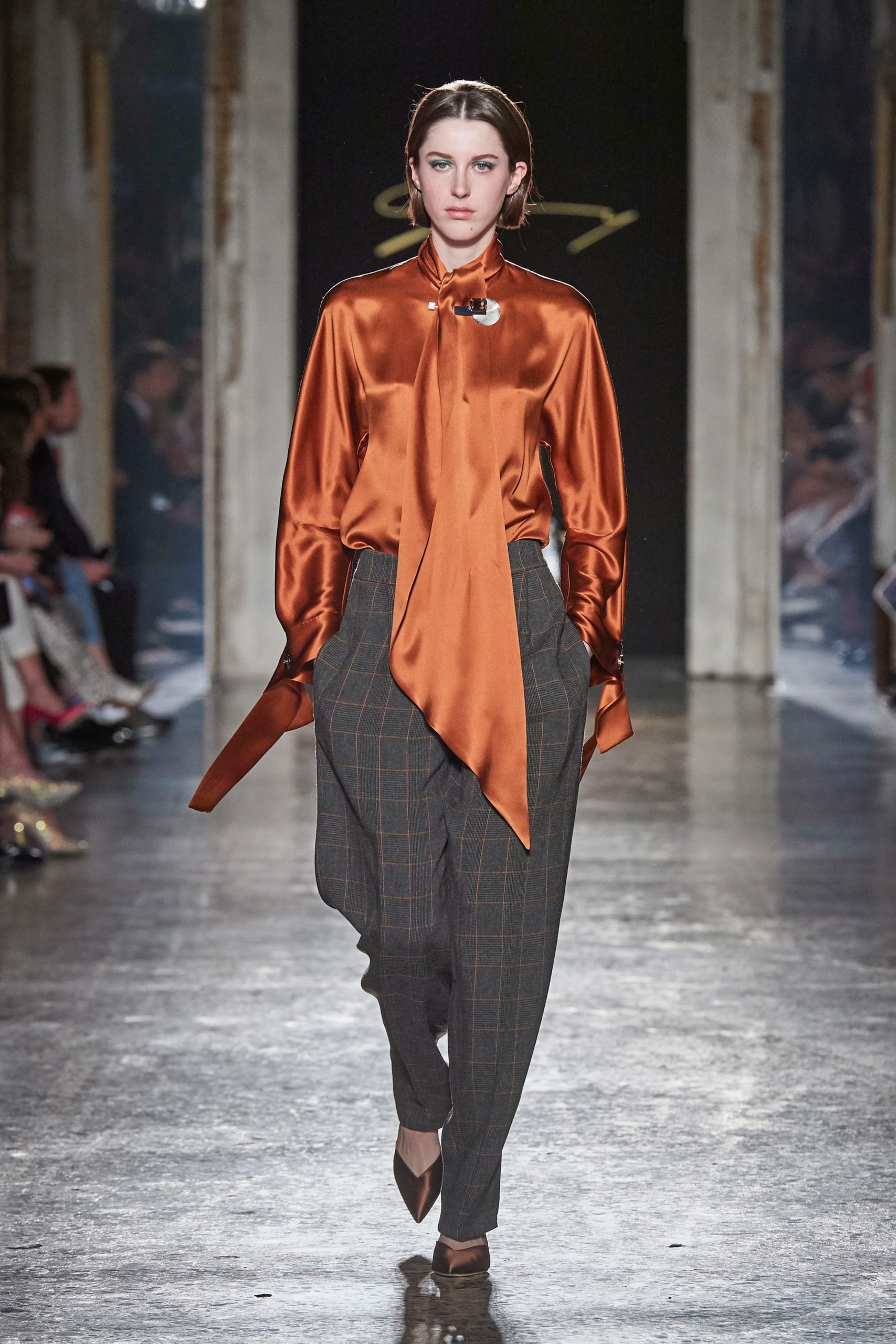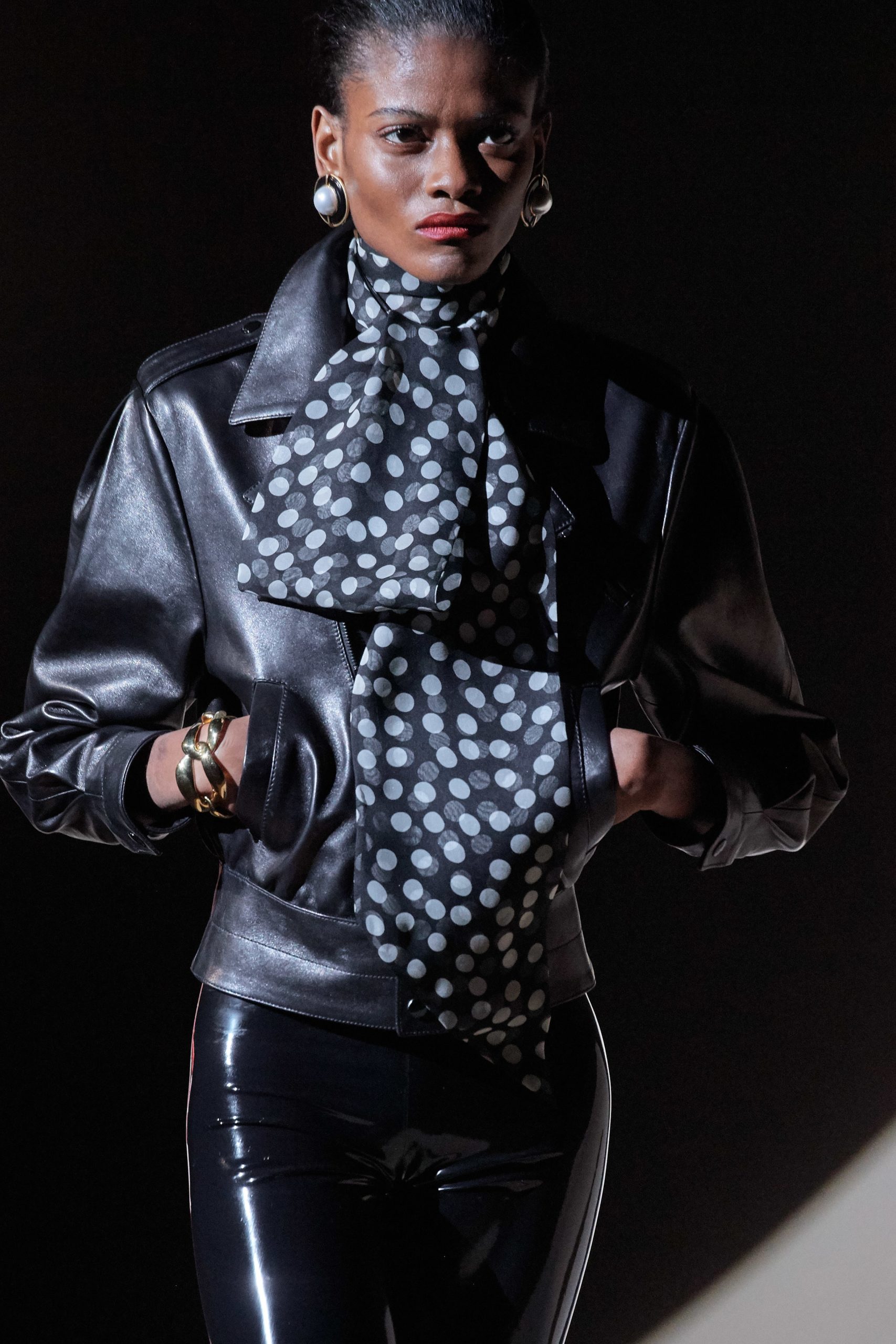 Suits are still a must-have, playing it with a masculine style or a bourgeoise allure, skirt-suits are rising this season. Trousers in the other hand are wider: large legs are quantitatively the most relevant style, but we are going to see an exception with shining leggings thanks to Saint Laurent fashion show. The bourgeoise effect, is bringing back cape coats (+30%), floppy tie collars (+26%), shirt dresses (+25%), jacquard jumpers and cardigans (+2%). Poshness is broken by vibrant pieces of color, lattex shine, and not shy lingerie inspired pieces.