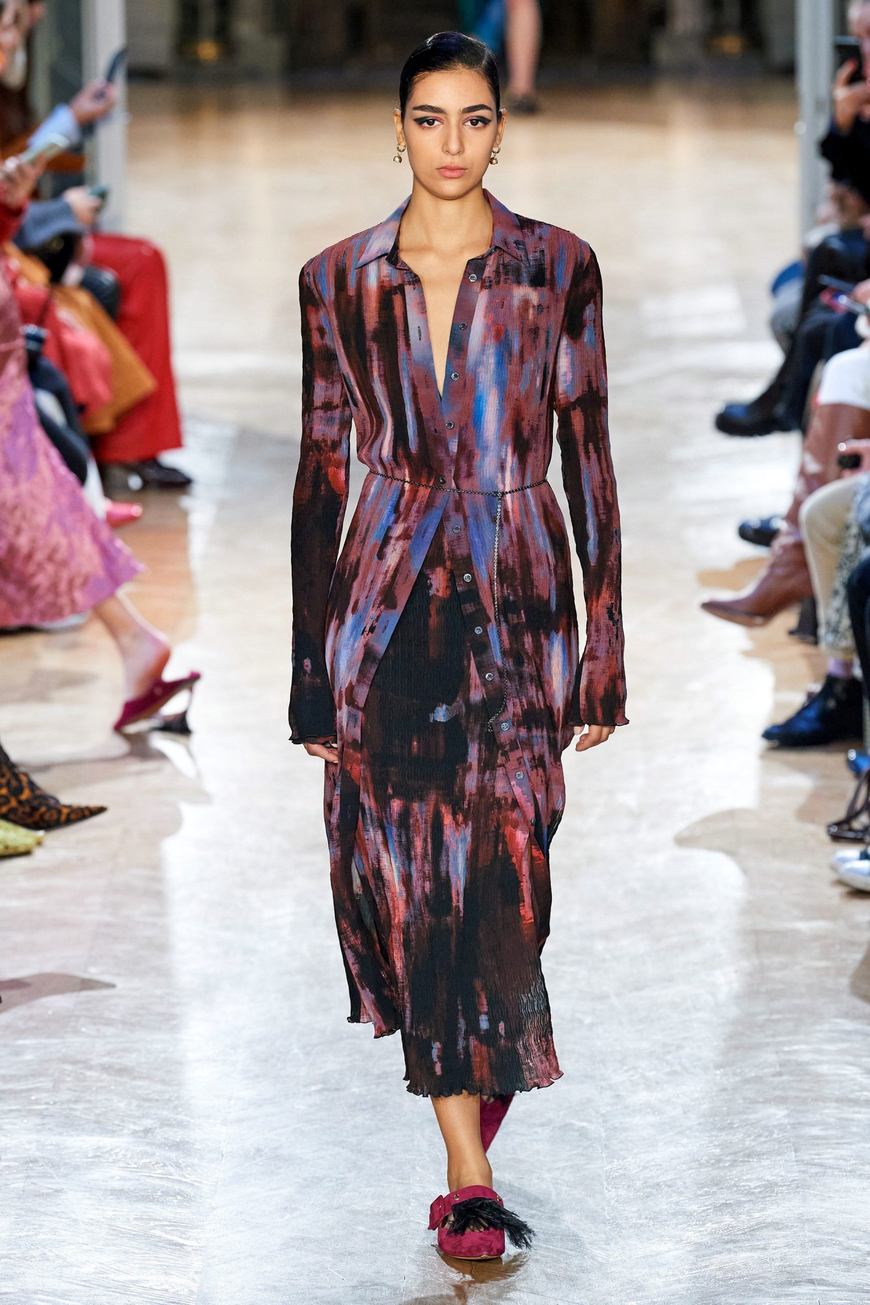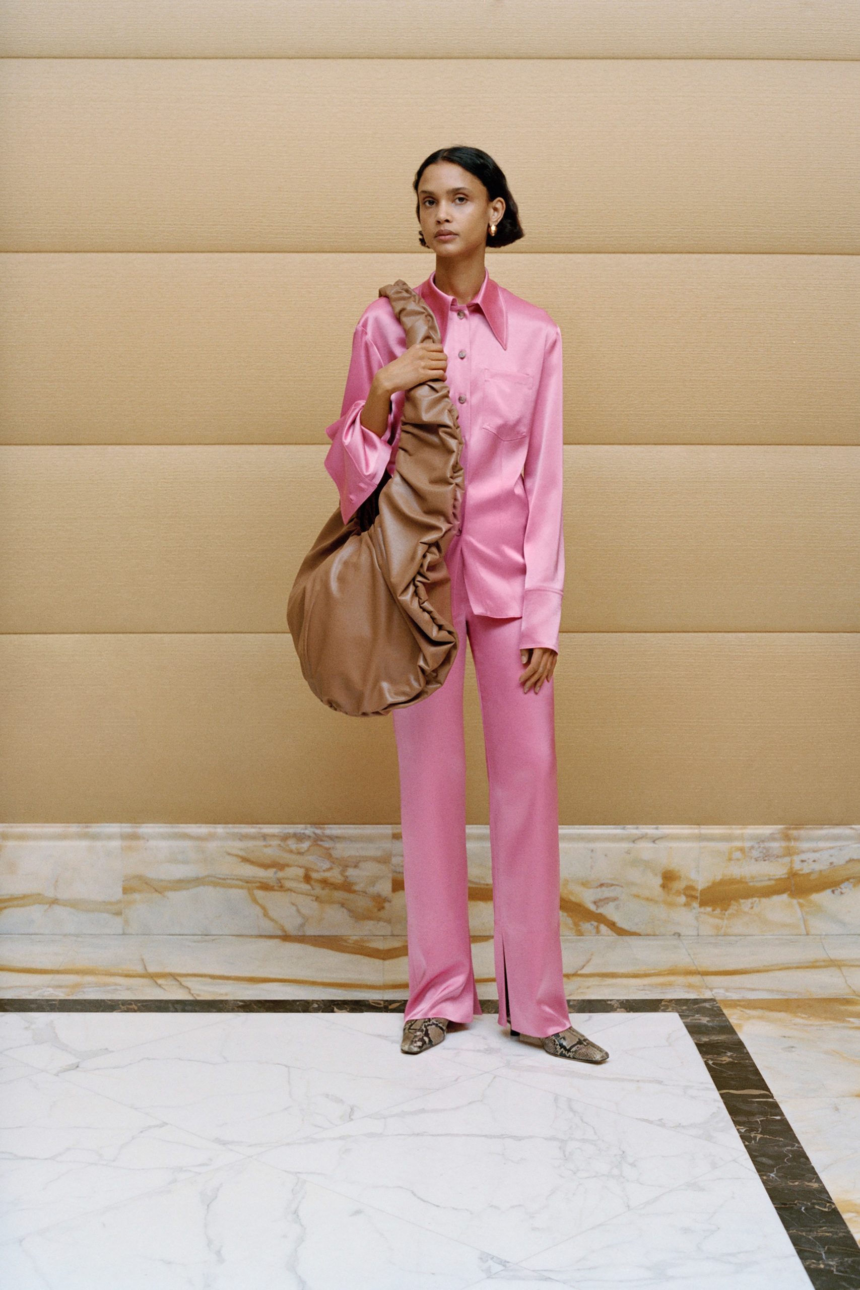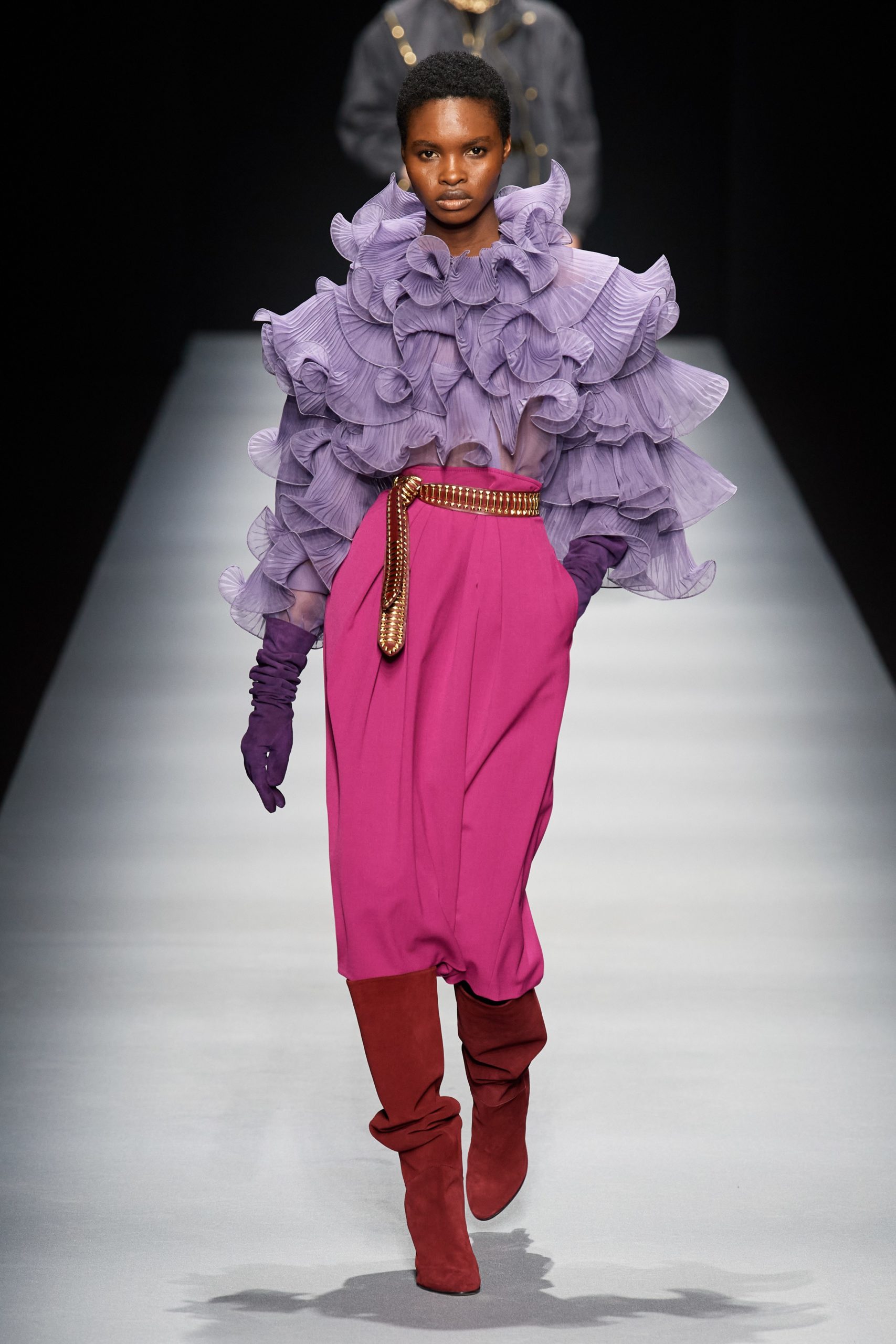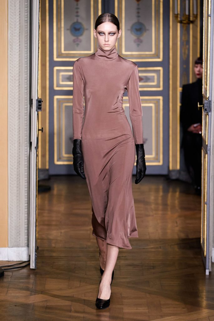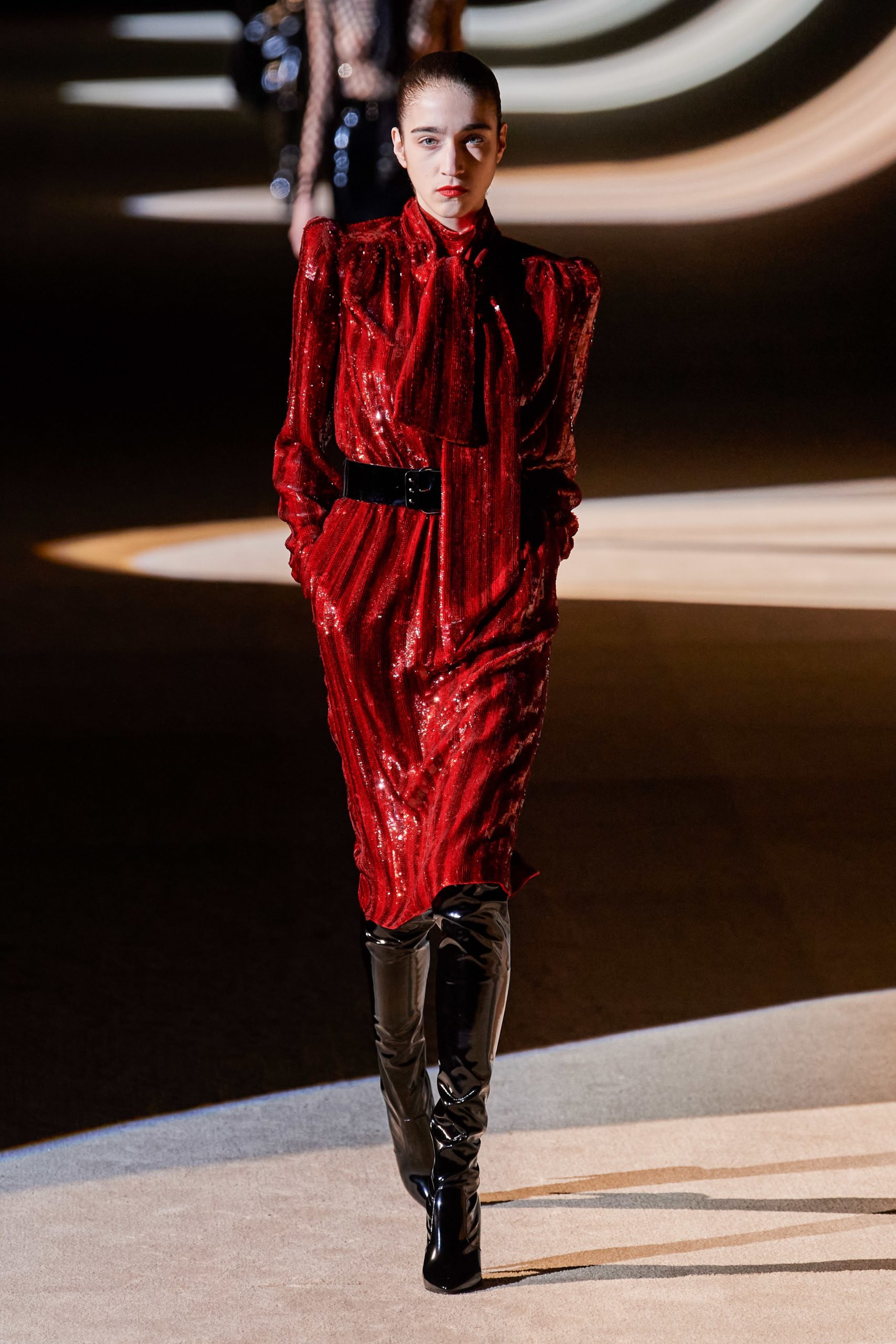 Suits are still a must-have, playing it with a masculine style or a bourgeoise allure, skirt-suits are rising this season. Trousers in the other hand are wider: large legs are quantitatively the most relevant style, but we are going to see an exception with shining leggings thanks to Saint Laurent fashion show. The bourgeoise effect, is bringing back cape coats (+30%), floppy tie collars (+26%), shirt dresses (+25%), jacquard jumpers and cardigans (+2%). Poshness is broken by vibrant pieces of color, lattex shine, and not shy lingerie inspired pieces.