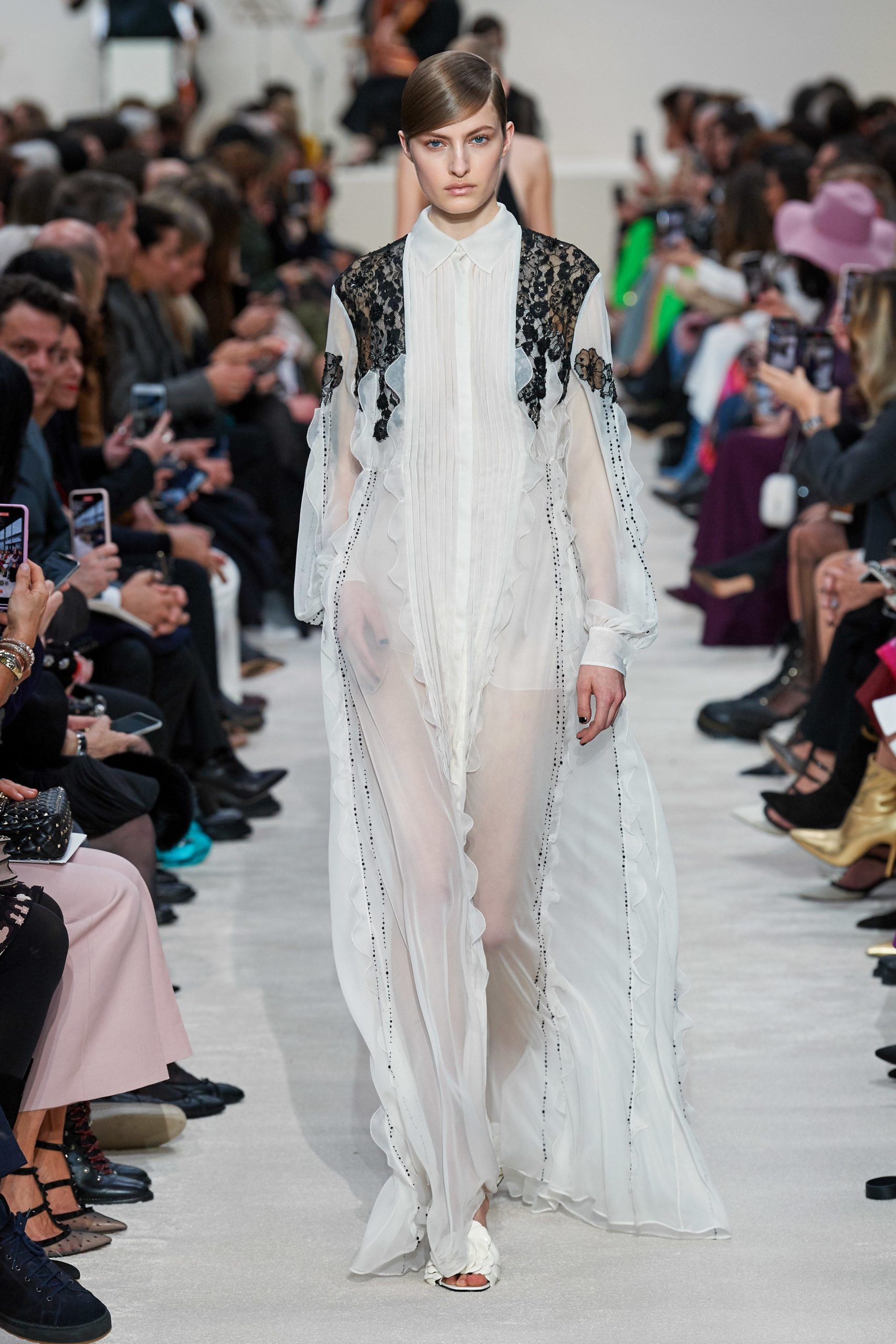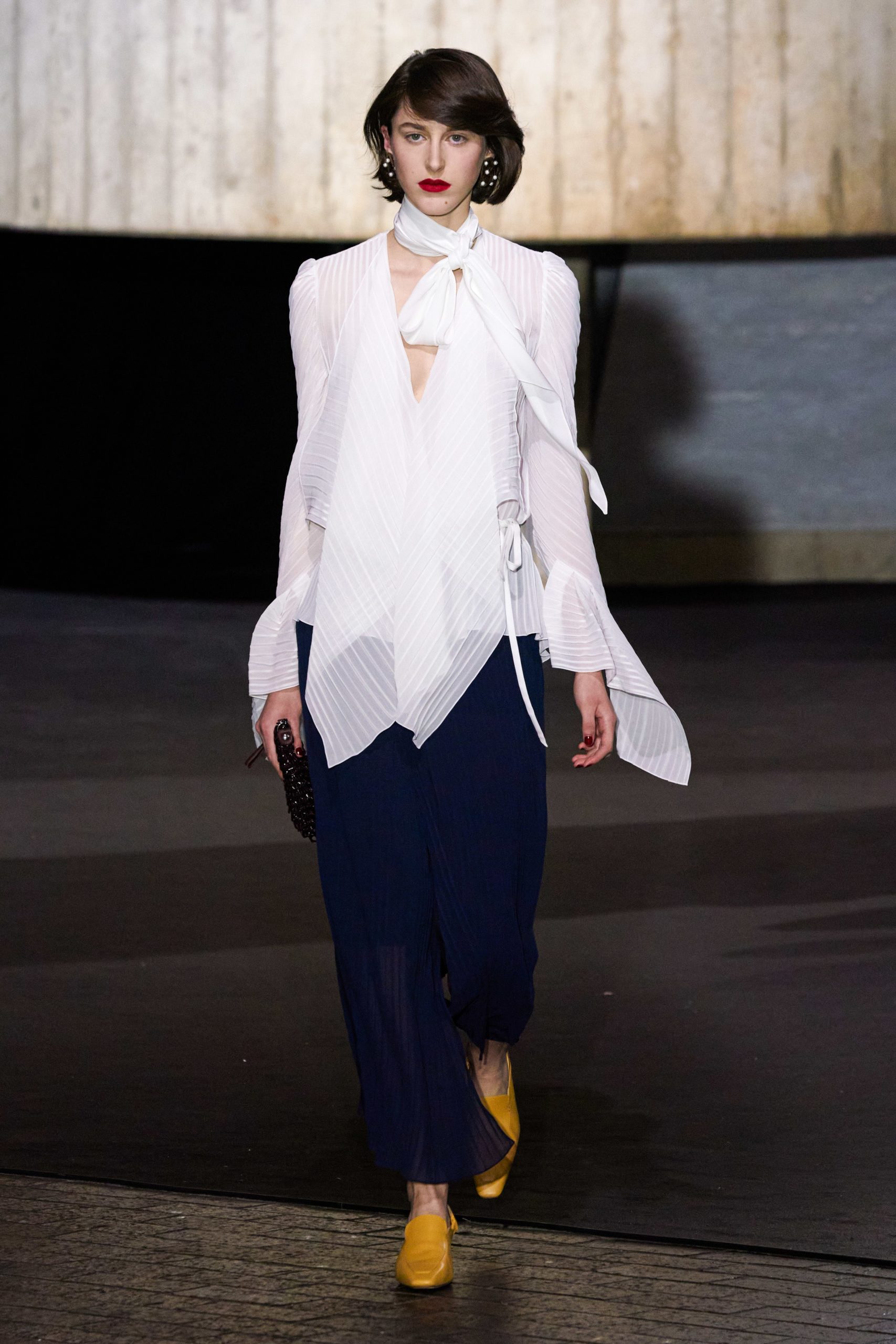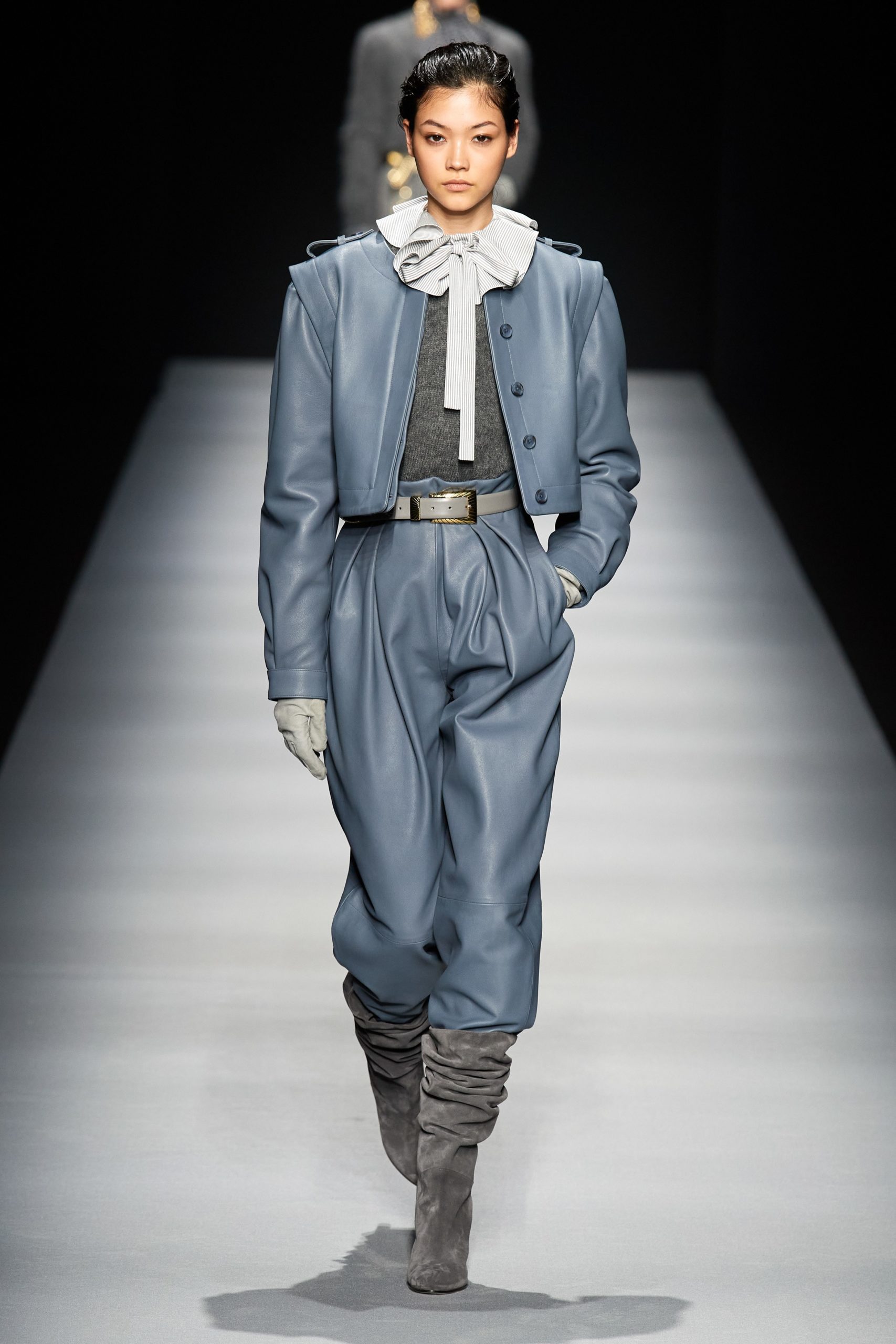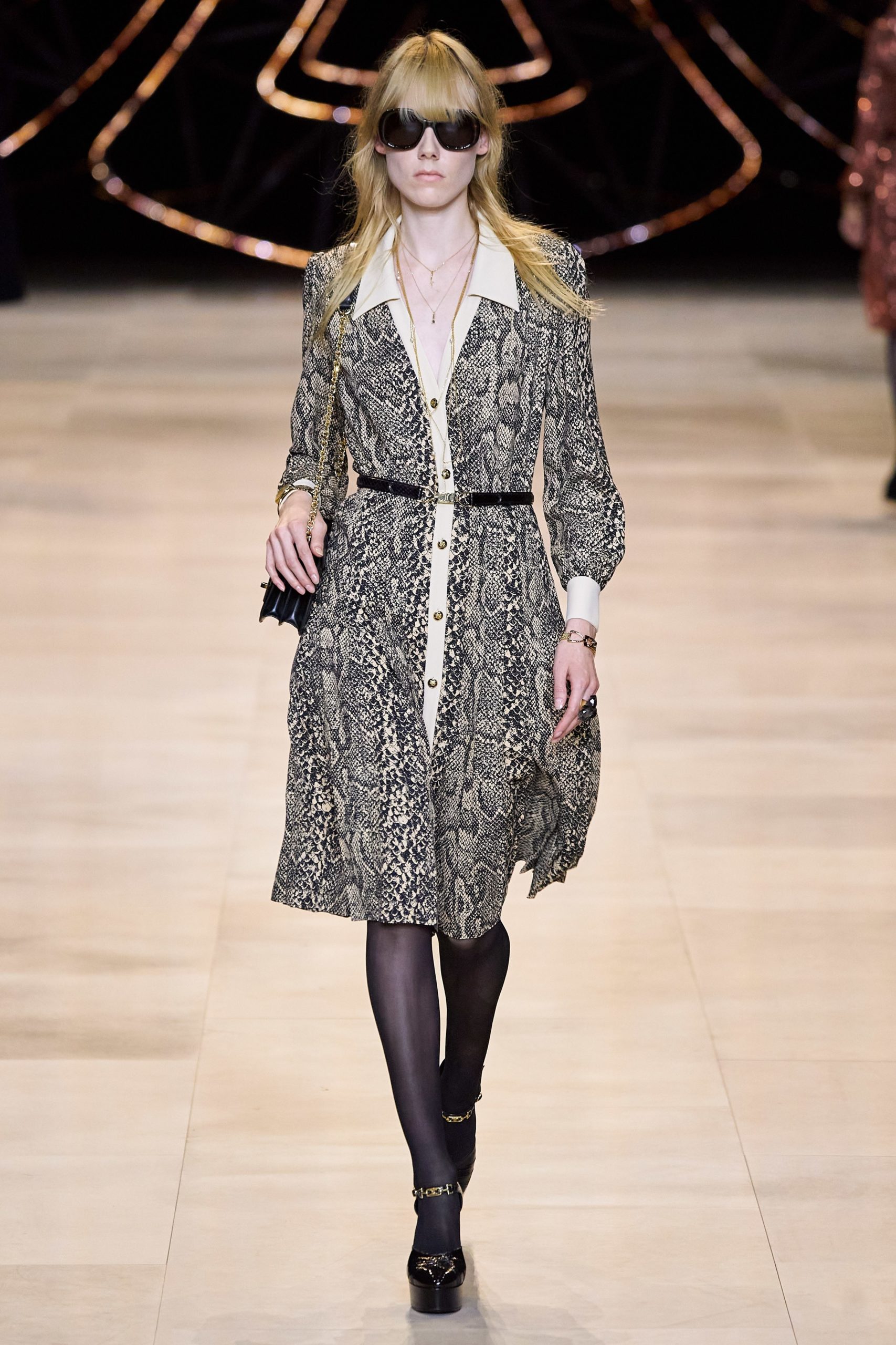 Suits are still a must-have, playing it with a masculine style or a bourgeoise allure, skirt-suits are rising this season. Trousers in the other hand are wider: large legs are quantitatively the most relevant style, but we are going to see an exception with shining leggings thanks to Saint Laurent fashion show. The bourgeoise effect, is bringing back cape coats (+30%), floppy tie collars (+26%), shirt dresses (+25%), jacquard jumpers and cardigans (+2%). Poshness is broken by vibrant pieces of color, lattex shine, and not shy lingerie inspired pieces.