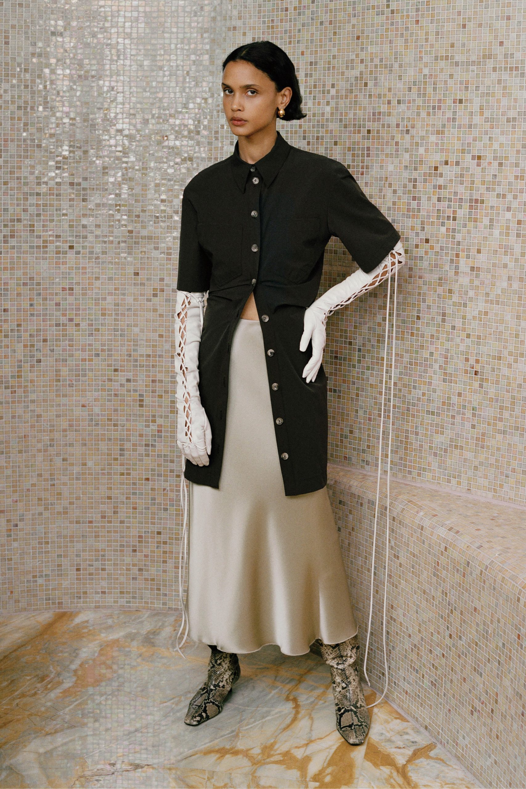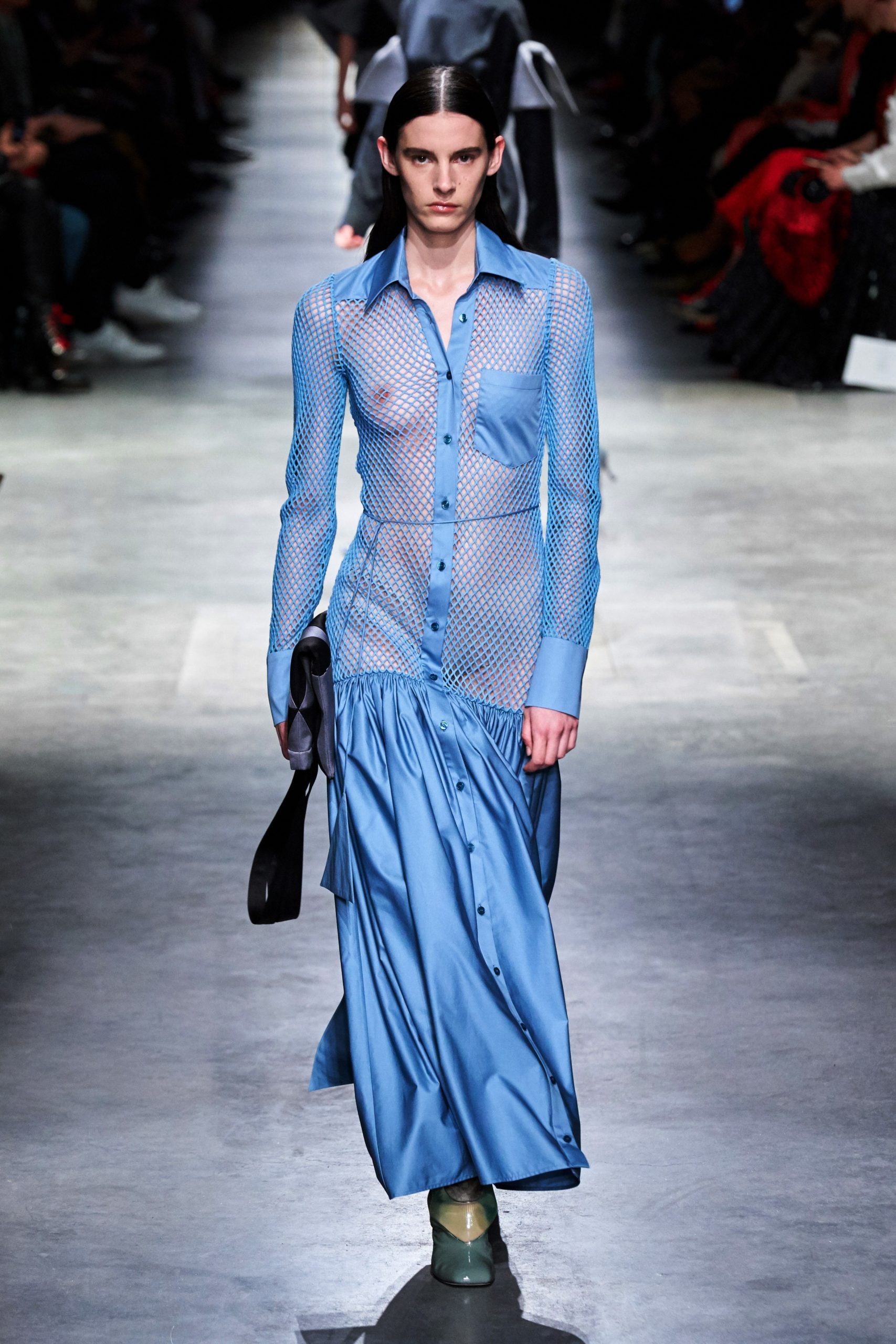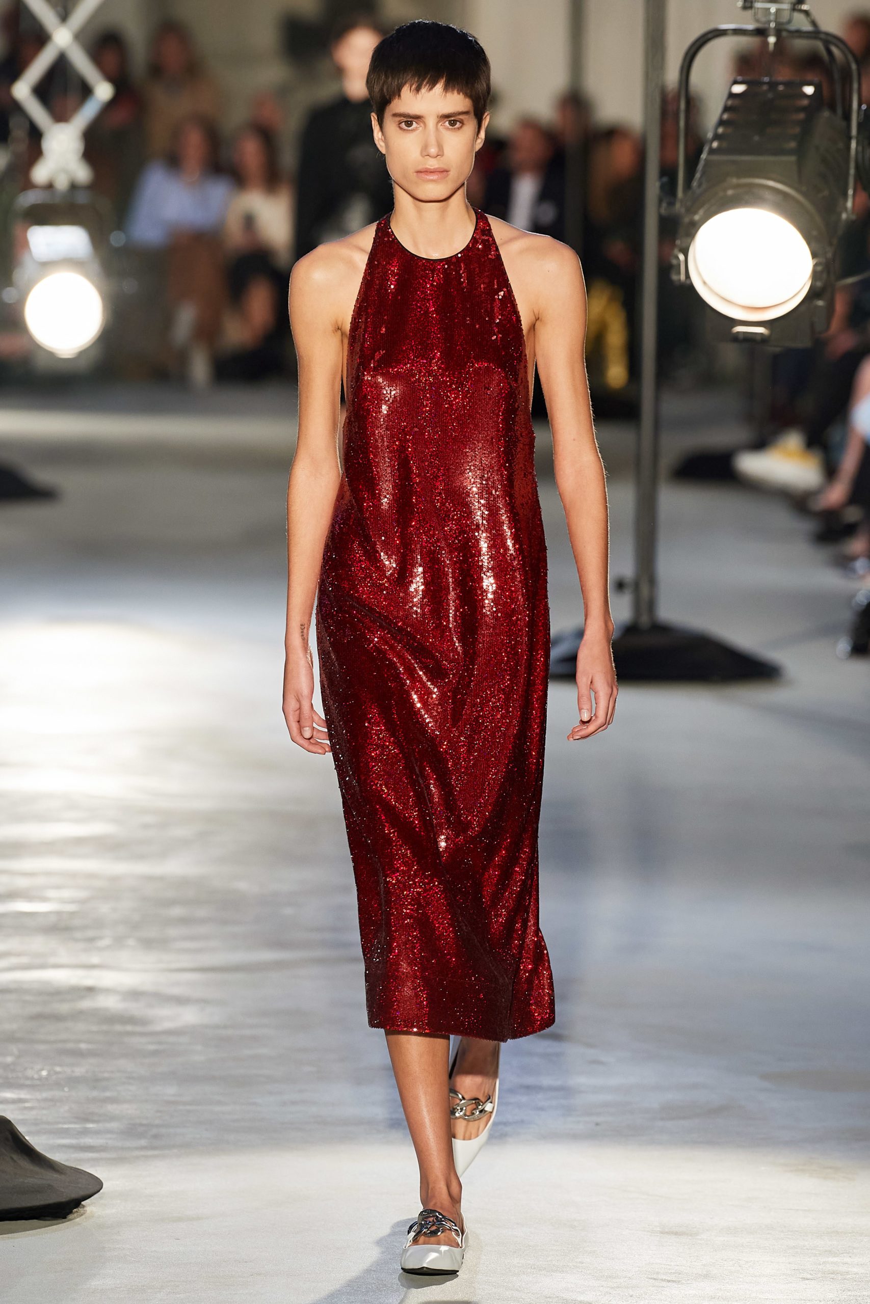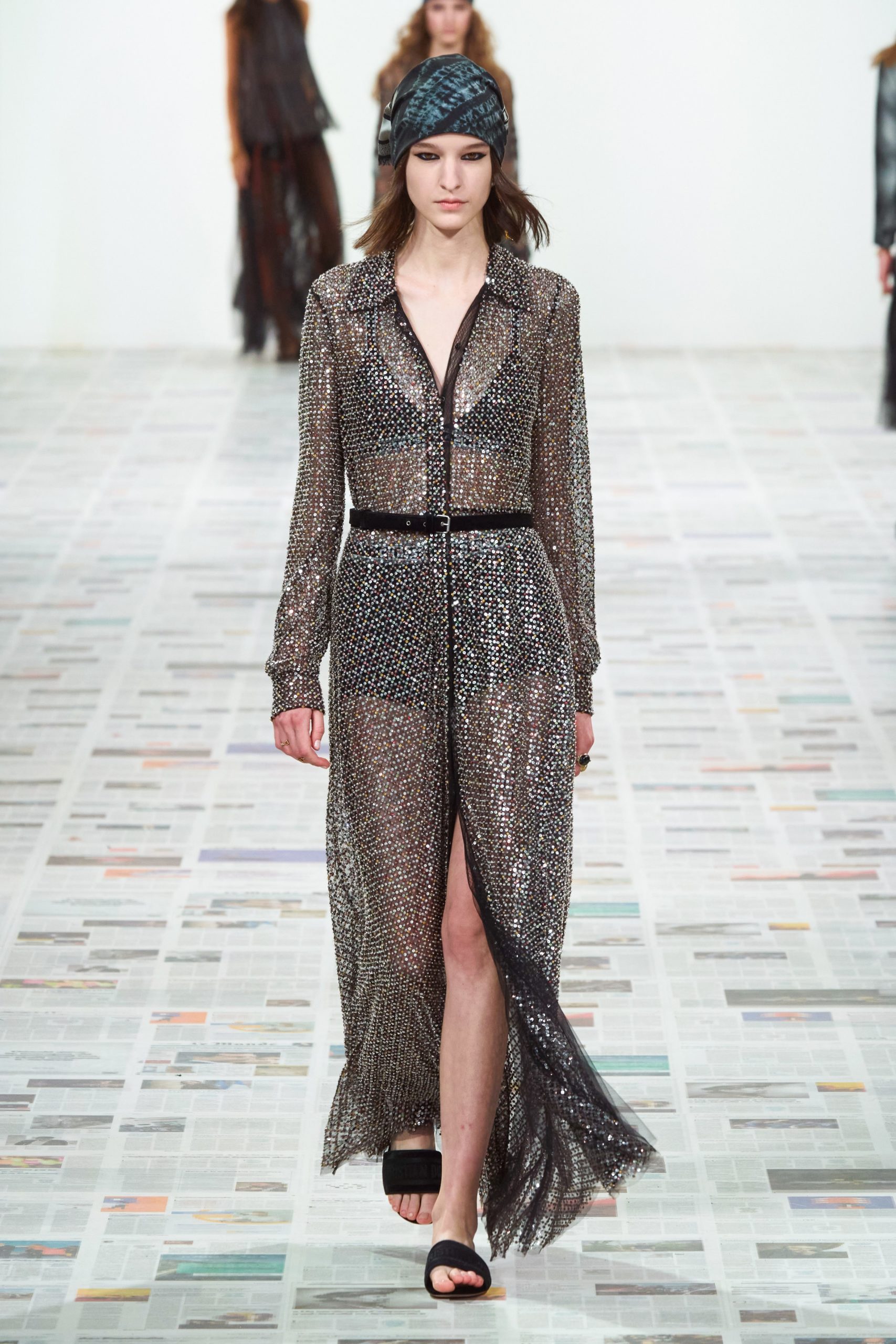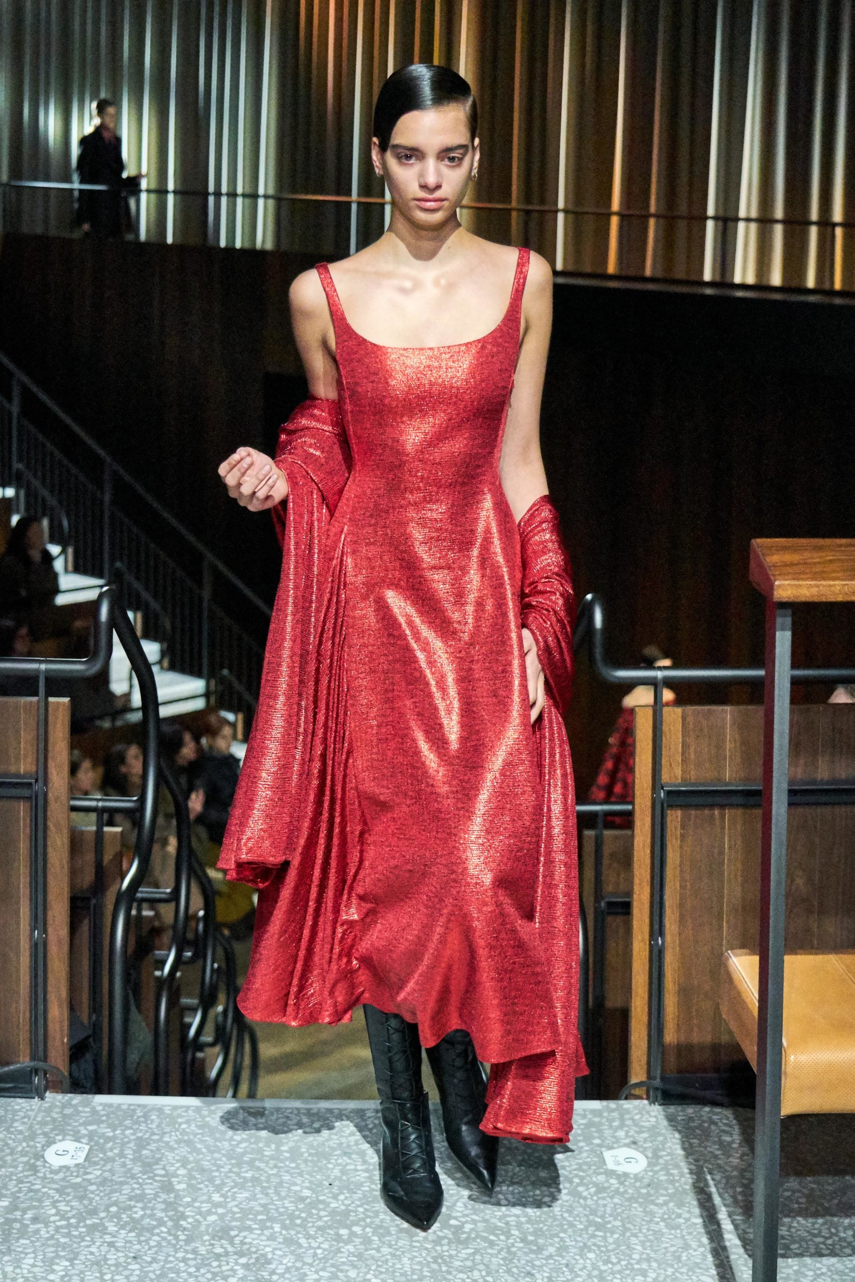 Suits are still a must-have, playing it with a masculine style or a bourgeoise allure, skirt-suits are rising this season. Trousers in the other hand are wider: large legs are quantitatively the most relevant style, but we are going to see an exception with shining leggings thanks to Saint Laurent fashion show. The bourgeoise effect, is bringing back cape coats (+30%), floppy tie collars (+26%), shirt dresses (+25%), jacquard jumpers and cardigans (+2%). Poshness is broken by vibrant pieces of color, lattex shine, and not shy lingerie inspired pieces.