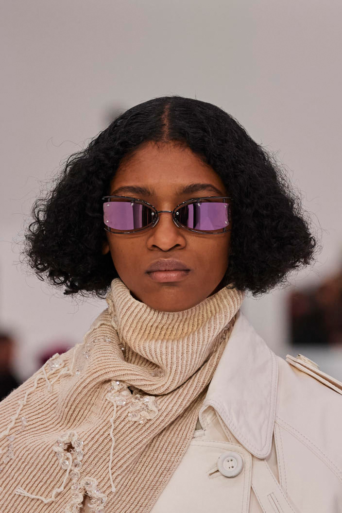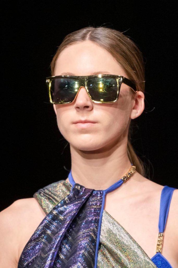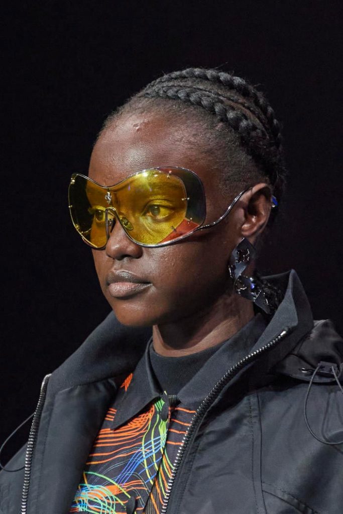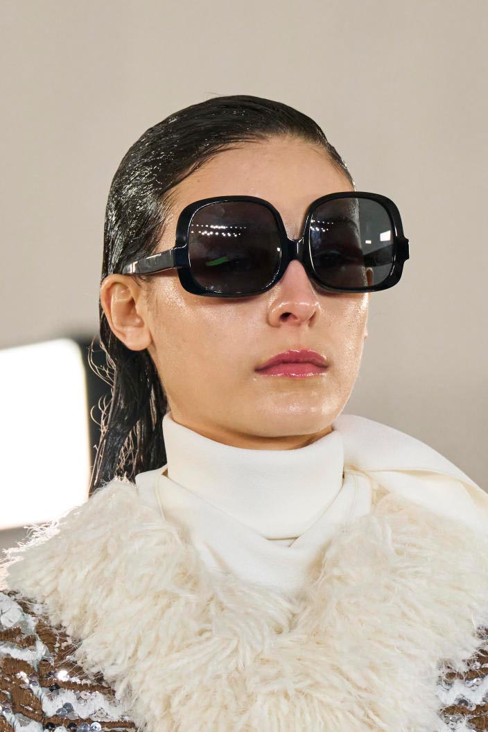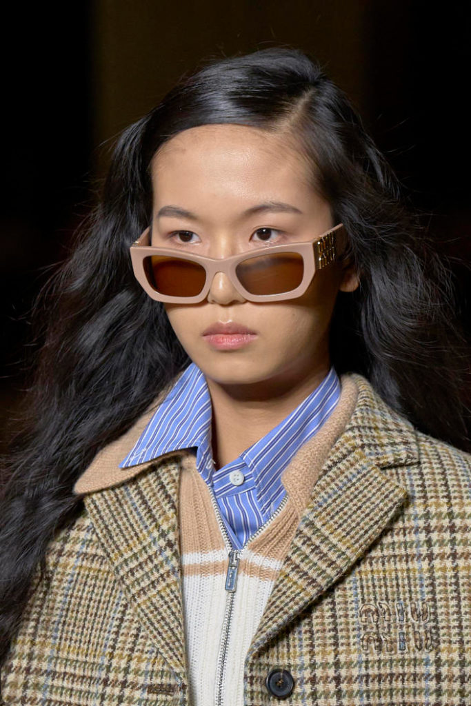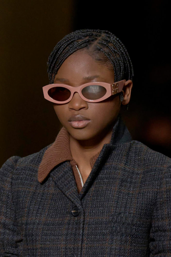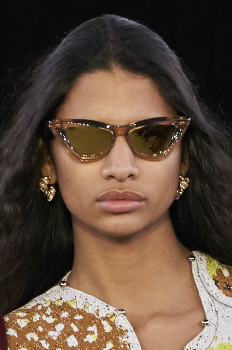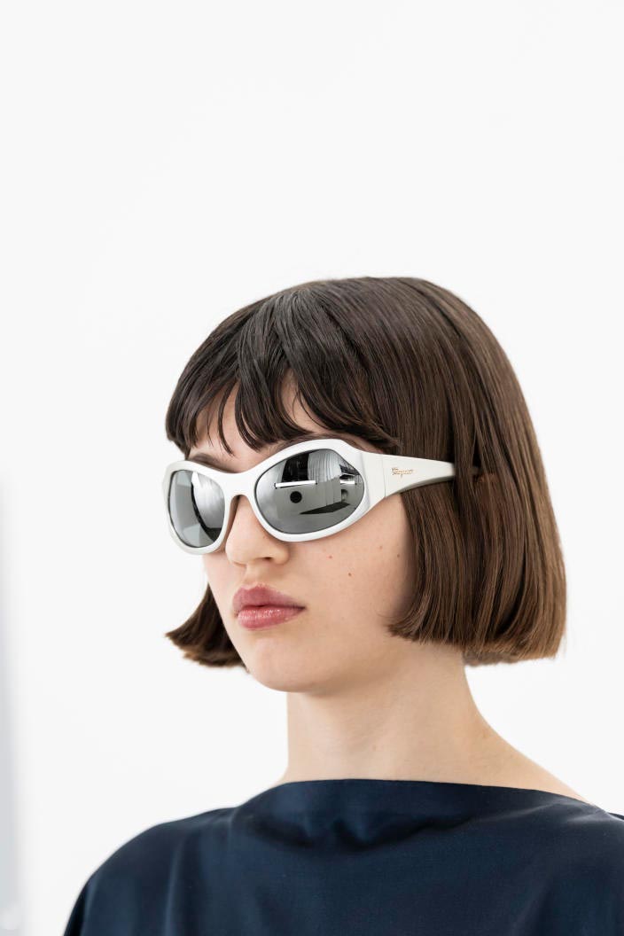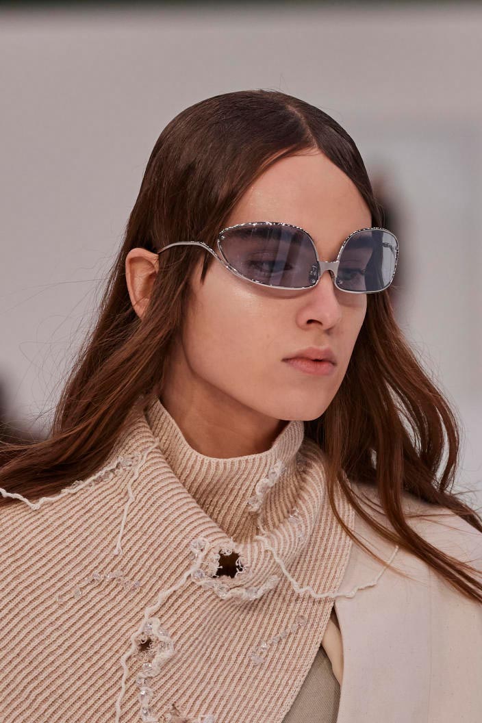 The runways have provided us with a great number of iconic eyewear styles. The biggest trends showed shields, racing styles and cat eyes. All of these trends strive for an empowered femininity and enhance the strong traits of womanhood. Other favorites include stylized round silhouettes and creative upgrades of large and angular retro frames. The most edgy trend was composed by “upside-down” styles, innovative transparencies and barely-there Y2K frames. Altogether, the season provided lots of innovation and eyewear that seems more fashion-forward than ever. Most models incorporate a distinctly futuristic feel and feel appropriate for apocalyptic post-war sceneries, as well as the uncertain metaverse. Clashing such bold shades with hyper feminine and nostalgic silhouettes, constructed in soft and drapes materials, creates an exciting contrast this season and depicts the duality of femininity, balanced between gentleness and power.