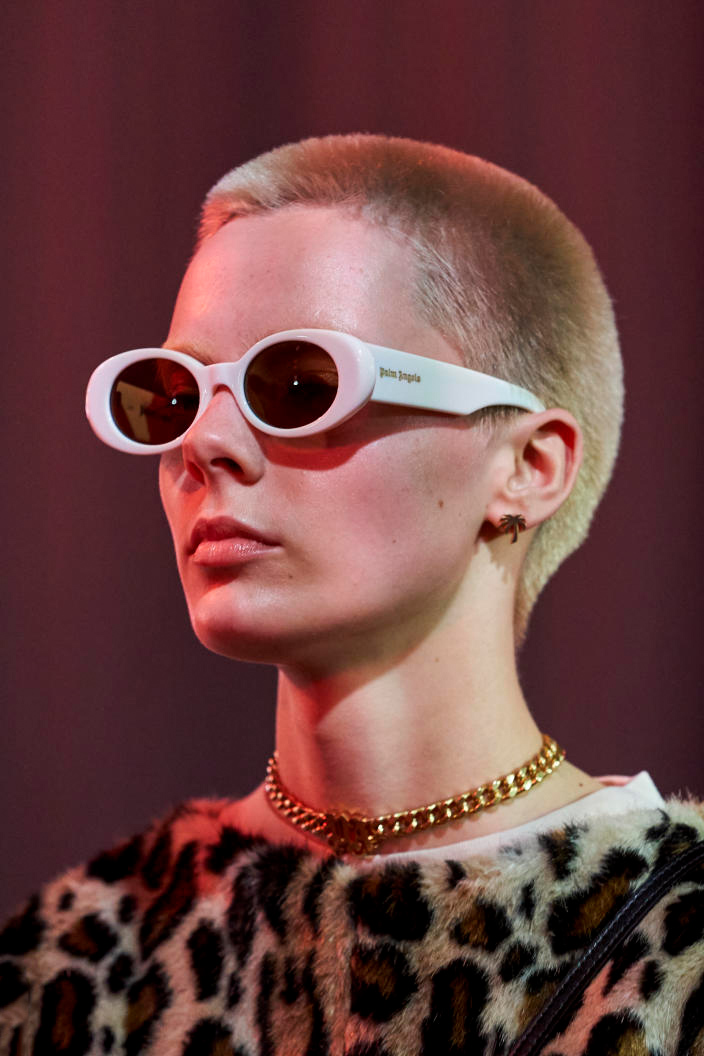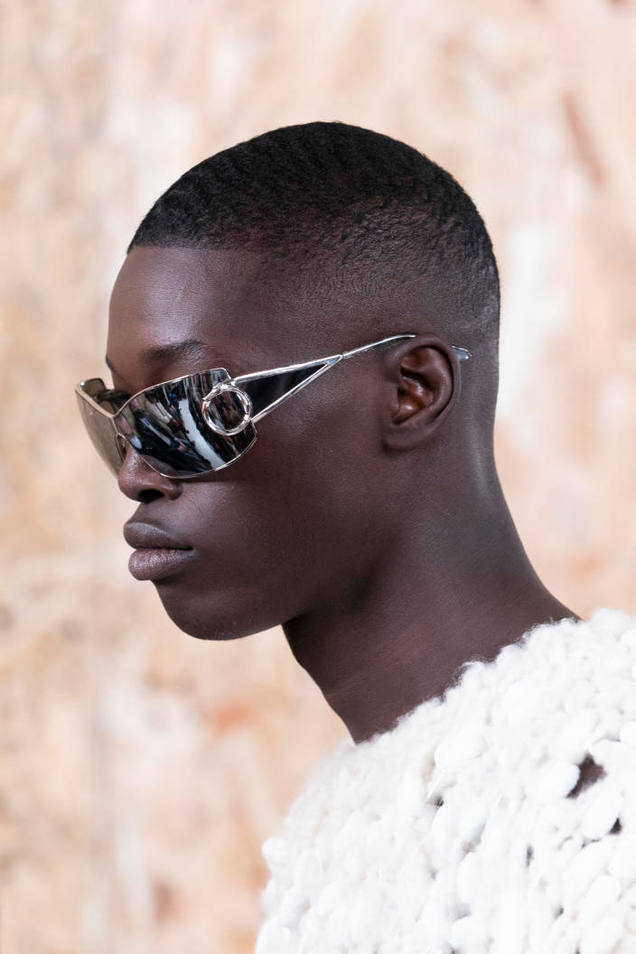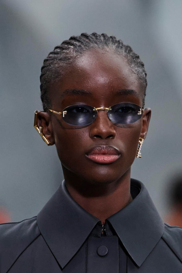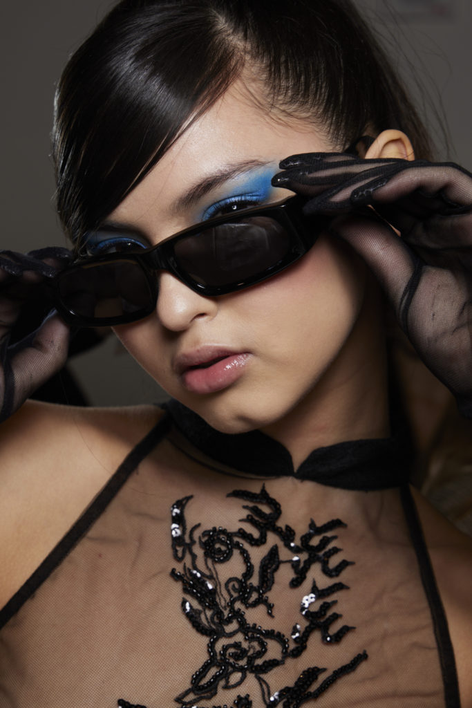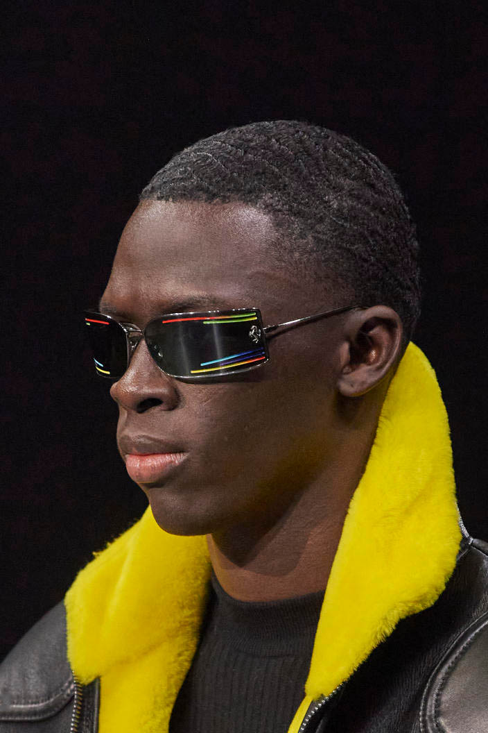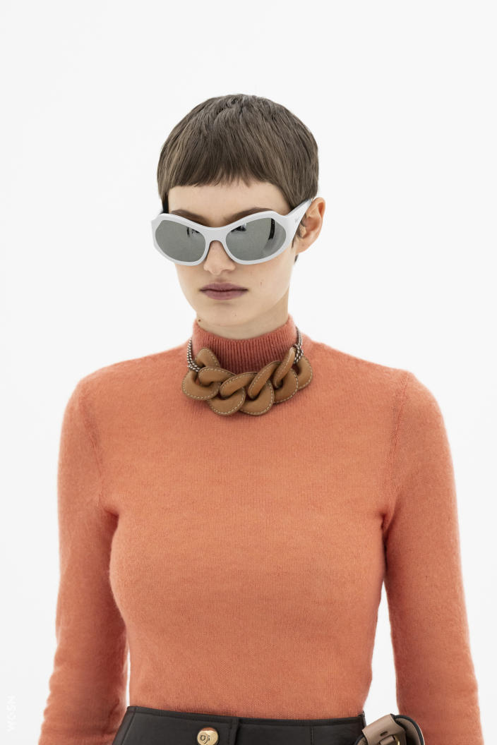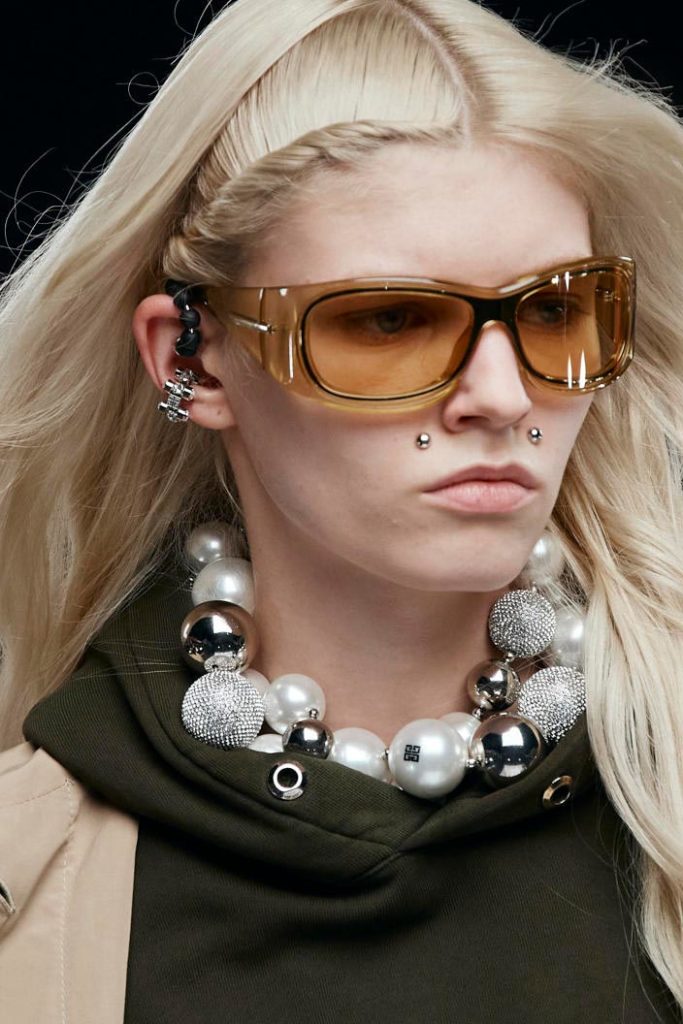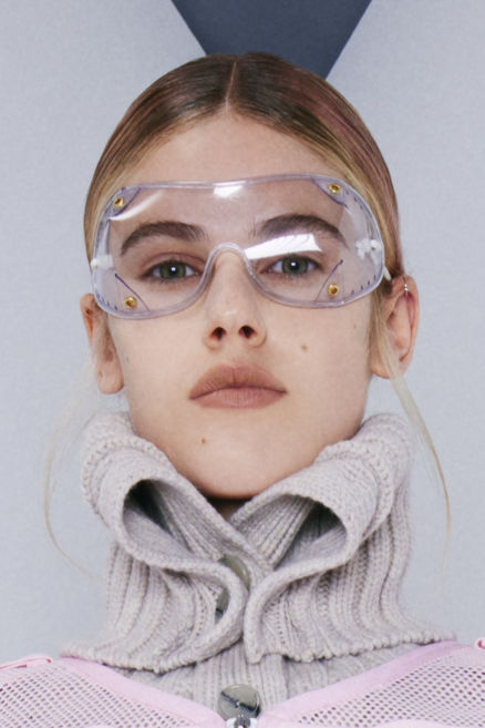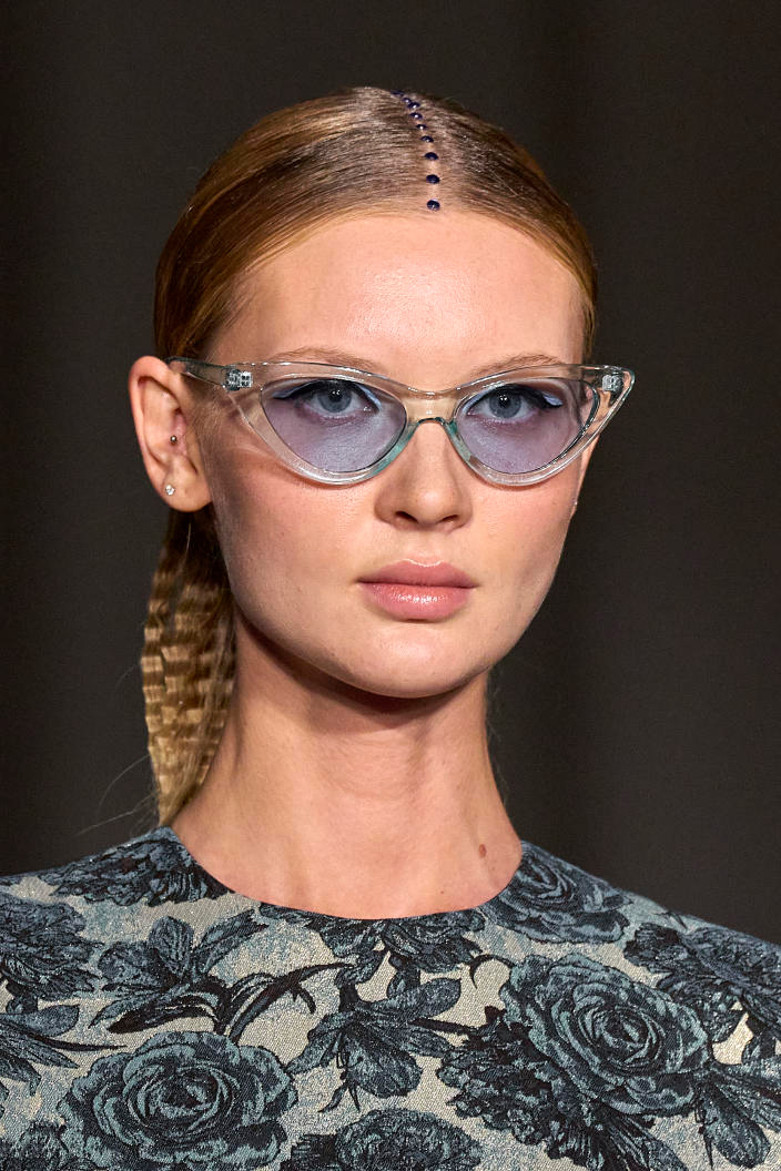 The runways have provided us with a great number of iconic eyewear styles. The biggest trends showed shields, racing styles and cat eyes. All of these trends strive for an empowered femininity and enhance the strong traits of womanhood. Other favorites include stylized round silhouettes and creative upgrades of large and angular retro frames. The most edgy trend was composed by “upside-down” styles, innovative transparencies and barely-there Y2K frames. Altogether, the season provided lots of innovation and eyewear that seems more fashion-forward than ever. Most models incorporate a distinctly futuristic feel and feel appropriate for apocalyptic post-war sceneries, as well as the uncertain metaverse. Clashing such bold shades with hyper feminine and nostalgic silhouettes, constructed in soft and drapes materials, creates an exciting contrast this season and depicts the duality of femininity, balanced between gentleness and power.