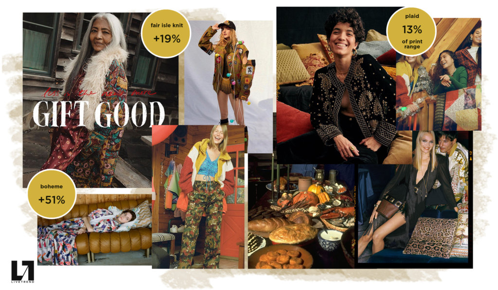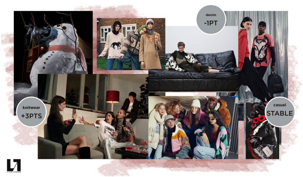 Make sure to balance your festive drops with elements for each of the holiday moments. Comfort and party should be equally covered and new peer-groups, as well as inclusive identities and concepts should be focused on. Reflect your brand values within the drop that creates brand loyalty and spreads your identity from one client to the next. Check our benchmarking for more information on the must-haves of the season.