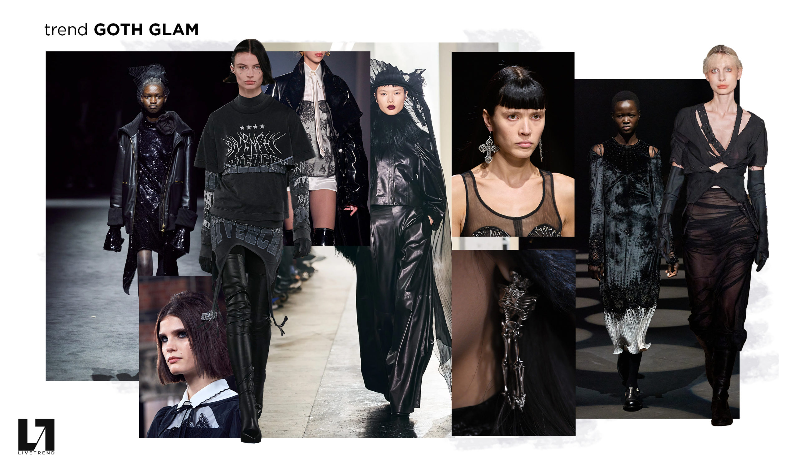 The recent FW22 runways have shown a distinct taste for subcultures. For this season, the current generation of designers looked towards grunge, punk and goth to create visual communities that reflect more subversive points of view. As the tendency for extravagant dress remains prominent, a distinct Goth Glam has filled the catwalks now. Oscillating between romanticism and revolt the look is taking us back to the eccentric subcultural scene of the late millenial. While interests in subjects around witchcraft and myth are amping up across consumers, the mystic and dark subculture translates those consumer desires.