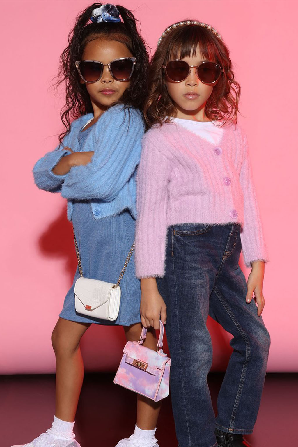 Girl Group is a FW22 trendstory for Junior and Kids collections. The #y2k style is a current highlight across social media channels, with TikTok measuring 2.1bn views of the hashtag already. At the moment, the trend is especially popular across Generation-Z and teenage consumer groups. However, the look can easily be transferred to young girls’ collections as well. Aesthetically, the influence of the early 2000s results in a revival of bubblegum pink and baby rosé. Combined with shades of Lolita-reds, this color harmony is crucial for collections related to the theme. The palette can be balanced with deeper shades, such as burgundy, dark denim, khaki or even beige. Print stories range from cheetah styles and holograms to classical checks, which are especially impactful in statement colors. Sassy slogans, dazzling embellishments or patches of digital or comic graphics are key to enhance the look of placed prints and designs.