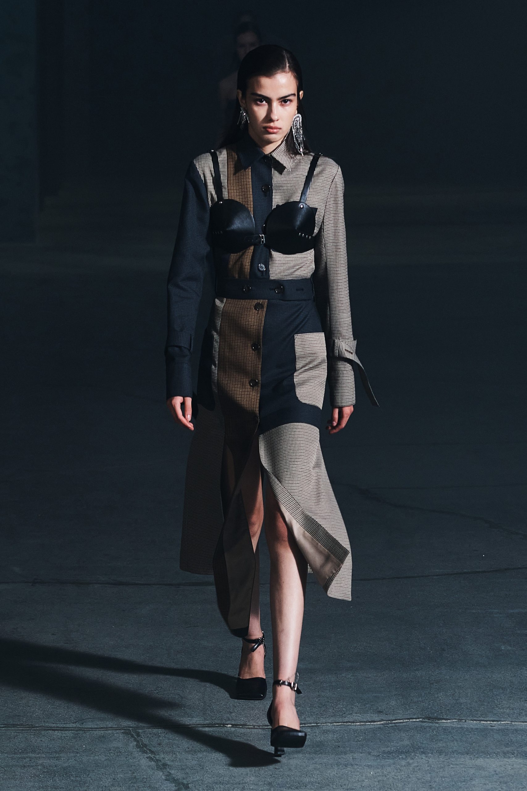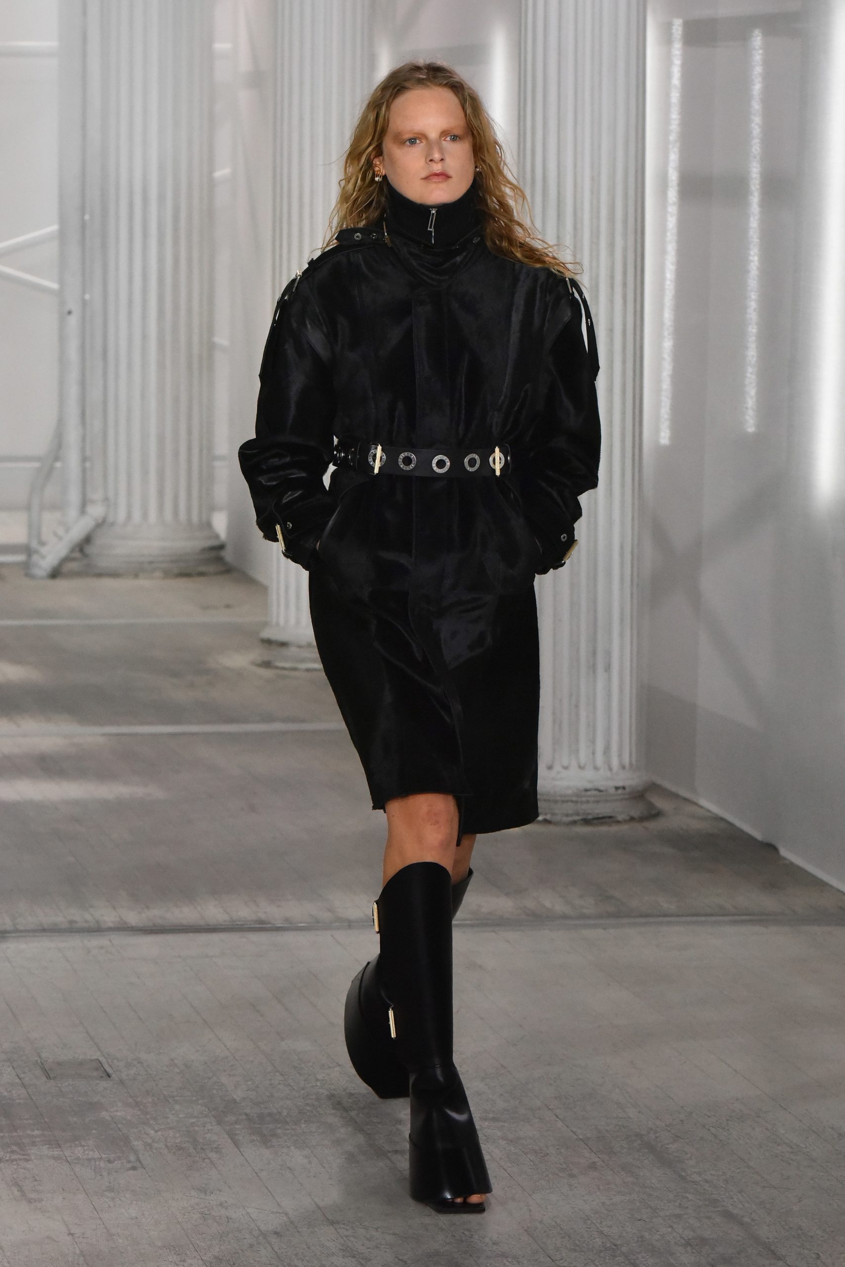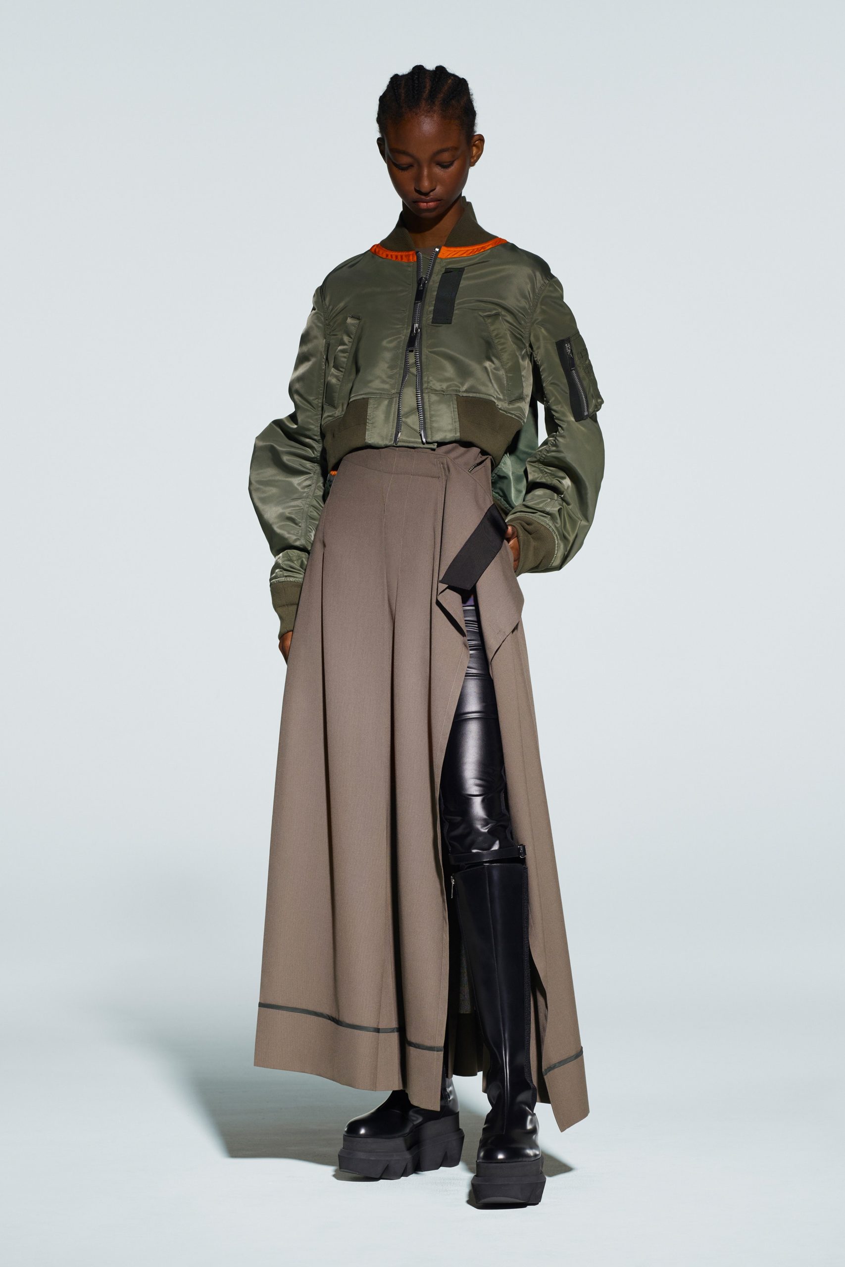 Translated in core looks, the disruptor trend signals a taste for strong silhouettes. New and bold outlines, which certainly leave an impression. Bold shoulders, sharp-cuts and powerful textile qualities result in strong and eye-catching designs. The palette shows a taste for neutrals, from beiges to whites. Another key color are currently emerging palettes of khaki and grays, which add to a militant, utilitarian feel. Not to gorget, the FW21 color-trend for all-black maintains its relevance. Material-wise, the rebellious feel is translated through leather, chunky knits, distressed surfaces and textile qualities that are able to generate volume. Staple Items are long skirts, coats, bomber-jackets, power-shoulders and chain embellishments. Key accessories like combat boots and face-coverings are updating current trends, while maintaining the safety-properties of the facemark. Their anonymous effect is completing the look. Other subversive details, showing skin or nodding to lingerie can add another element of provocation, all along the disruptor’s rebellious mindset.