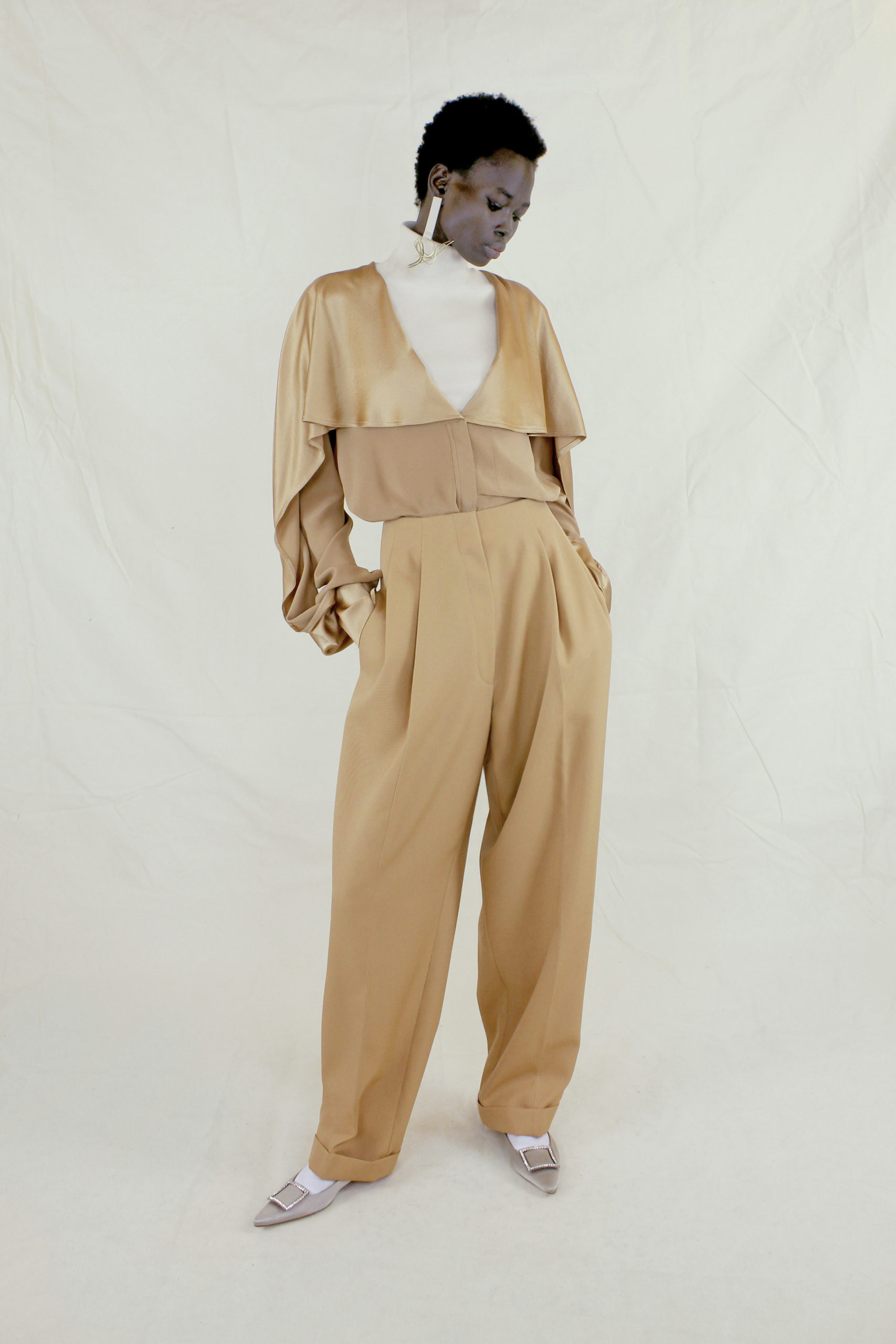 The key style of this story builds on traditional tailoring pieces, which are subtly reworked through historic or smartened-up aesthetics. The tailoring elements reinforce the idea of value and quality and embrace this consumer's mindset. The trend's warm palette incorporates soft neutrals, for comfort, as well as rich and deep main-colors, like blues and reds to introduce a sense of luxury. This color story is the answer to a need for simplicity with a premium feel. The look is rather sophisticated and counteracts the periods spent in comfort-wear. In terms of materials, classical tailoring fabrics are combined with leather, silk or interior materials. Fusing a masculine and feminine style is key here. The idea of being unable to pin-point those looks to a specific gender or period of time creates hybrid looks that can adapt to any potential future. Whether that means going back to the office, staying at home etc. Slightly re-constructed elements can enrich this story with a more edgy direction as well.