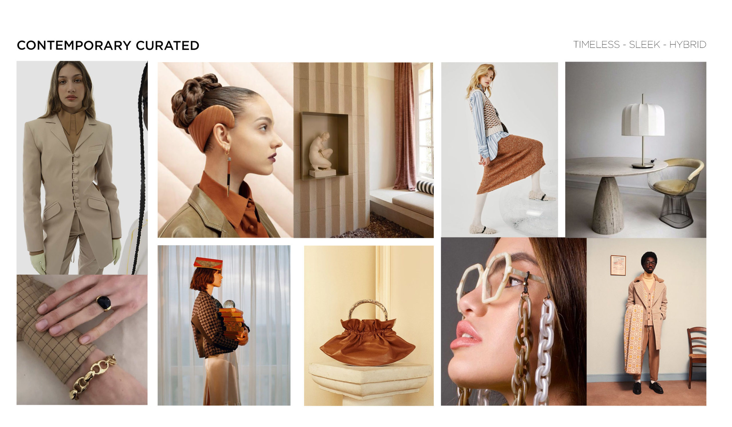 THE SYNCHRONIZER and its cautiousness find interpretation within the „Contemporary Curated“ trend direction for FW22. Seeking for comfort in minimal confrontation, this client turns towards simplified and re-known solutions. The combination of familiar nostalgic elements with a contemporary clean design aesthetic is key to this consumer. More precisely, elements from the past, which resonate longevity come along the idea of curation than creation. For synchronizers, thinking about the past seems grounding at the moment. Balancing the past with minimalist elements safeguards a modern and contemporary look. The result are timeless collections, which will answer to a consumer, who decided that living with less means a reduced possibility of negative effects and increased freedom (literally and mentally).