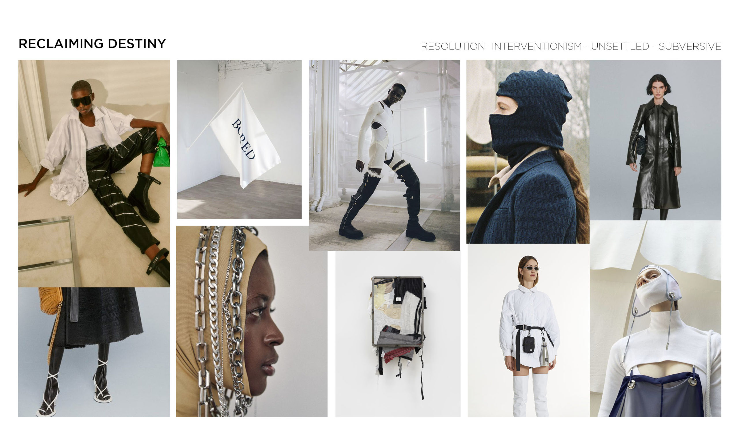 THE DISRUPTOR consumer-type finds representation within the „Reclaiming Destiny“ trend story. The resolute-tendencies of this consumer manifest the disruptor’s aims to change the system and his demands to not be fooled anymore. As a self-believer, he adapts by actively trying to influence the future. He lives off an insatiable hunger for power. The fatigue that he now experiences has triggered him to despise being a victim of events anymore. Subversive energies are rising and translating into the image of a modern warrior. The mood incorporates a sense of force, which stems from the empowerment that this consumer built during the lock-down period. Reinforced and strengthened with a clear vision in mind, this consumer group is looking out for slightly<br /> sleek and practical designs, with a (subtle) rebellious edge.