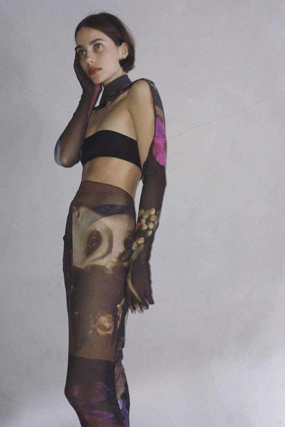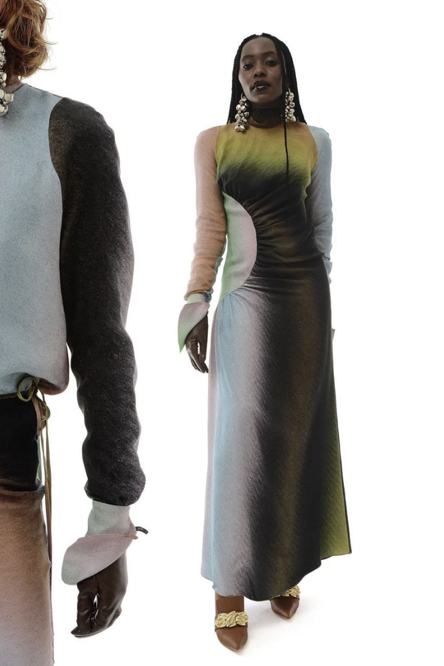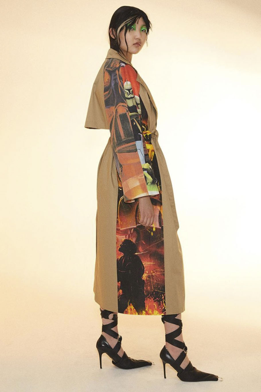 The style of this FW22 trend is driven by a digital-inspired aesthetic. Whether this means prints, color-ranges or shapes, the „Hybrid Worlds“ trend is nourished by boosting virtual color-ranges and digitally-crafted print design. Prints might also focus on extra-terrestrial motifs and design. Regarding the silhouettes, body-conscious silhouettes, which resemble the avatar-skins of online characters, offer comfort and touch upon the more diversified and self-confident traits of this new consumer. More experimental, surreal shapes and silhouettes can also play an important role in translating this trend. Layering combines all of the new shapes and creates innovative silhouettes. Sleek tailoring styles are also adding to the futuristic look. The Fabrics focus on glossy, almost liquid finishes, and second-skin knits.