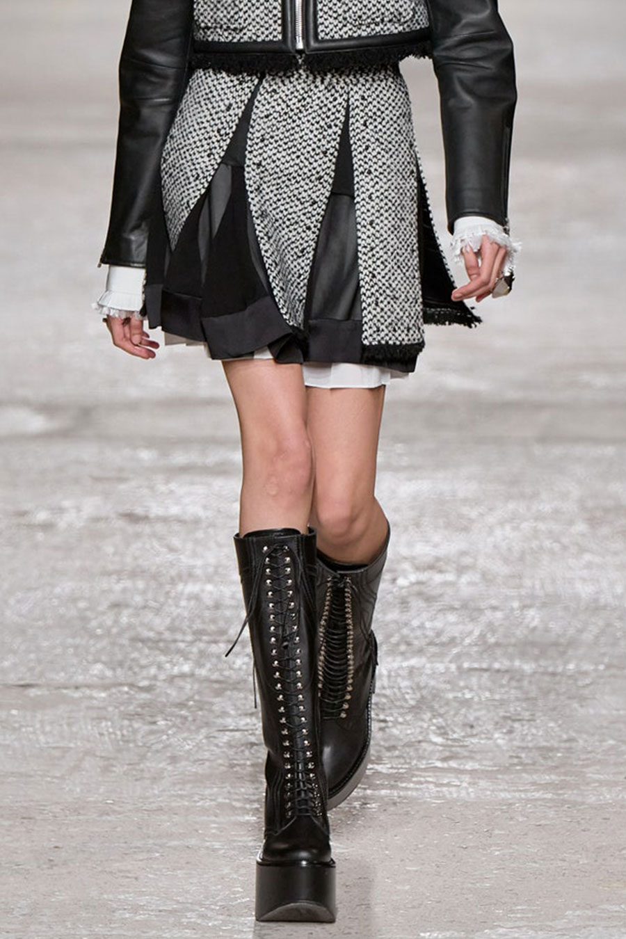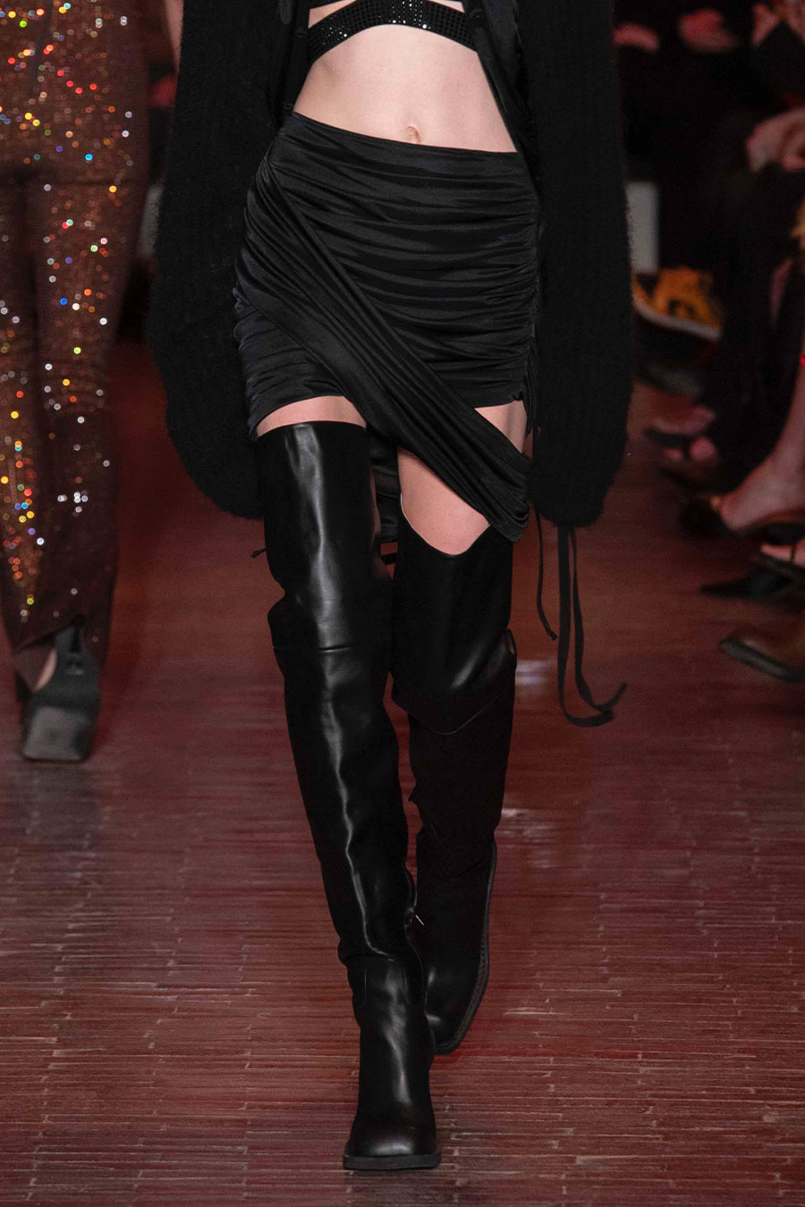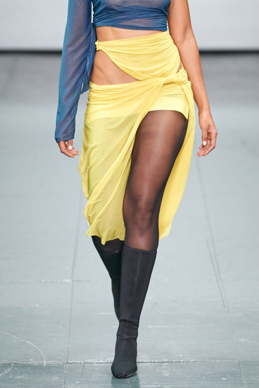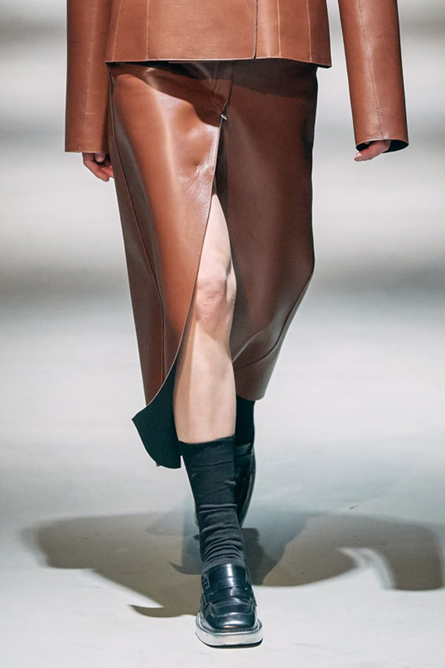 For FW22, mini skirts represent the vast majority of the category assortment, with 536 looks and a growth of +34%, this piece offers multiple possibilities for experimentation: from the preppy minis in tweed to rebellious raw edges and low wait-lines. Clean, fitted lines in the form of pencil skirts or even longer column silhouettes are enhanced with daring slits or feminine drapes and find appreciation amongst designers and audiences. Slightly decreasing but still making a statement, pleats are a piece to invest in: with designs ranging from elegant plissee skirts to academic sporty interpretations for the tennis club.