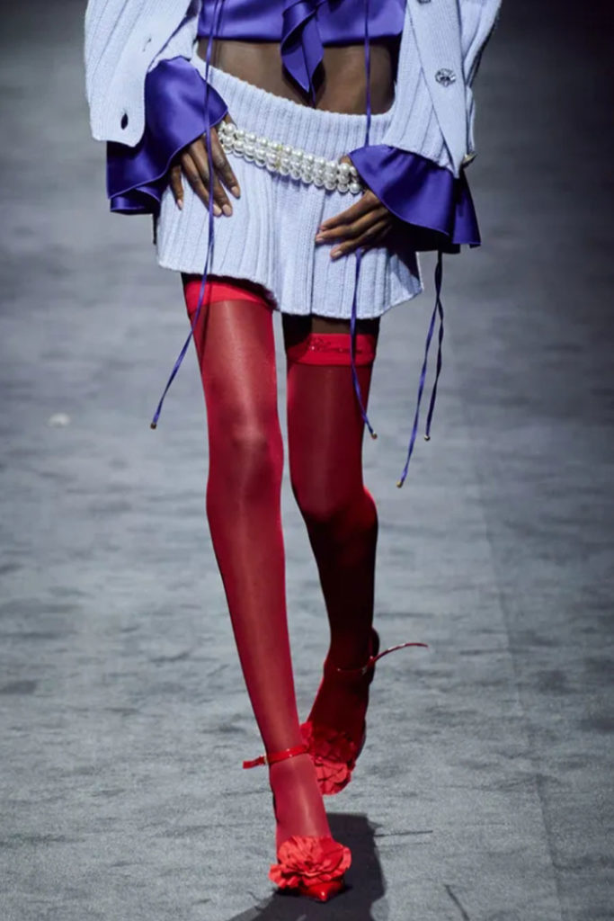 FW22 presented a multifaceted woman, who is capable of having distinct and different attitudes. As trends tend to adjust and layer over time, they leave more space for sub-trends to arise. One of the best examples we’ve been witnessing during these past fashion seasons is the mini. The piece was already present in the market 60 years ago. Back then, the mini was the undisputed symbol of social and political revolt and revolution, and it is clear how nowadays the meaning of such a piece has turned into something different. However, the mini look is permeated by meaningful considerations: Miu Miu was the greatest example this season to cut the mini skirt with even lower hems out of what seemed to be a business male pant. The skirt remains a declaration as fashion itself remains a huge vehicle for cultural change. With empowering designs, lots of designers answered the need of Gen Z and Millenials to be represented and to be heard. Today, as during the 60s, young people stand against values that have shaped this world and aim for improvement and change. This is why the iconic feminine garment, the skirt, sets the stage for subversive change. Today’s women feel in charge, feel strong and feel desired. And the season’s skirts reflect that message: daring, comfortable and show-stopping.