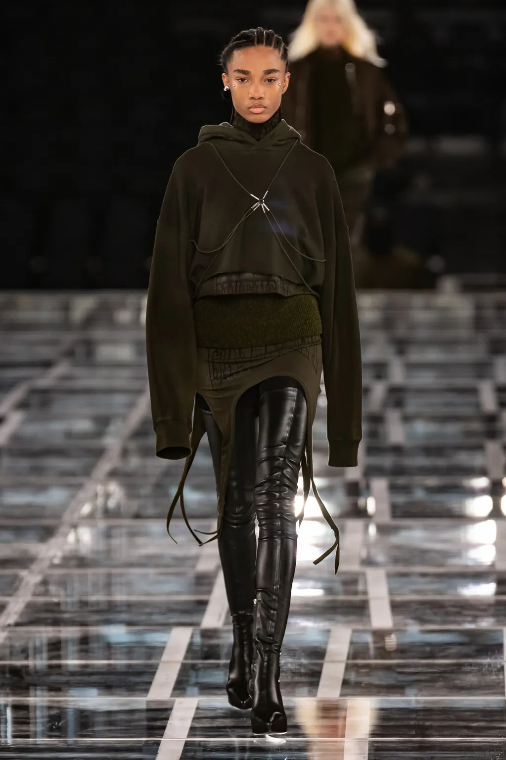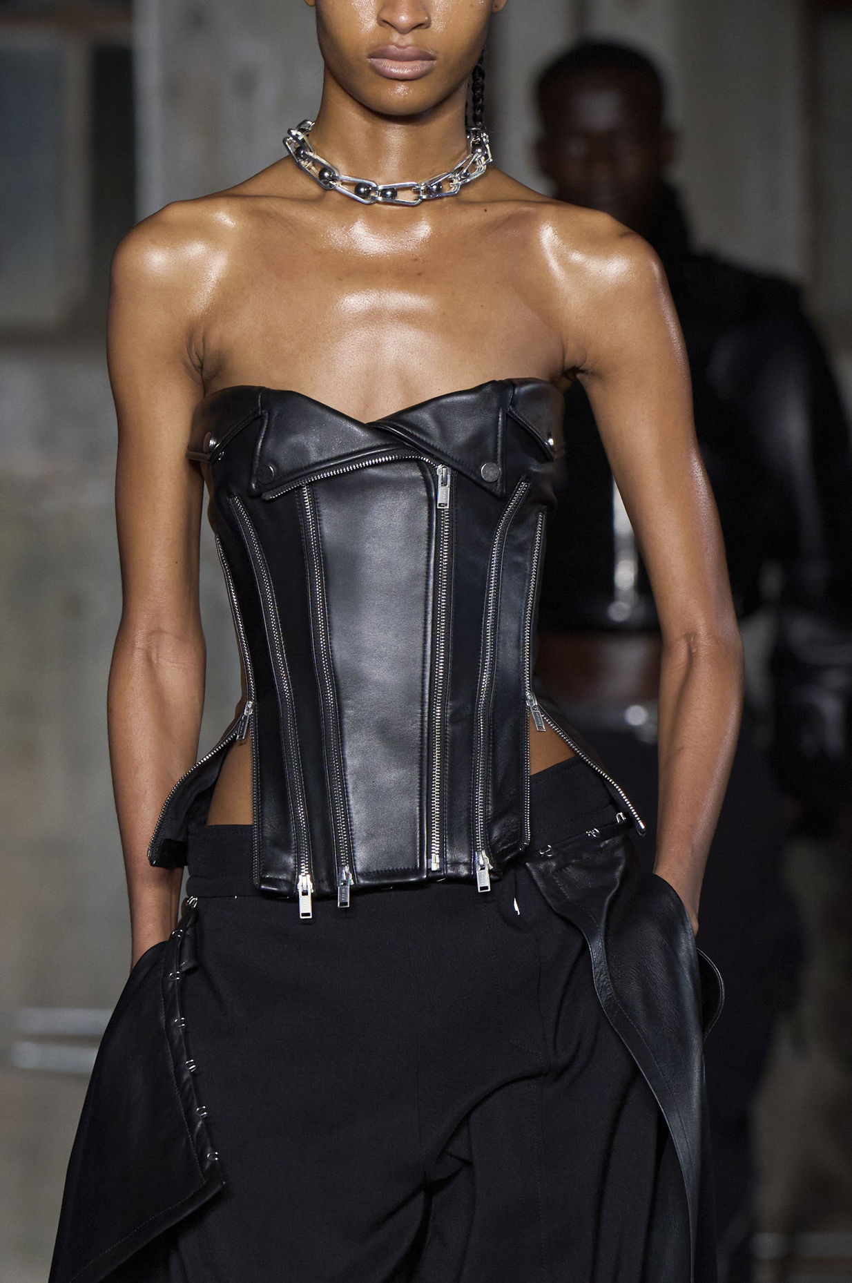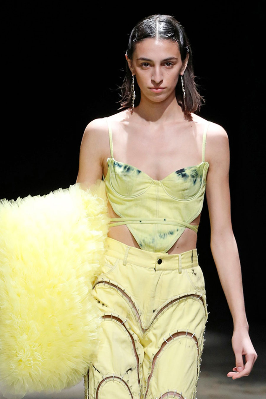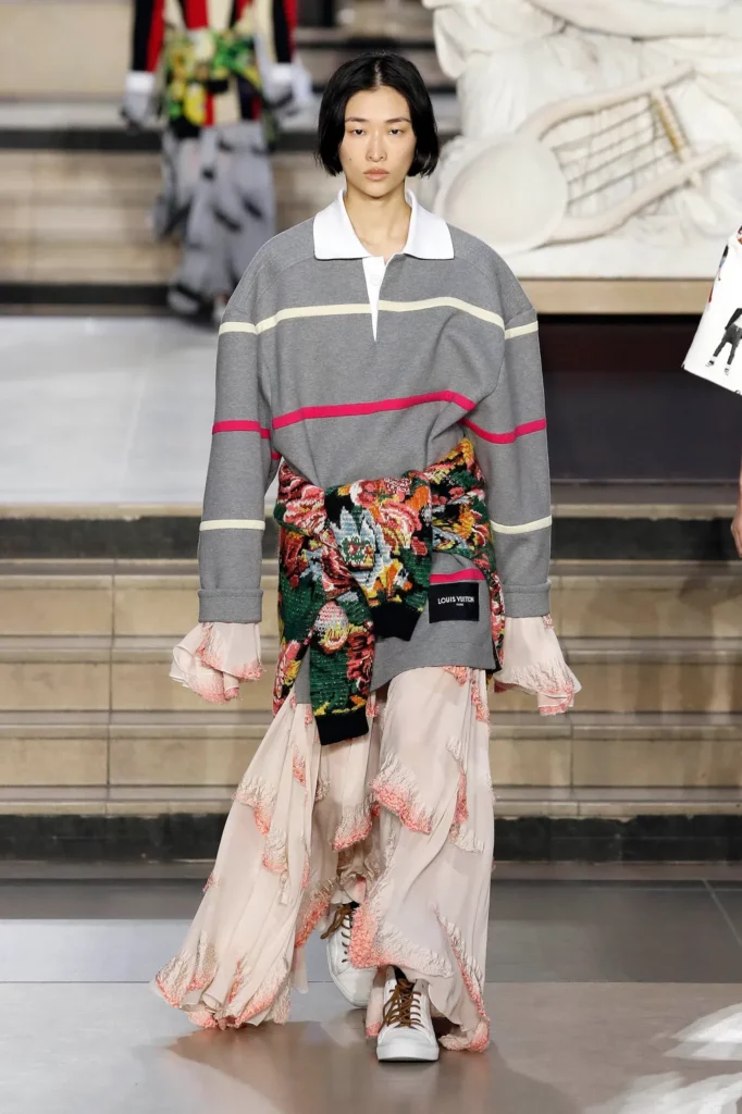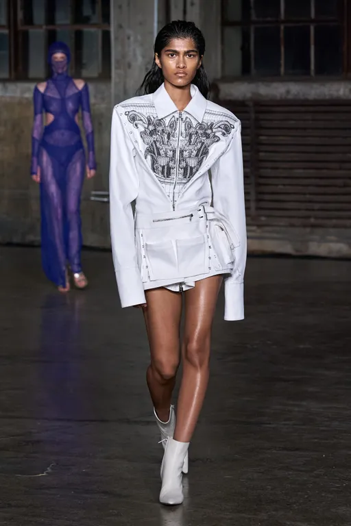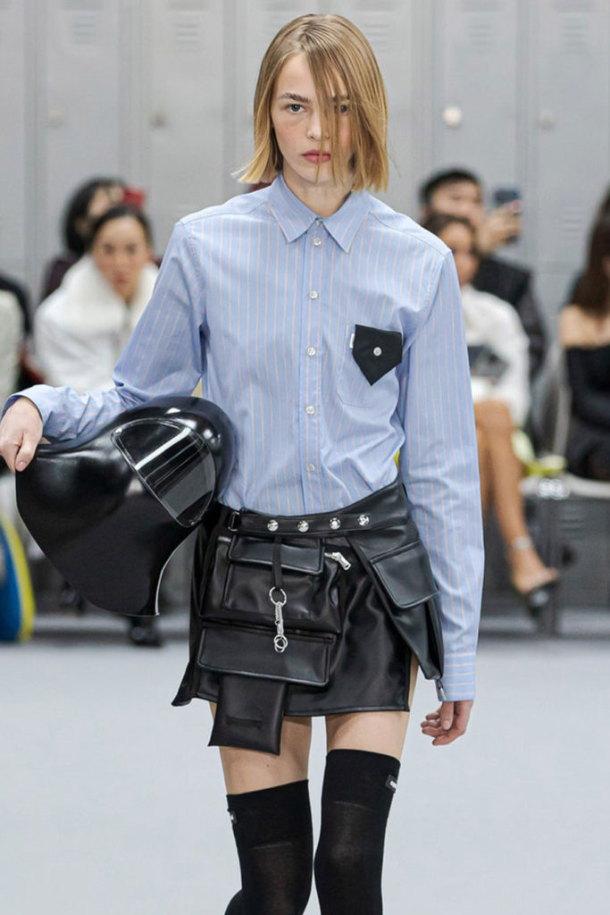 Fashion is the medium through which people can express their personality and affirm their identity. It is about adding a layer to our naked body with a cover that can speak for us non-verbally. Maximalist strategies can be a communicative vehicle, yet sometimes the simplest element can also embed strong meanings inside them. This season, the stand-alone tank top, a piece that is as neutral, minimal and almost anonymous as possible in its simplicity. It has been the protagonist of the main shows and particularly discussed on the Prada runway. The tank stands out as a symbol of pragmatism, but appears to turn into a reflection of vain luxury now. At the same time, for tops, the dominant Y2K aesthetic maintains the bralette as one of the highlights, next to newer corset interpretations. This showcase of the undressing trend enhances femininity in a more dominant, self-assured manner. Next to that, feminine blouses with frivolous details show historic collars next to puffy sleeves. In this deep ocean of detailed pieces, the tank, high turtleneck and shirt, represent a genderless moment, a blank canvas from which to start again.