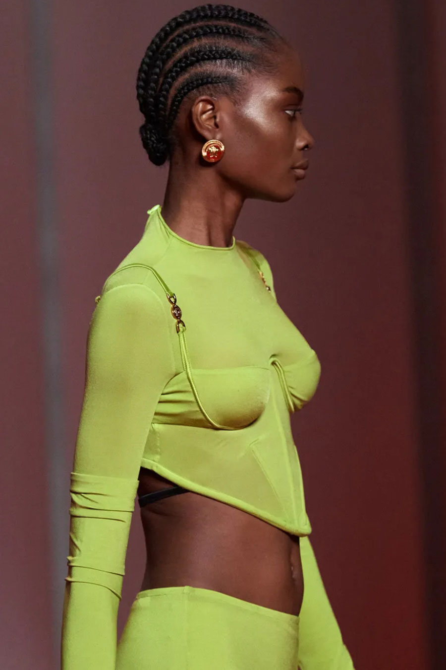 For FW22 the Y2K revival is still relevant.The relevant elements, which are linked to the aesthetic include ruffles; lingerie details and subversive details. Related to this body liberation, it is time to invest into the cropped length, with a growth of +21%. This style can provide a layered element with multiple possibilities of mixing and matching. A piece that continues to make a statement, indubitably is the corset, revisited in various version and still dominating fashion, ranging from delicate lingerie tops to business shirts with a corset-armor structures.