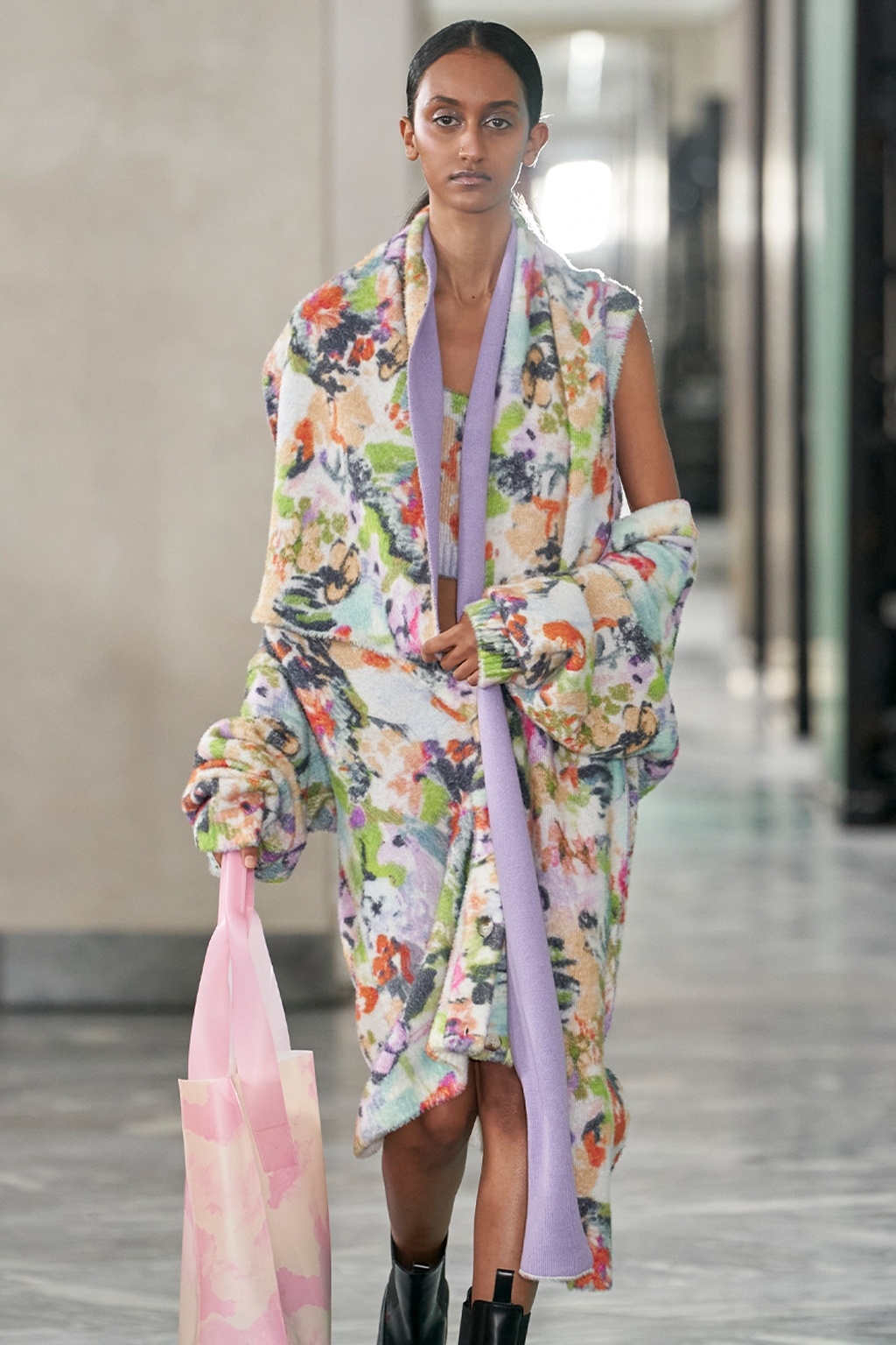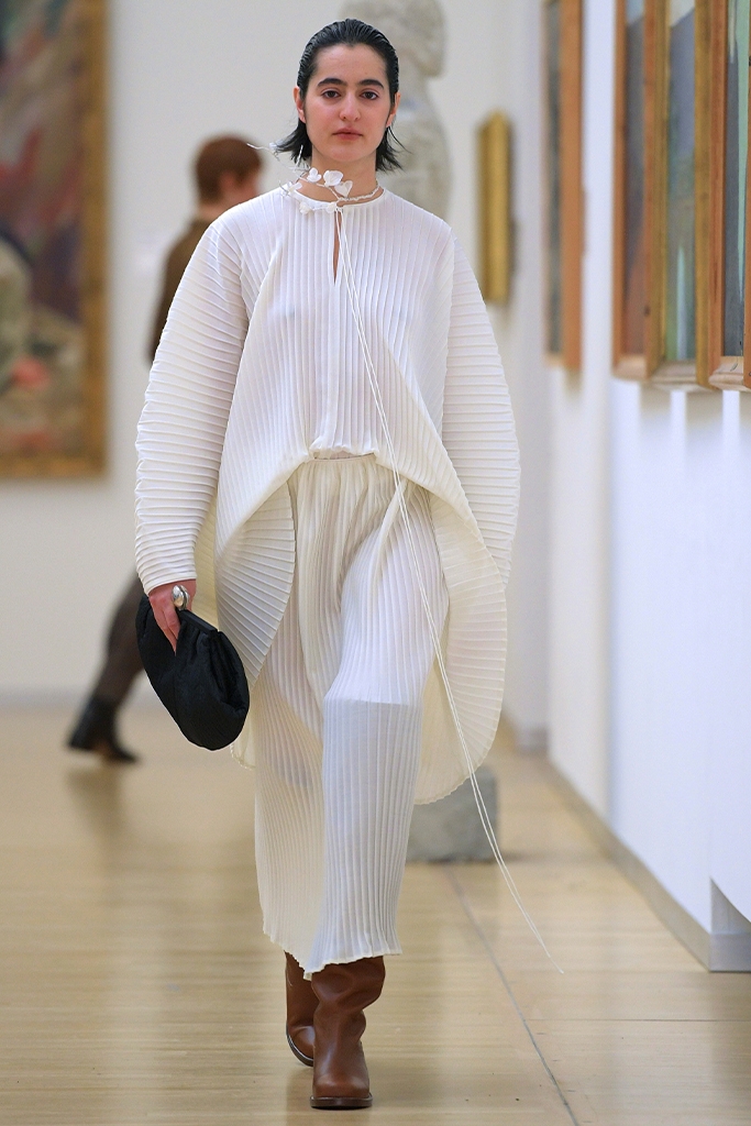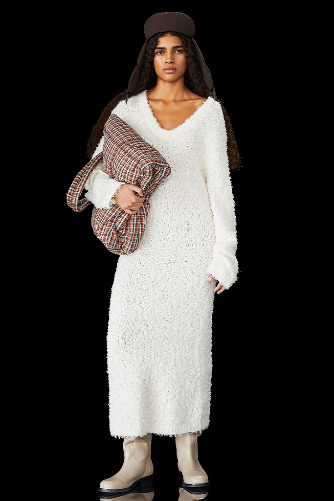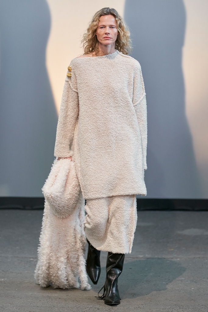 Now, a full-out maximalism presents us with color and print clashes, creative layers and an anything-goes mindset. The open-minded and liberal approach to fashion connects to the value shifts surrounding identity and inclusivity. Consequently, body positivity was a key theme on the catwalks in Copenhagen, with the number of plus-size models walking the shows being particularly noticeable. And the new curves were ready to be shown off as roughing and sexy knitwear took over, making the cozy season not boring at all. At the same time, some perennial pieces remained. Versatile, business casual ready sets and tunic-type dresses, as well as short tailoring sets have shown their contemporary but multi-occasion appeal.