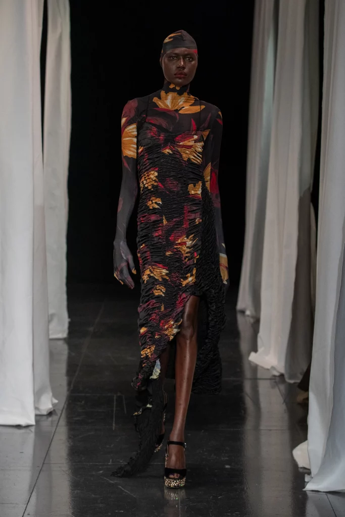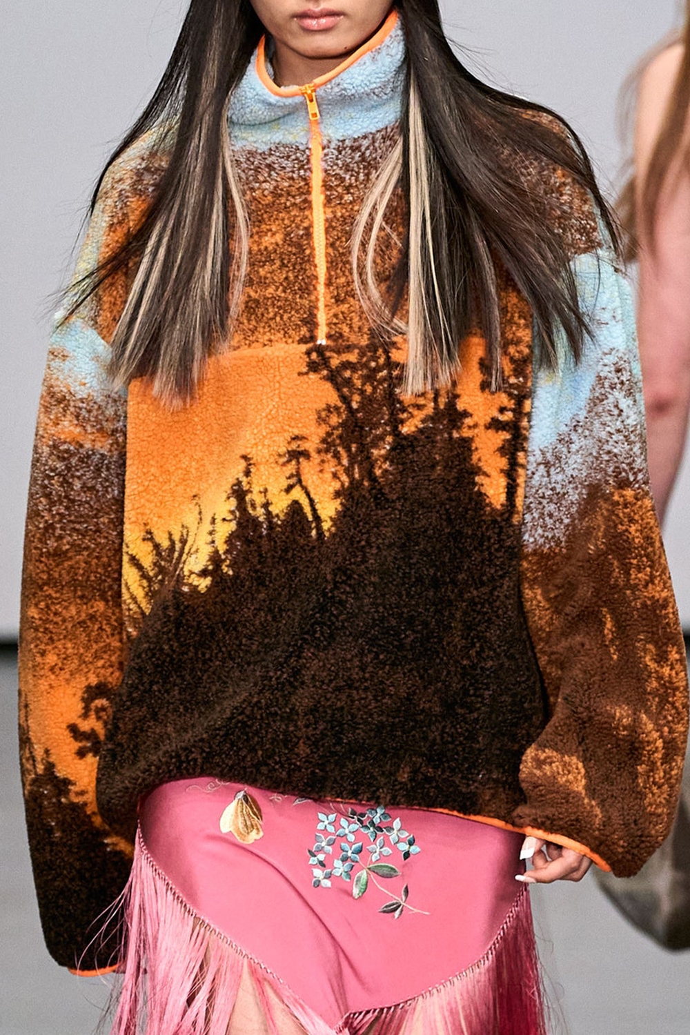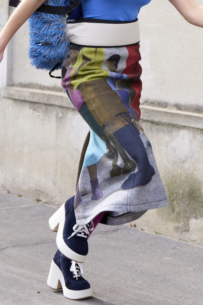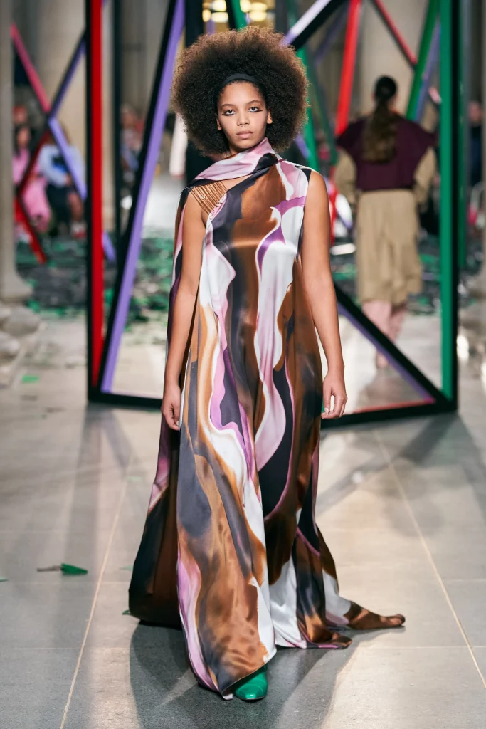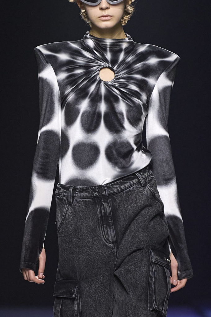 These prints made statements during a season that was strongly influenced by digital escapes and nostalgic recollection. As AW22 builds on a more tonal palette, colorful pops generate spotlight effects within the prints. Stable trends include marbled effects, updated classics and Animalia, bold floral interpretation and artful creativity. Novelties focus on new tech effects, the quest for other territories and a meaningful re-collection of the self.