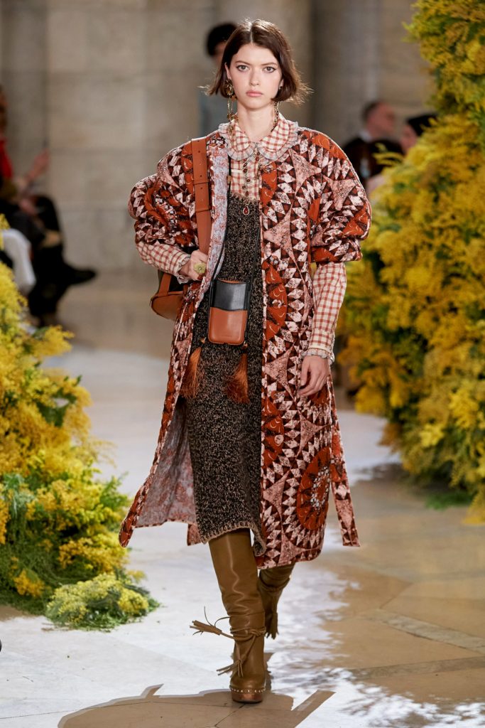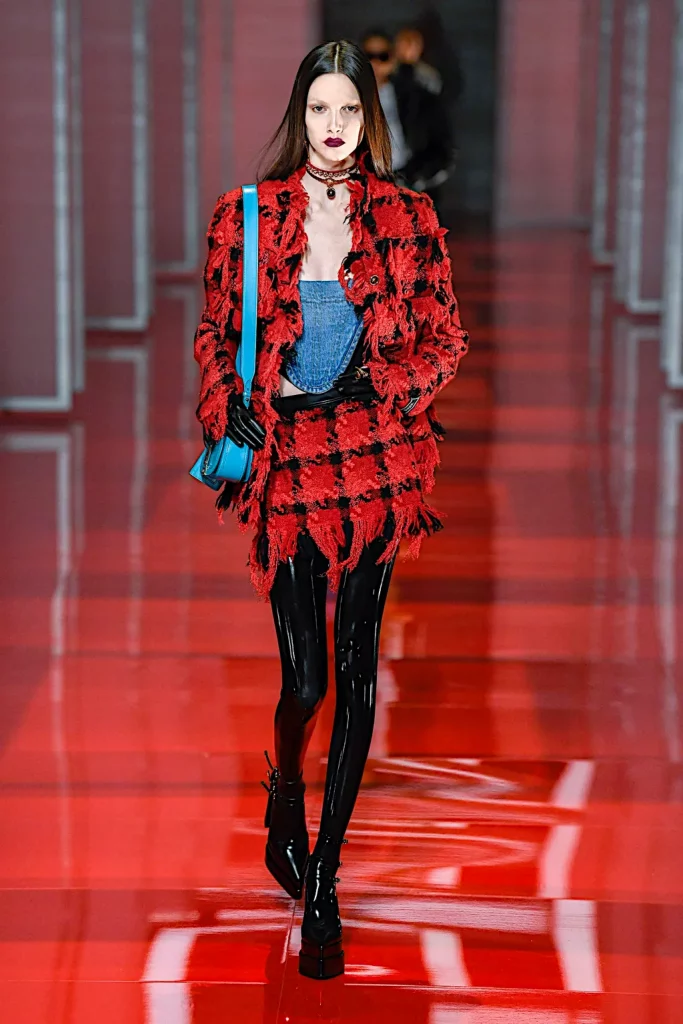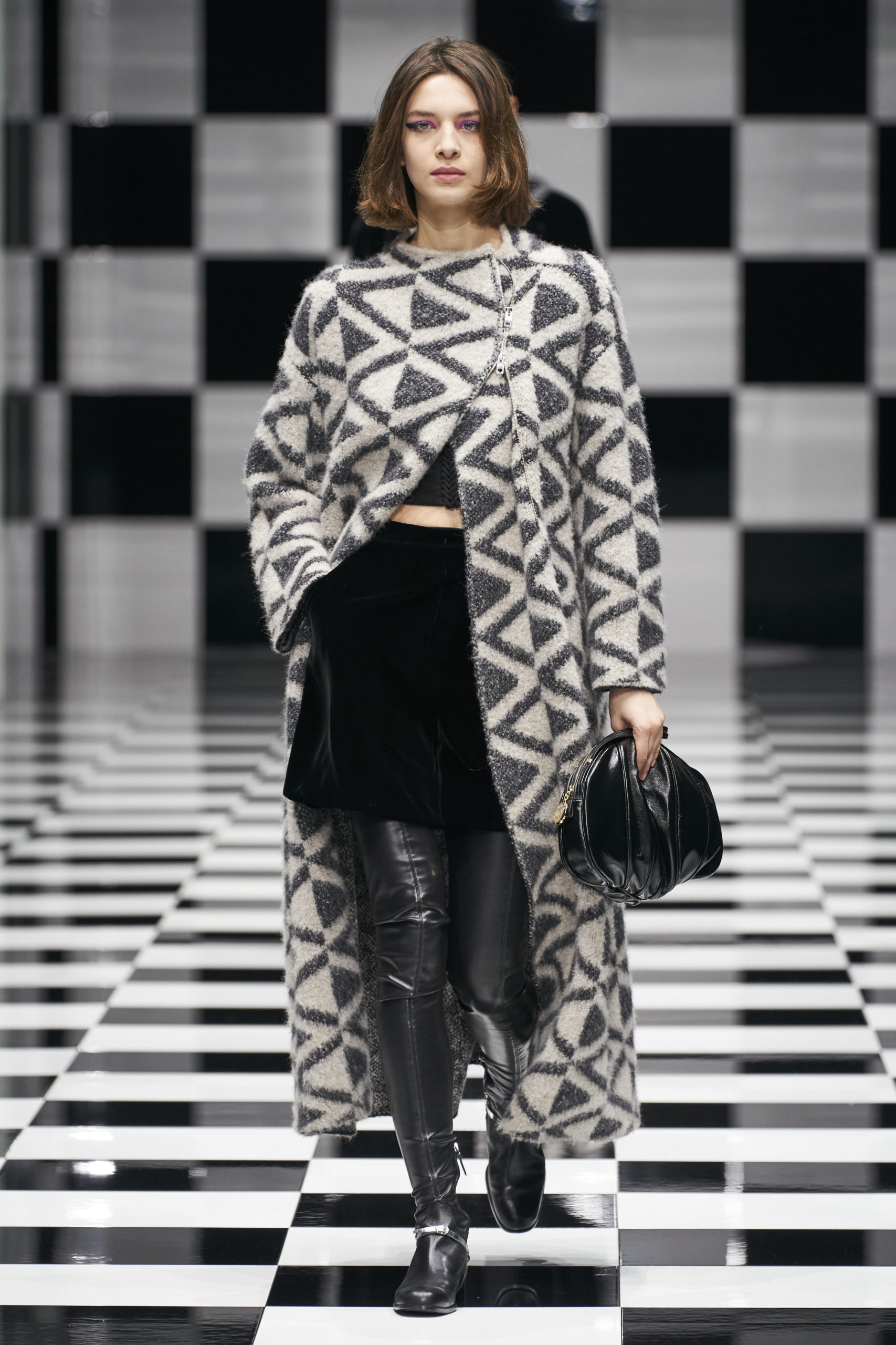 Looking at the global FW22 print assortment, our quantitative analysis detected stripes, florals, graphics and checks as the leading prints across the range, taking a share of 62%. Stripes account for 20% of assortments, gaining +46% from last winter. Florals have gained +22% from FW21 and have a strong visibility too. Graphic prints are decreasing, but still represent 13% of prints and patterns, while geometrics make up for 5% and checks for 10%. Talking about classic prints, this season tartan (+110%) and houndstooth (+24%) are making their big come back, being presented in more than 100 outfits. Related to a neo punk trend, slogans (+60%) and figures (+11%) are amping up as well.