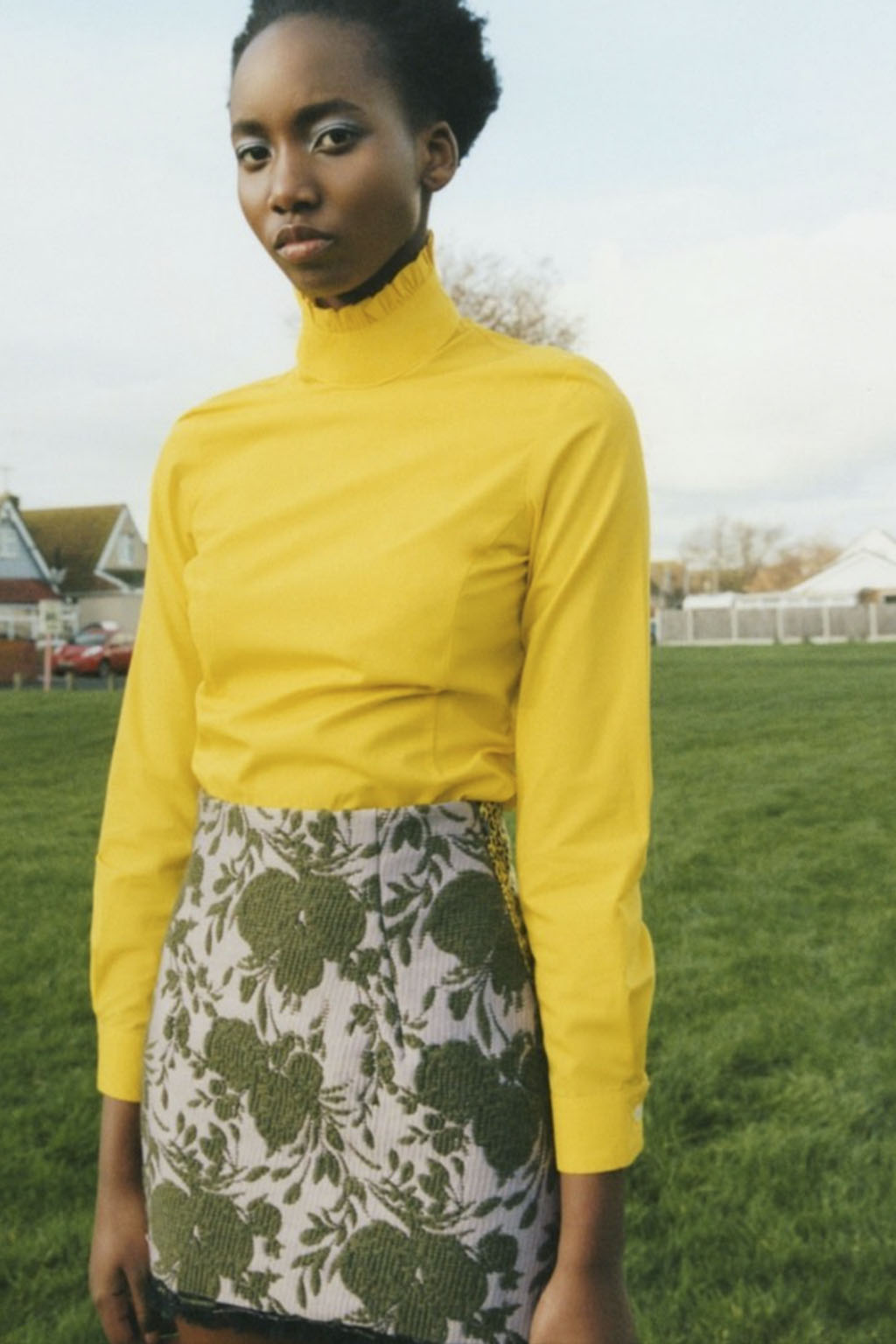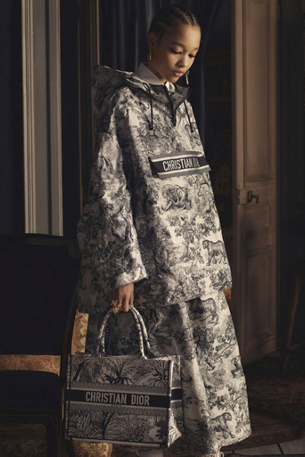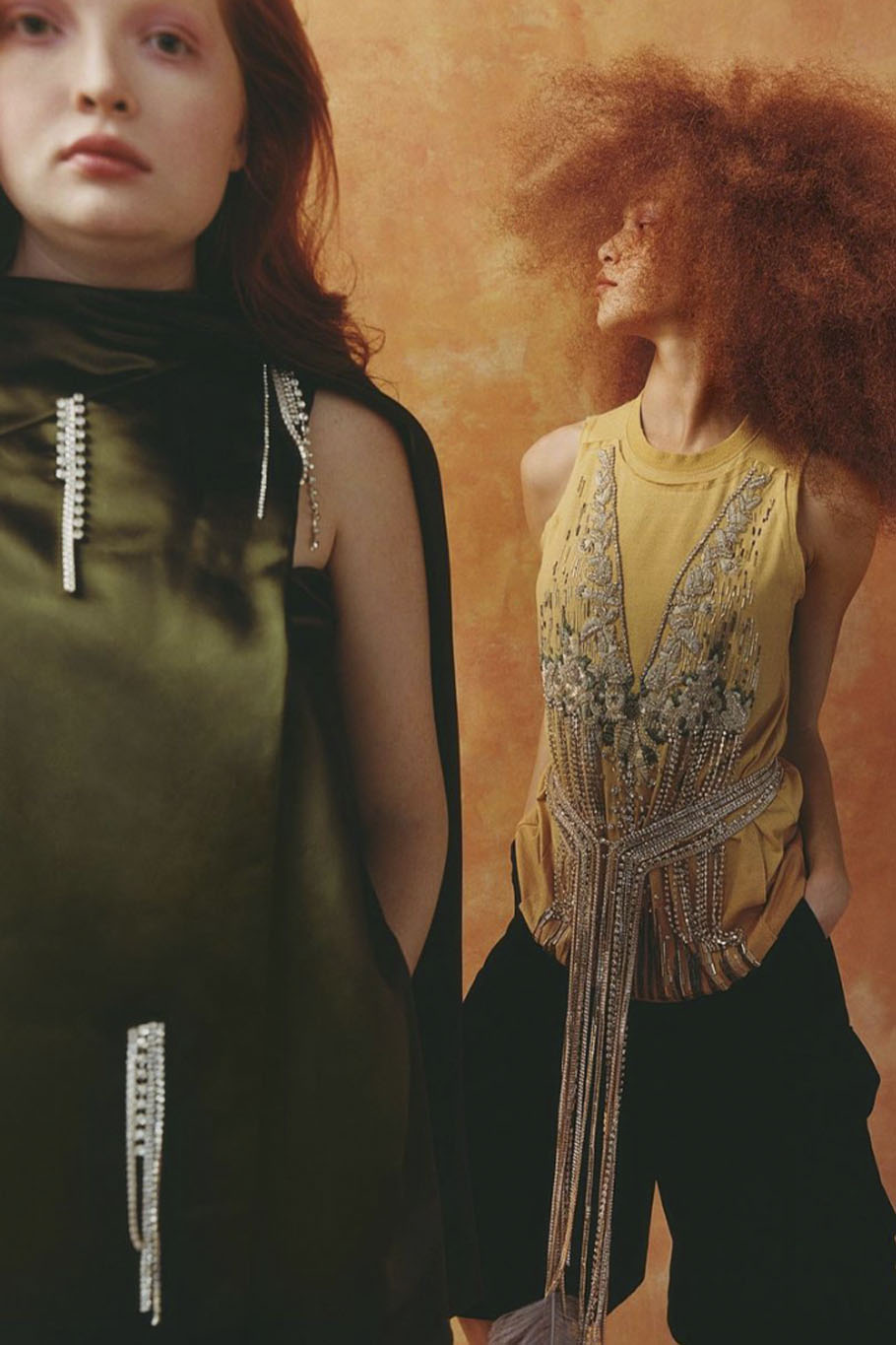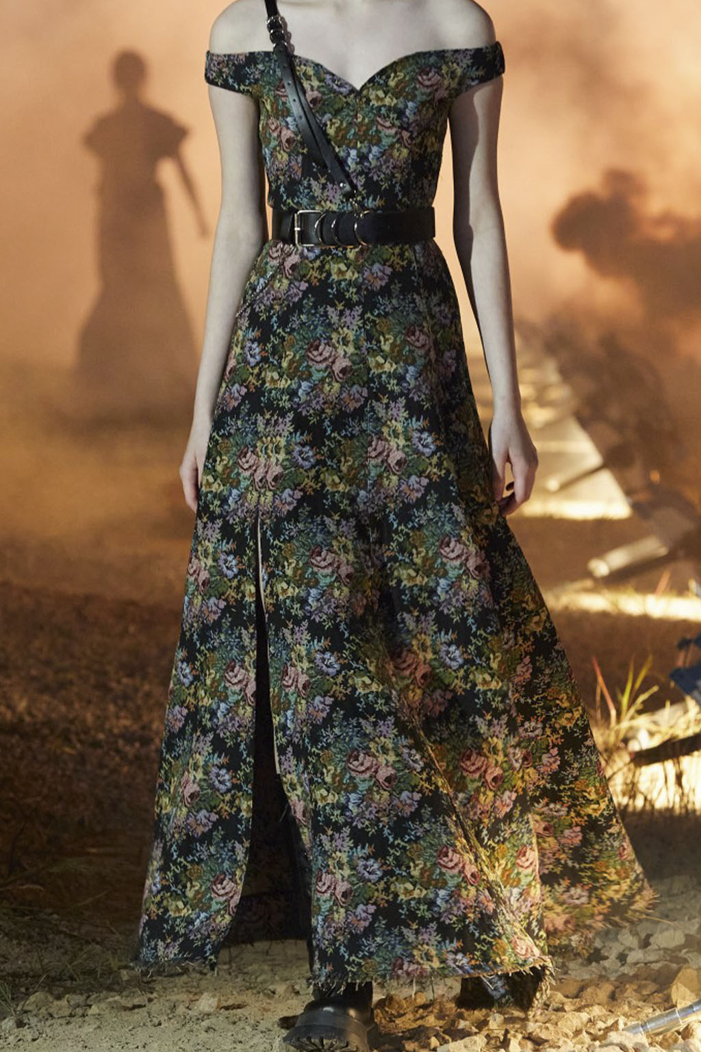 This concept is not only sparking exuberant creativity for prints and trims to enrich classic outerwear and knitwear, that are essential for FW seasons – at the same time it offers great potential for festive collections due to the pronounced elegance and focus on dress and tailoring styles. Regarding the collection’s palette, Hybrid Historics is exploiting the extensive range of archive references. The color scheme is harmoniously balancing deep and indulgent darks with expressive color pops. The array of new darks extends the classical, evening-attire black to burgundy, dark botanical greens and deep purples. The brighter tones include digital lilac, new green sages, and pigmented orange and red. They are highly effective in patterns on dark surfaces with roses, florals, interior prints or spacey camouflage as graphical designs. Other prints are seeking to reference historic art and seek out for paintings, poems and etchings, as well as tapestry or brocade, as inspiration. For novelty, those nostalgic motifs can be merged with futuristically blurry effects or digitally enriched palettes. In terms of fabric, the trend similarly includes a symbiosis of textile qualities, reflecting the hybrid approach. Heavy interior fabrics, velvet and jacquards offer more sturdy options for outerwear, while satins, silks and sheers ( also with lace or embroidery finish) add a sense of lightness and lucidity. Traditional materials, such as prince of whales or pinstripes might also be added to spark a twisted hue with rebellion and goth boldness.