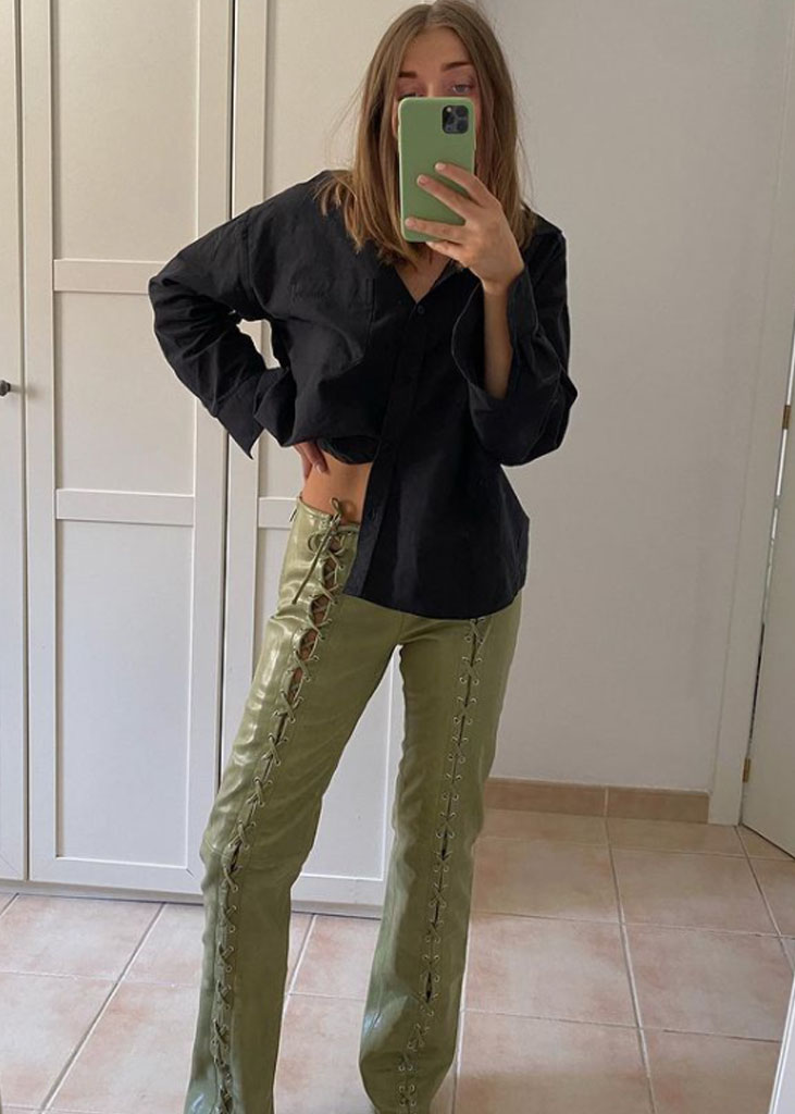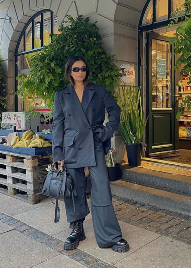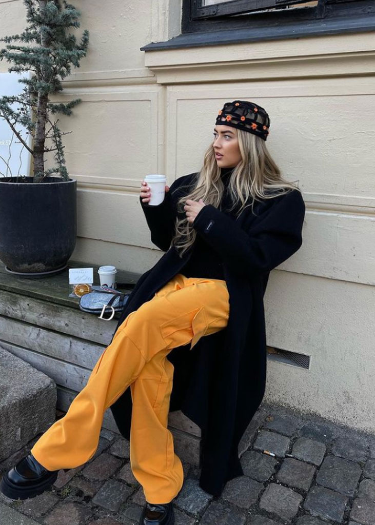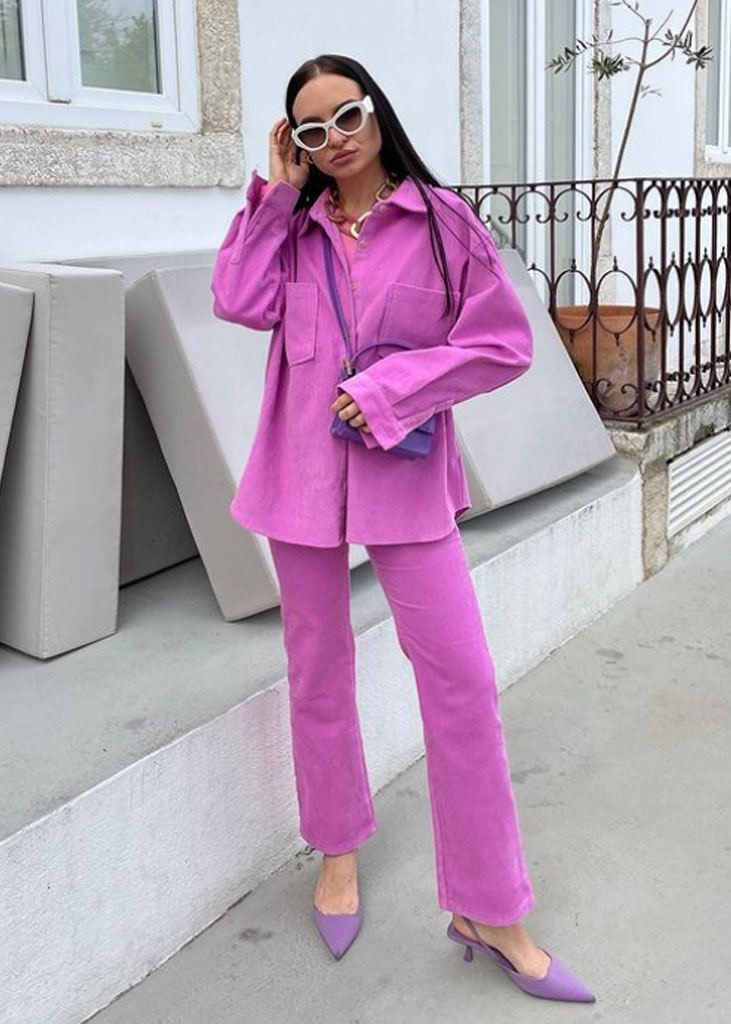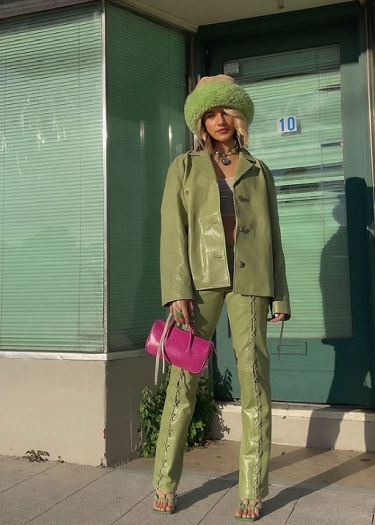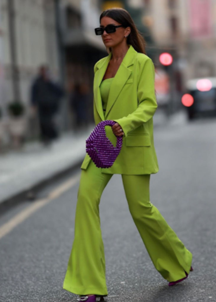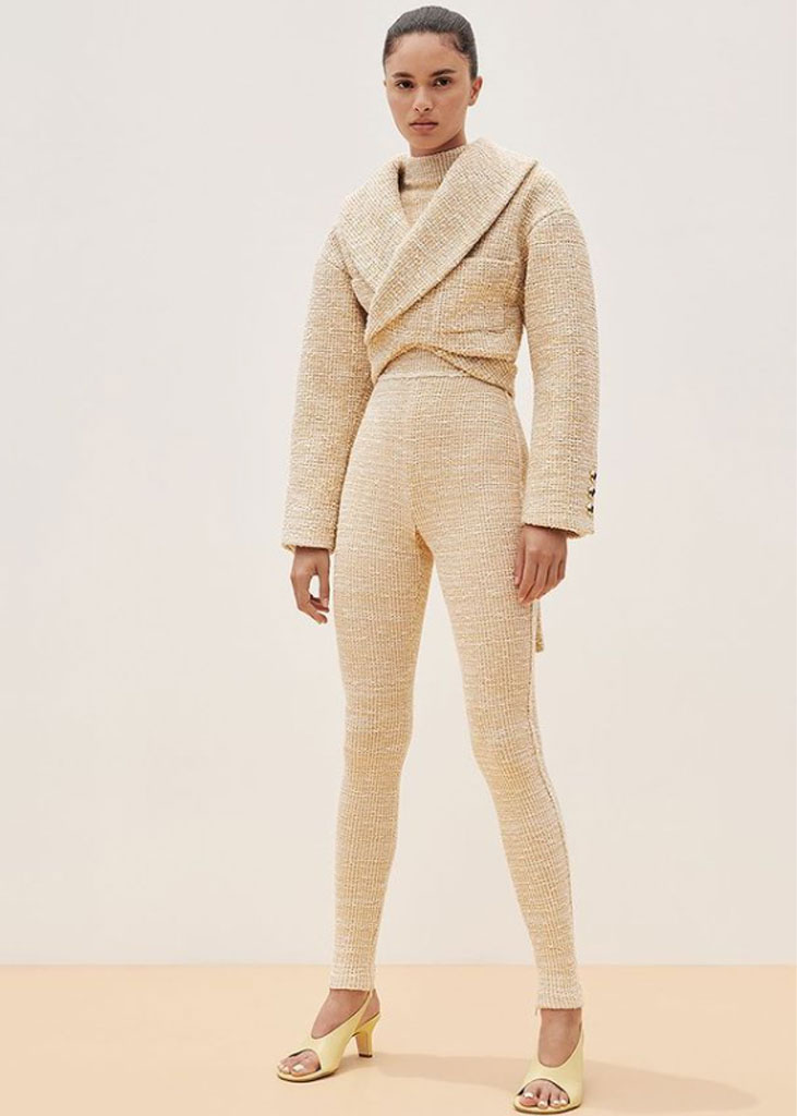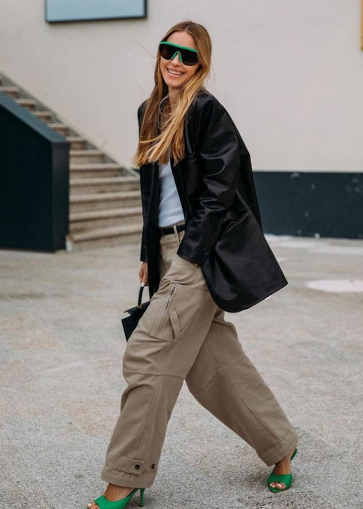 The trending trousers across social media are currently infusing us with fresh ideas while creating iconic mainstays with stable trend pieces. The trends, that have gained commercial potentials but remained strong for fashionable customers as well, include slit pants, dad trousers and leggings. To add some twist to those products, drawstrings and surprising materials are glamming-up the jogger into an athlete product, while straps and prints can reduce the sporty feel of a legging. Those favorites are accompanied by elevated cargos and flares for the more fashionable consumer. The most trendy are looking for cyclers to pair with their high boots or new design details, like lace-up. These trends have small visibility, but demonstrate a big growth index testifying the quick adoption between the mega influencers. Considering fabrics, multiple brands are experimenting jersey trousers and different stretch materials to add confort evento the most fashionable silhouette and these materials are certainly a clever choice to satisfy clients.