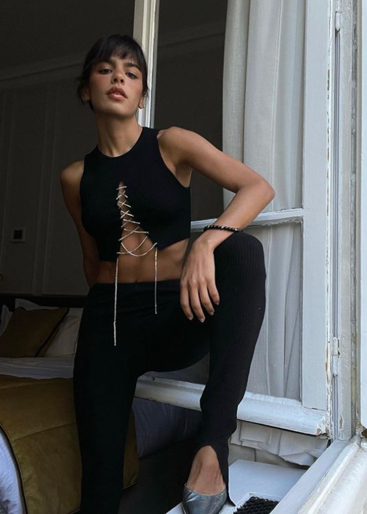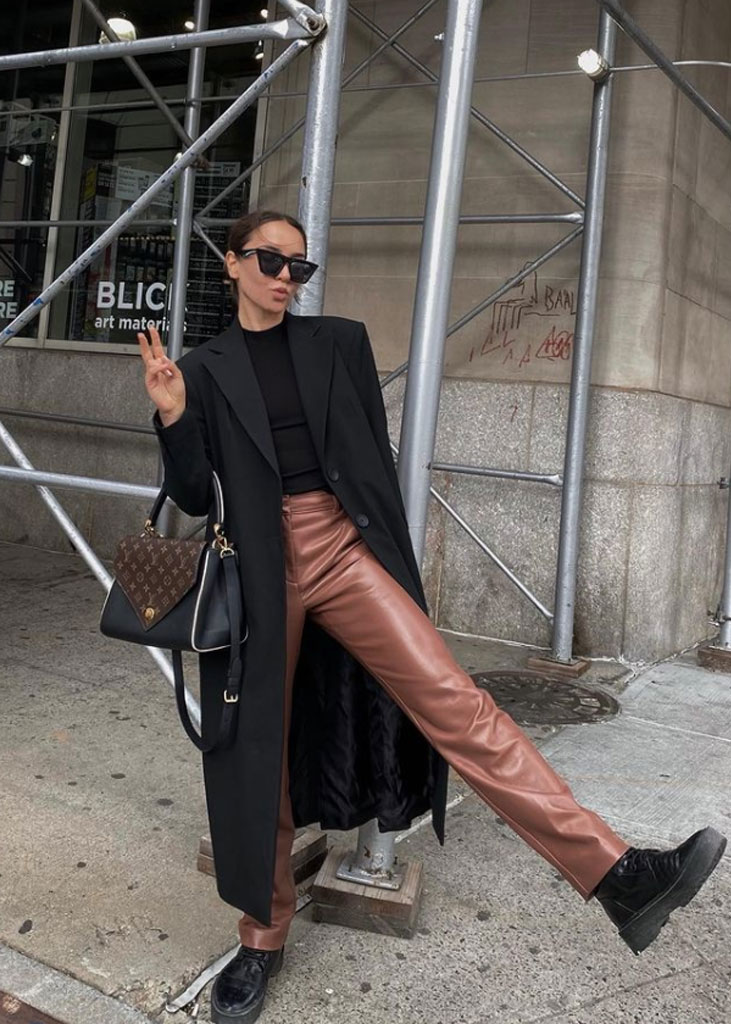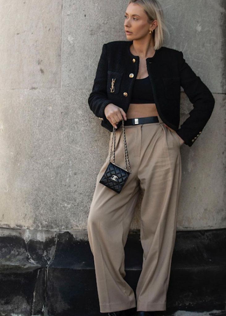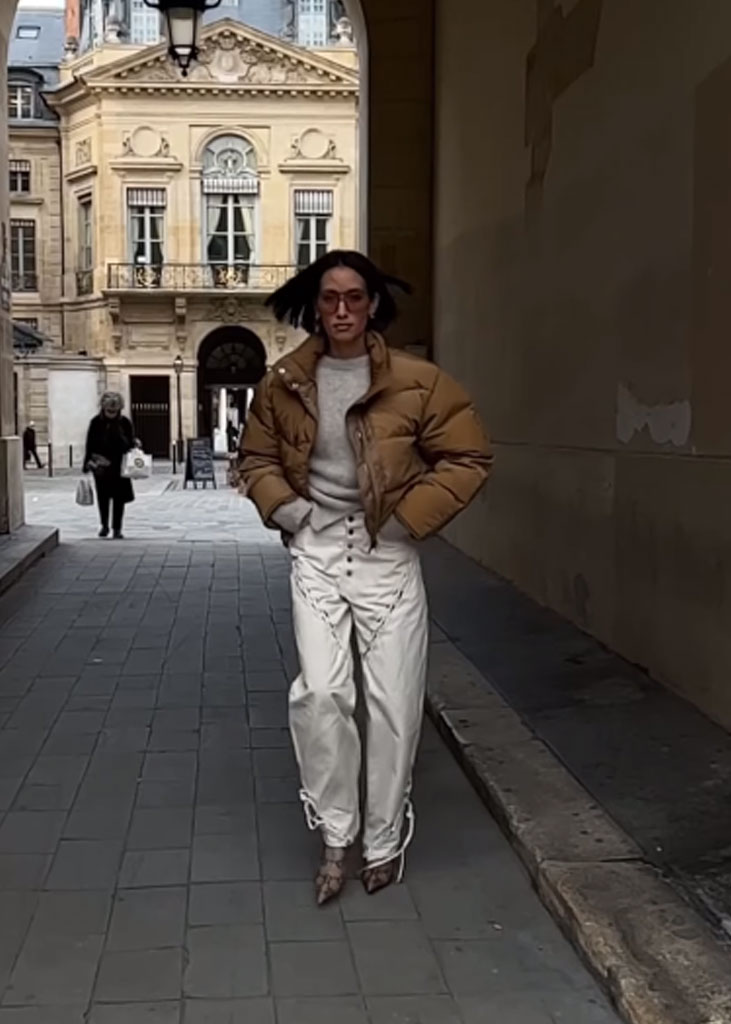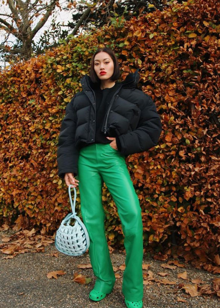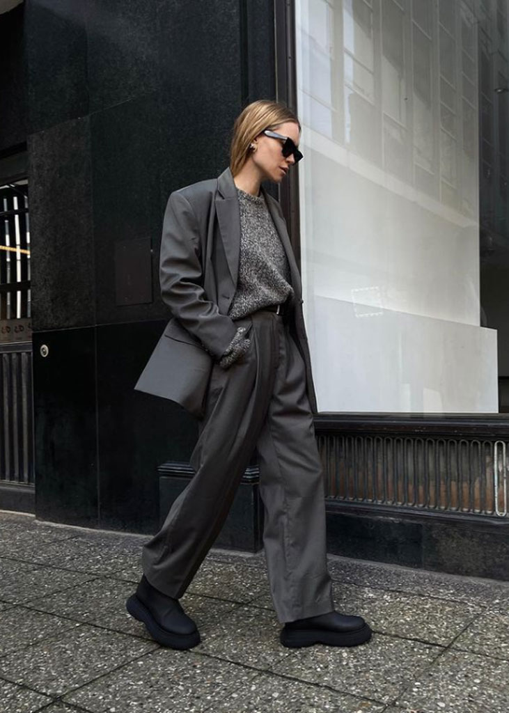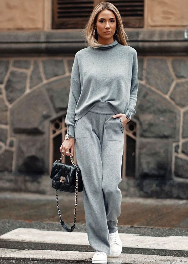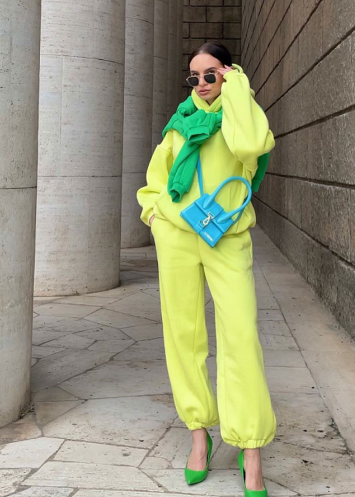 The trending trousers across social media are currently infusing us with fresh ideas while creating iconic mainstays with stable trend pieces. The trends, that have gained commercial potentials but remained strong for fashionable customers as well, include slit pants, dad trousers and leggings. To add some twist to those products, drawstrings and surprising materials are glamming-up the jogger into an athlete product, while straps and prints can reduce the sporty feel of a legging. Those favorites are accompanied by elevated cargos and flares for the more fashionable consumer. The most trendy are looking for cyclers to pair with their high boots or new design details, like lace-up. These trends have small visibility, but demonstrate a big growth index testifying the quick adoption between the mega influencers. Considering fabrics, multiple brands are experimenting jersey trousers and different stretch materials to add confort evento the most fashionable silhouette and these materials are certainly a clever choice to satisfy clients.