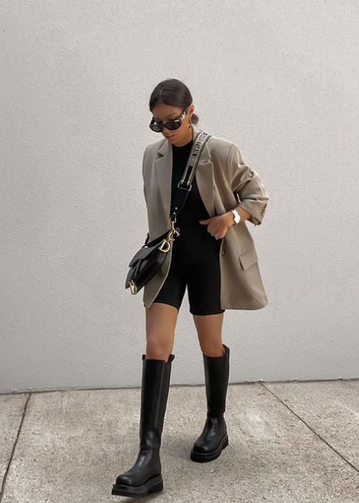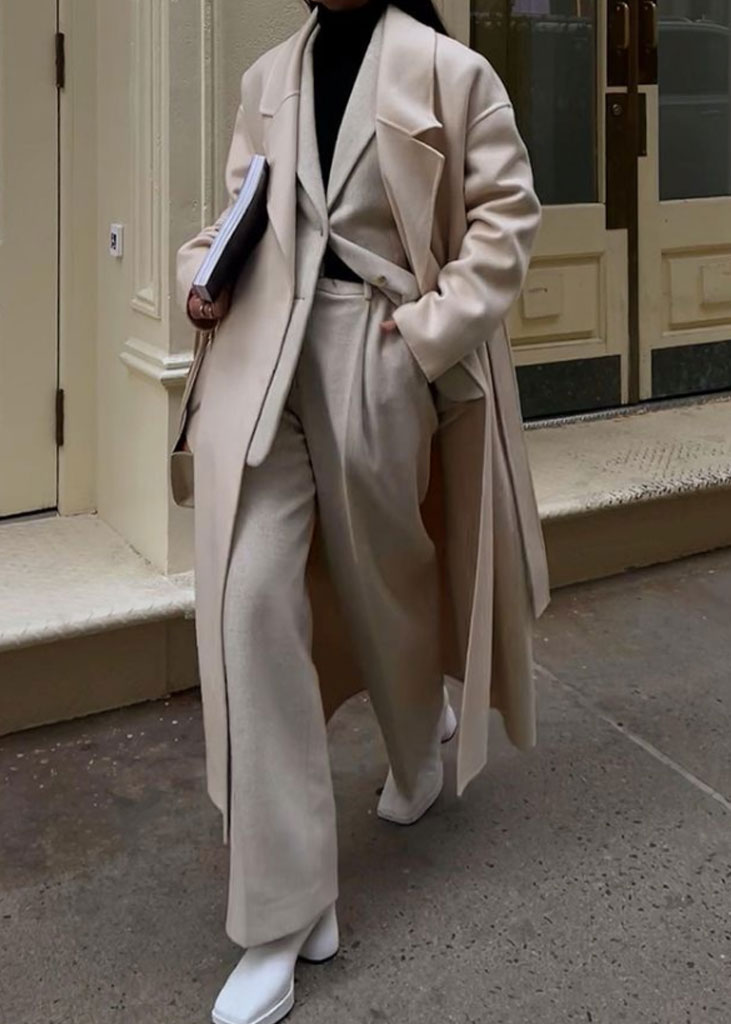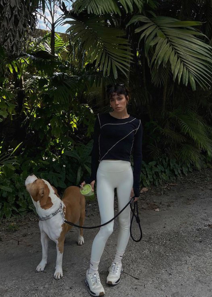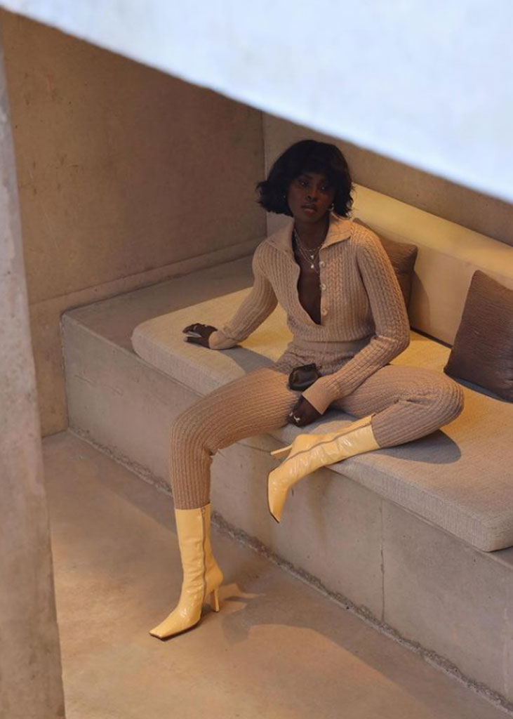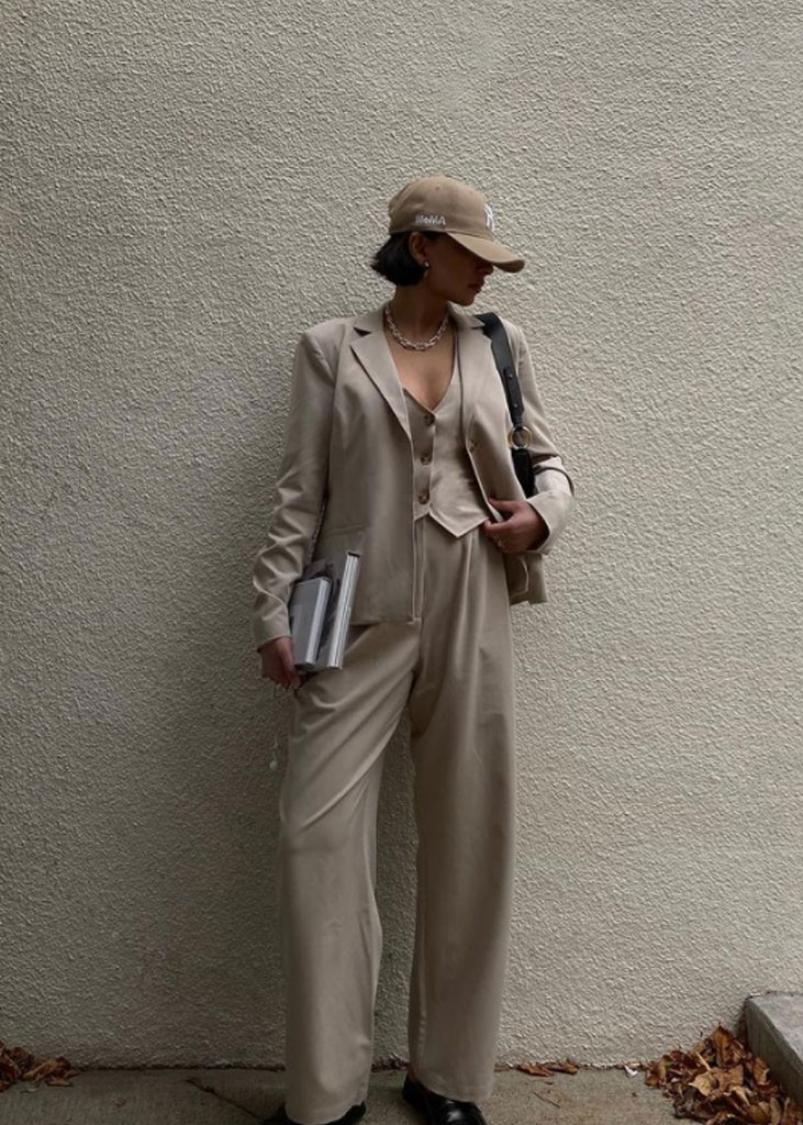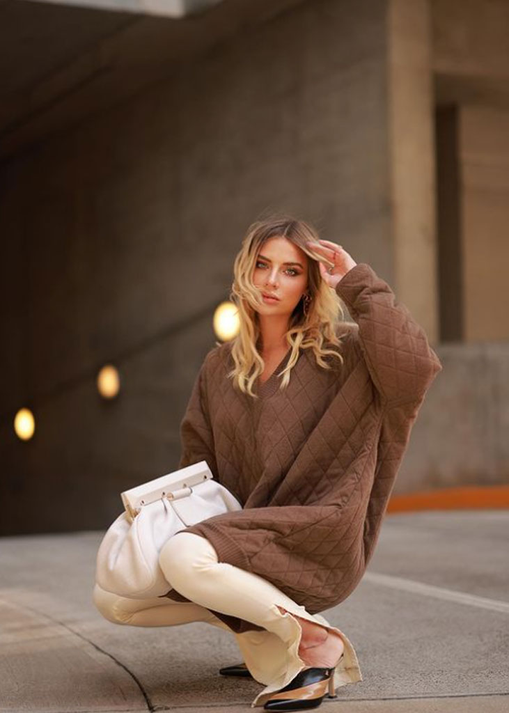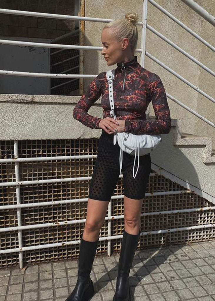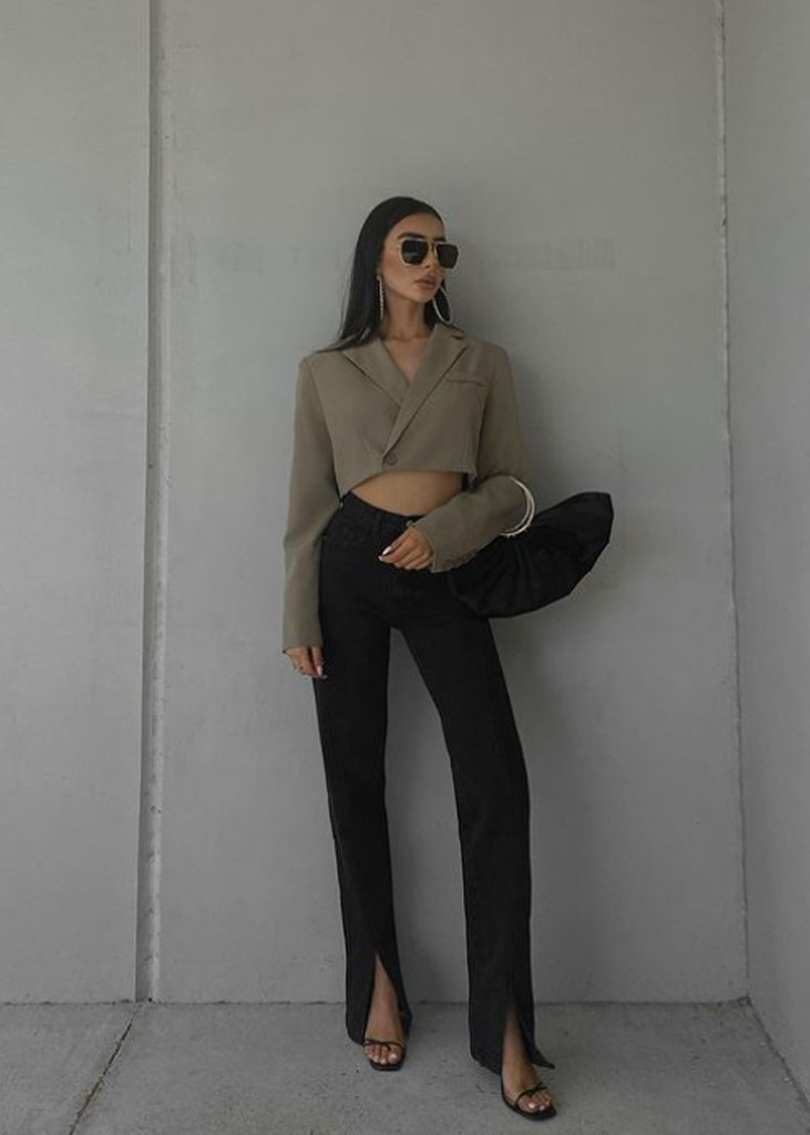 The trending trousers across social media are currently infusing us with fresh ideas while creating iconic mainstays with stable trend pieces. The trends, that have gained commercial potentials but remained strong for fashionable customers as well, include slit pants, dad trousers and leggings. To add some twist to those products, drawstrings and surprising materials are glamming-up the jogger into an athlete product, while straps and prints can reduce the sporty feel of a legging. Those favorites are accompanied by elevated cargos and flares for the more fashionable consumer. The most trendy are looking for cyclers to pair with their high boots or new design details, like lace-up. These trends have small visibility, but demonstrate a big growth index testifying the quick adoption between the mega influencers. Considering fabrics, multiple brands are experimenting jersey trousers and different stretch materials to add confort evento the most fashionable silhouette and these materials are certainly a clever choice to satisfy clients.