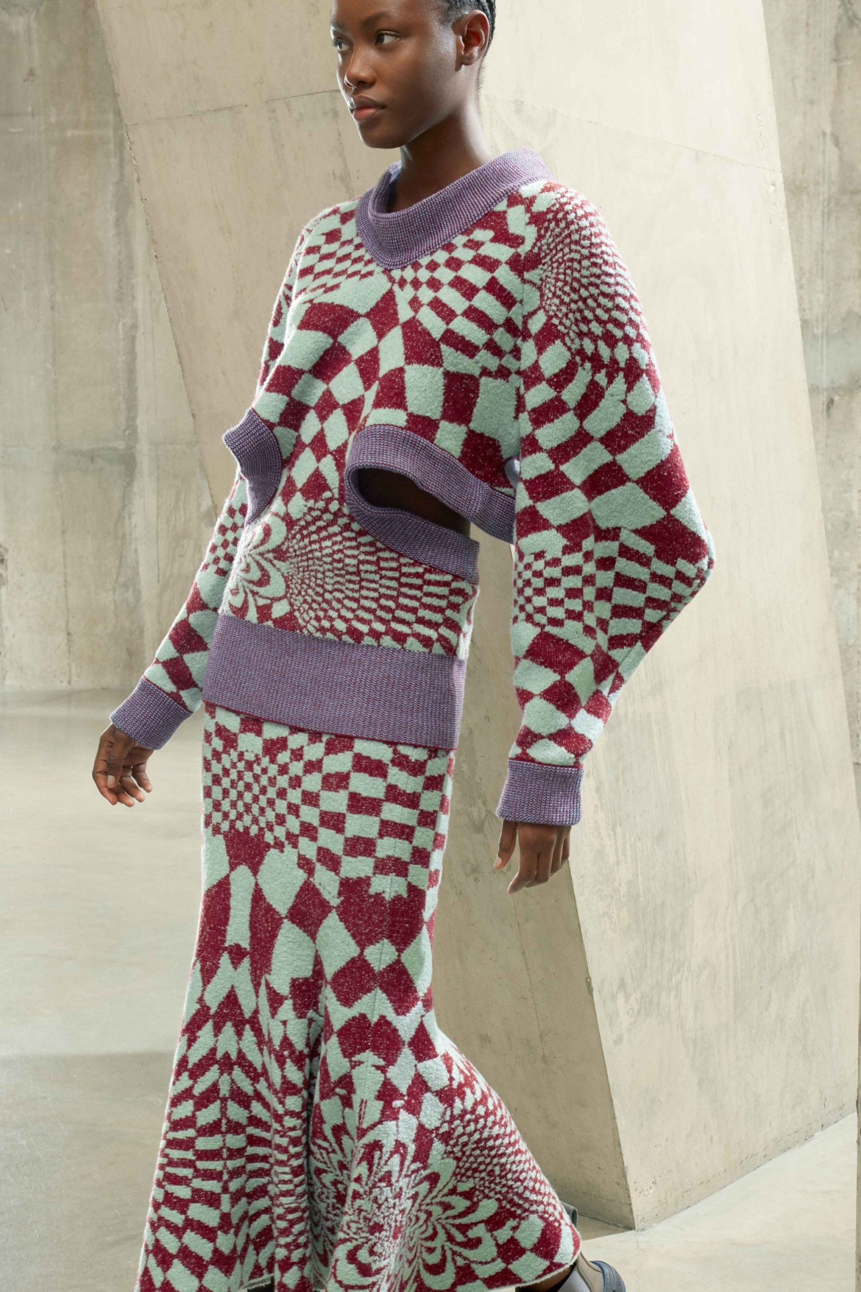 The trend of transparence, which is expected to be stable for FW22, also affects knitwear giving rise to more open workings, needle scraps and sophisticated net effects.