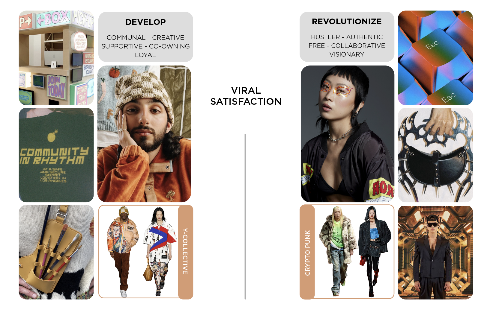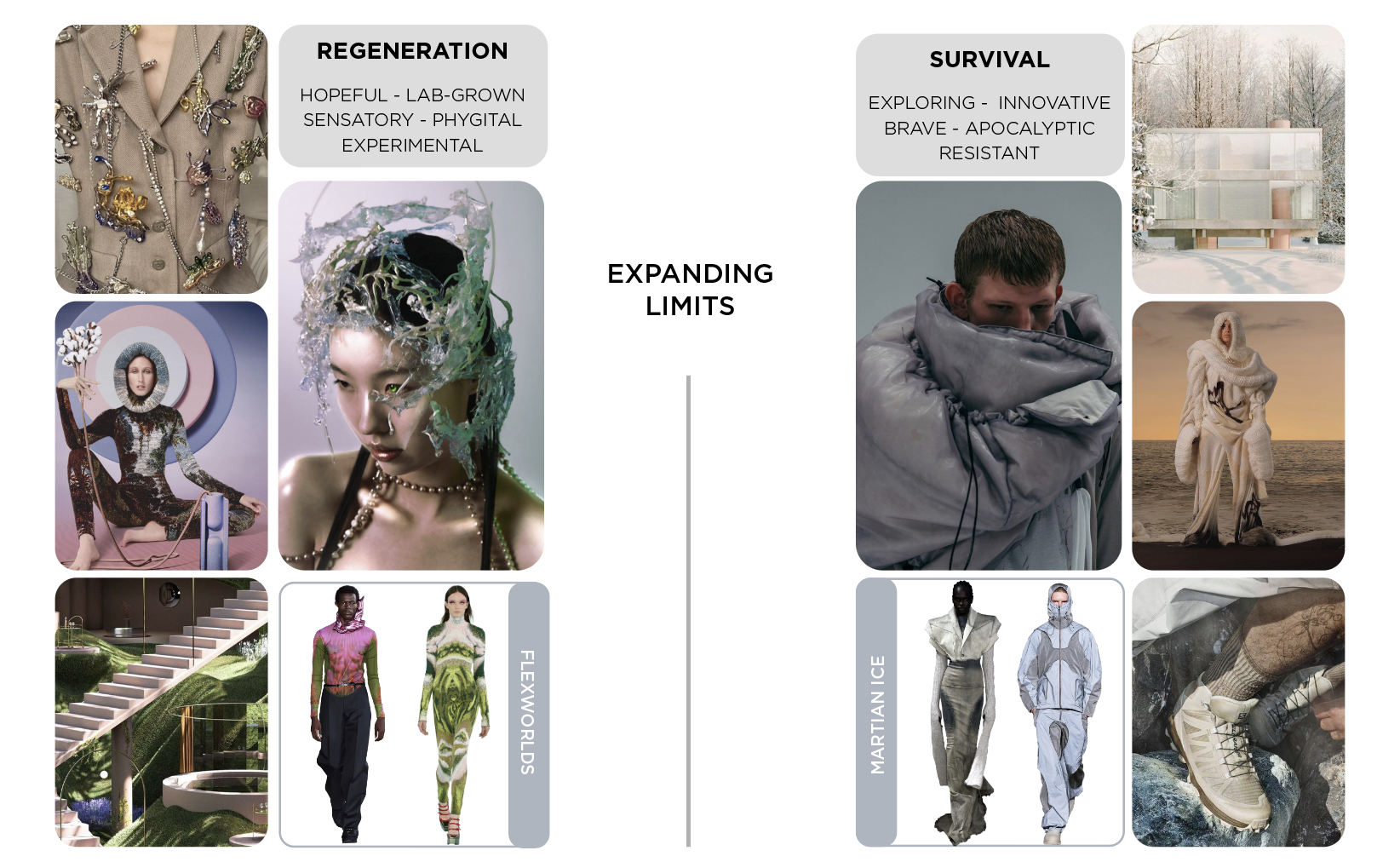 New Foundations. In 2023, consumers will be setting the foundations for their long-awaited future. People will be looking ahead and proactively contribute to the world’s development. Their optimism will feel more grounded in what is actually possible and aspirational, looking towards primal knowledge and technological solutions. After the crisis, the excited and roaring period of fun is going to tone down, so that consumers can begin to re-align their thoughts. The collective drive to build a better tomorrow will take a post-humanist approach that considers more than just people but extends to their entire eco-system. For 2023, setting the correct fundament for a prosperous future means to re-invent the relationships of people, planet, objects and time. A collective and dynamic generation will acknowledge the interconnectedness of things to establish systems that focus on support community, identity and the environment in equal parts. The next year will also see consumers augment their imagination and enhance sensations for richer, more intensified experiences (in the real-world and online). This enhancement will feed consumer’s sensory desires after a long period of emotional and physical numbness. Overall, people will look towards more intelligent design solutions that can match new lifestyles and changed value sets. And as we explore the endless possibilities of primal knowledge up to the metaverse, our creativity will be stimulated by familiar and unknown worlds in order to drive us towards true re-invented and improvement.