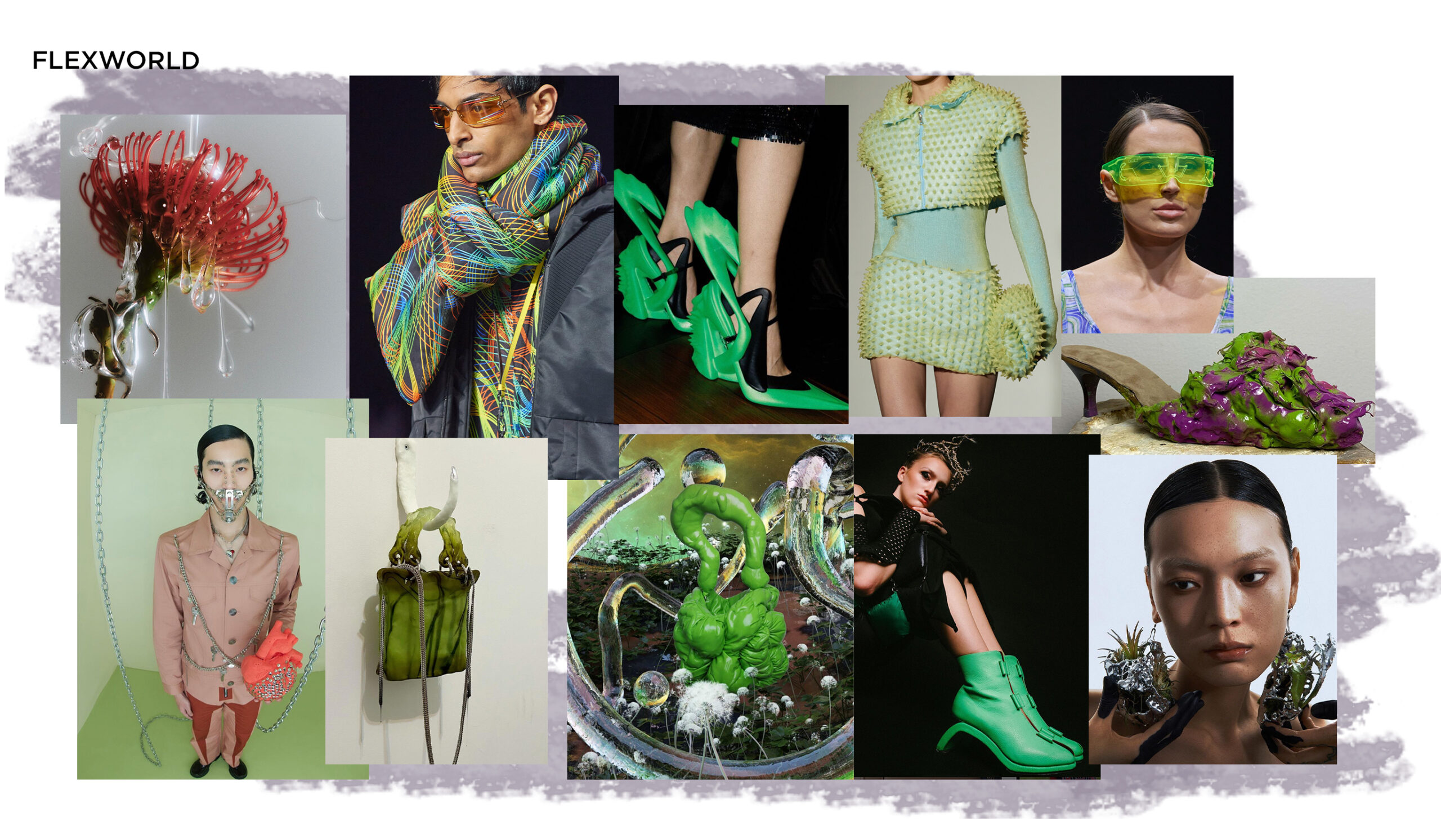 online – provocative – subversive – subcultural – virtual – bold – otherworldly form – streetwear appeal – digital palettes