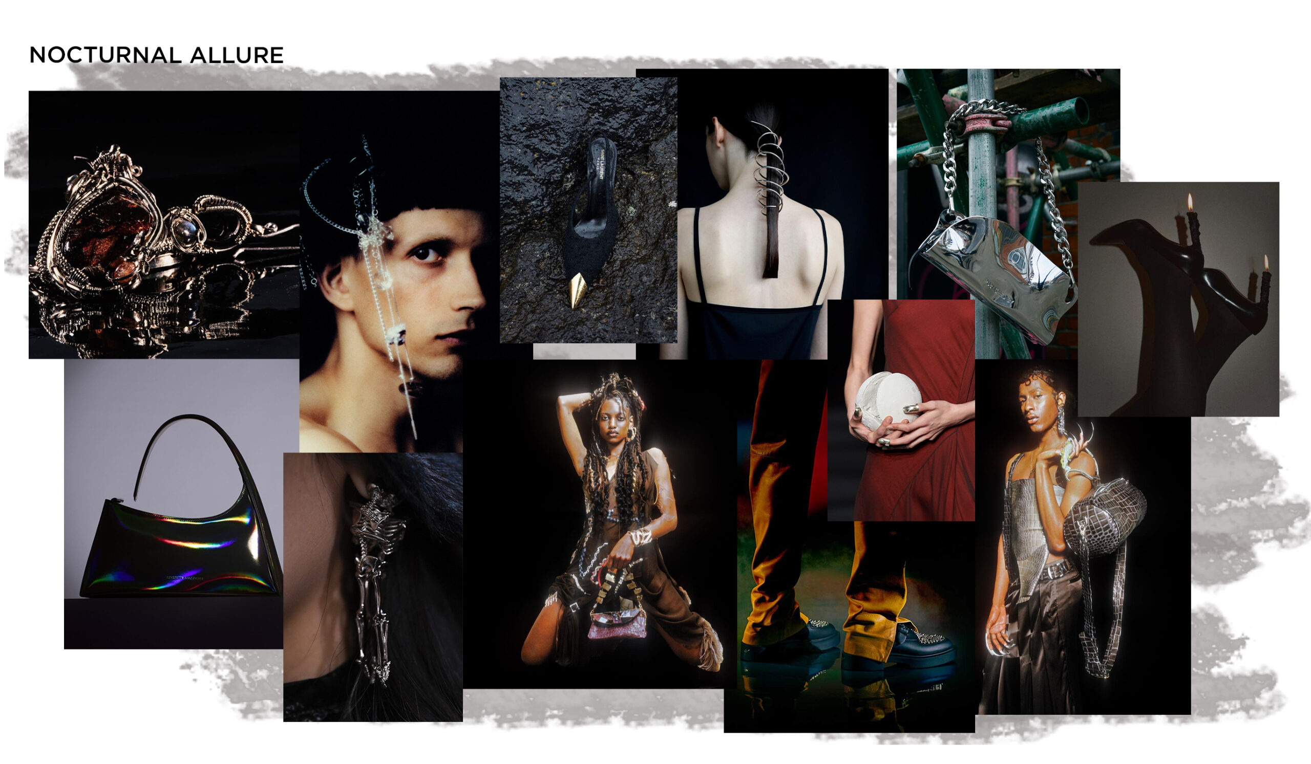 seductive – dominatrix – glooming materials – glitters & shine – gem stones – sharp outlines – nocturnal palettes