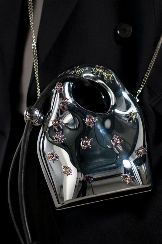 futuristic – modular – puffed volume – unexpected details – metal & metallics – clean silhouettes – armor & shields – smooth surface – calm palettes
