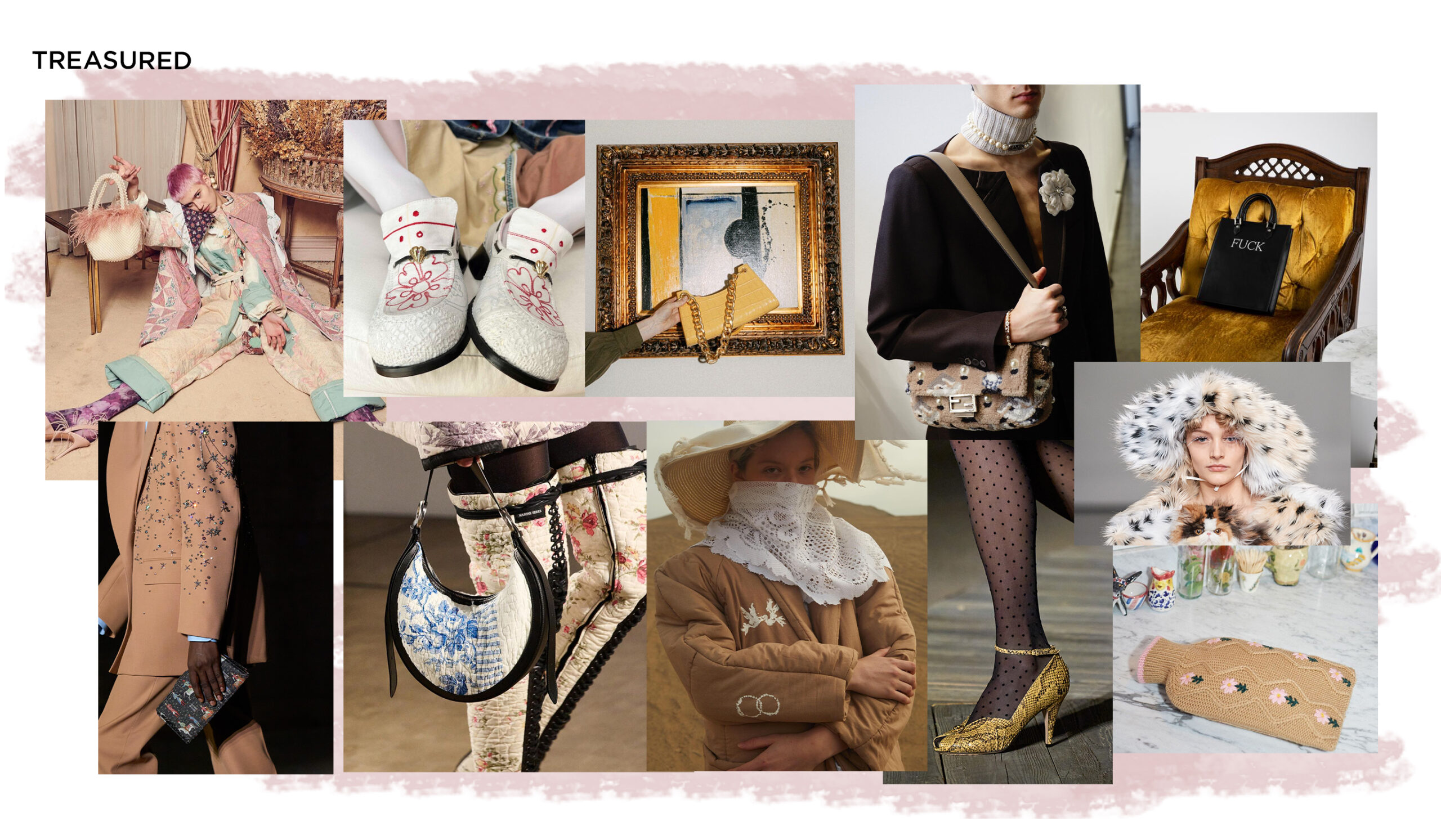 historic – delicate – embroidered – beads & pearls – feminine – tapestry – slim lines – pastel palettes