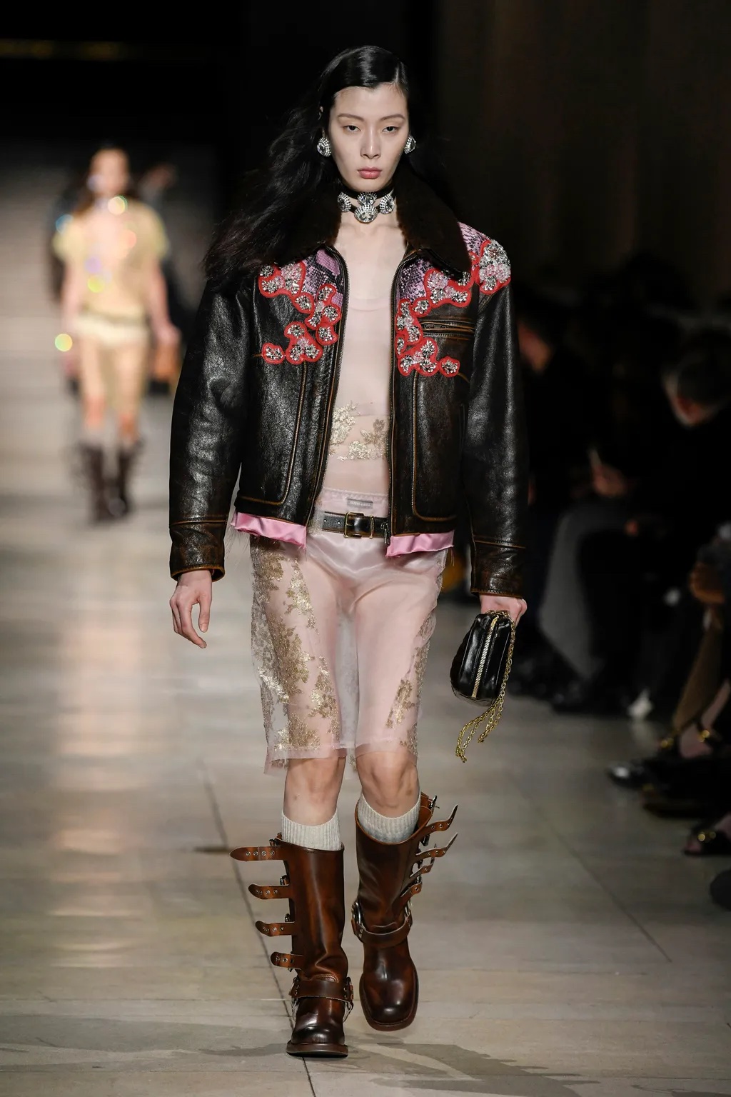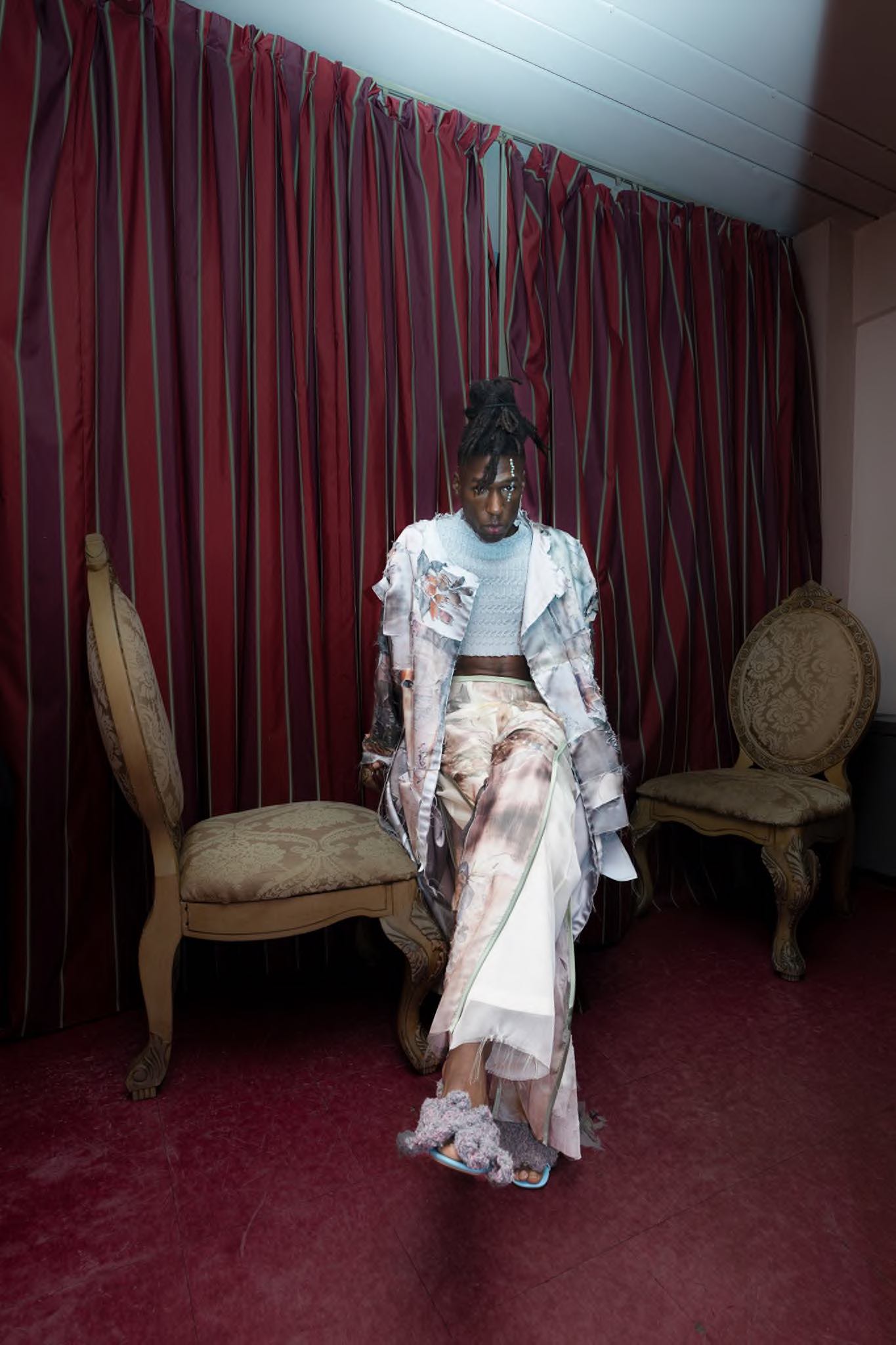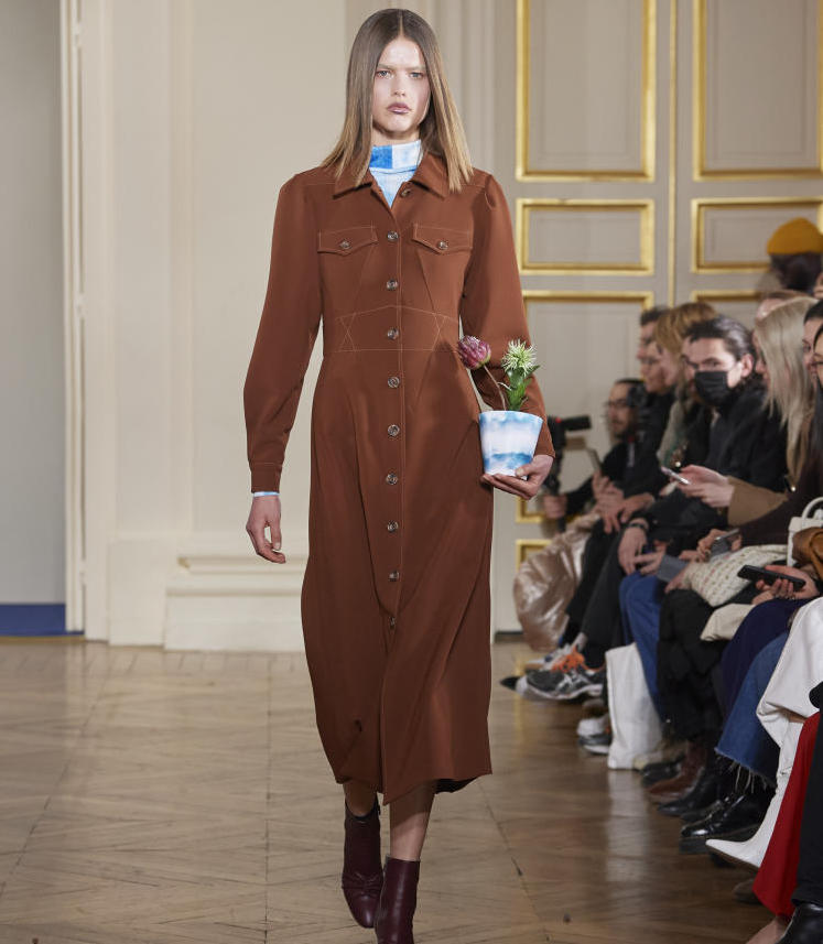 For the womenswear market, a sensibility for treasured vintage finds is met with subtle yet refreshing sensuality. The curated trend proposes several design directions, each maintaining a distinct feminine focus. The trends celebrate and clash gender codes as a deliberate statement for sexual empowerment. Current regency core will take a creative shift towards more experimental approaches. By deconstructing the classic empire look, a bold and sassy new interpretation proposes mad majesty moments that take us to eccentric castles. Opposed to this frivolity, nostalgia can dive into more purist directions: Farmland feelings proposes bucolic looks to incorporate a more homey and pure feel, taking consumers back to rural countrysides. Sturdy and slightly masculine garments propose clean silhouettes in neutral shades. Along an upheaval of collegiate aesthetics, a hint of prim & proper designs will create a more bon-ton-look to help consumers feel put-together and reassured. The idea of intimacy will also extend the culmination of lingerie within the womenswear market. Lingerie can be understood more intellectually and abstract here, creating silhouettes that allude to the mere diaphaneity of airy and fluid fabrics touching the skin. Those looks will be adorning the female body and feeling almost too delicate to touch, allowing those delicate demoiselles to deliberately play with their fragility and tenderness.