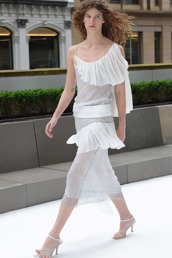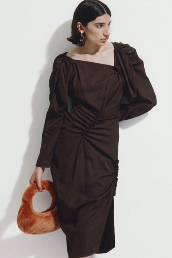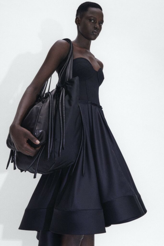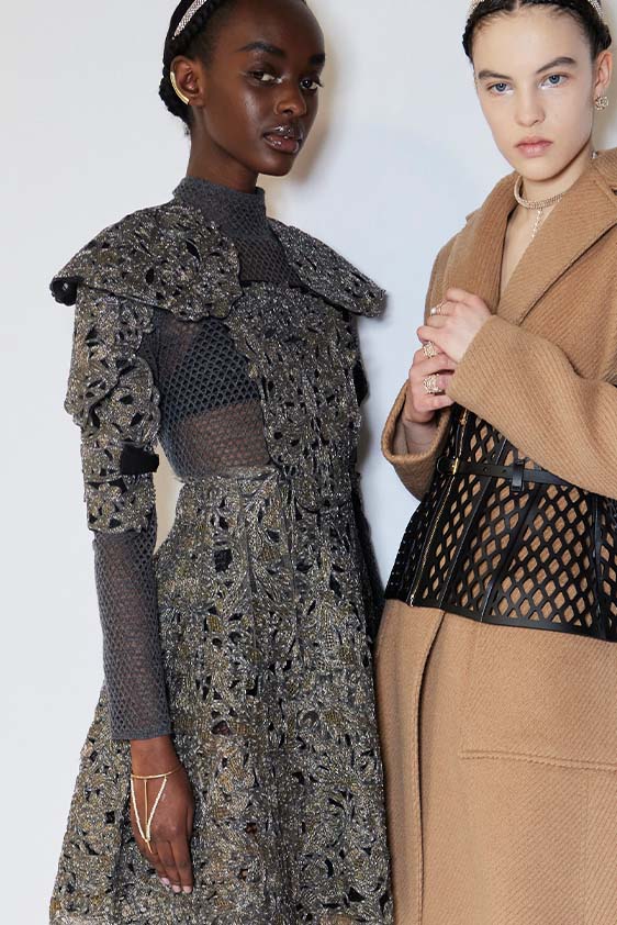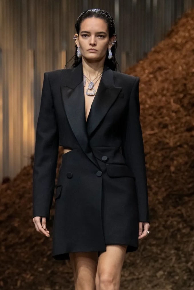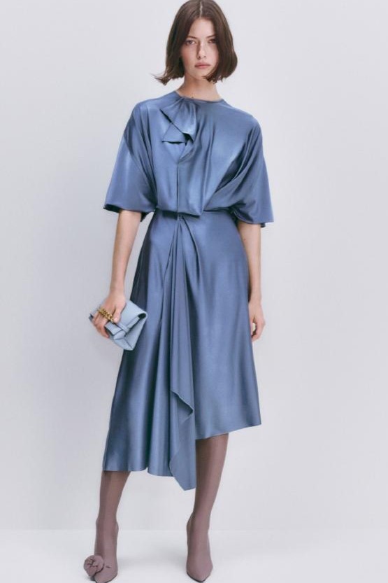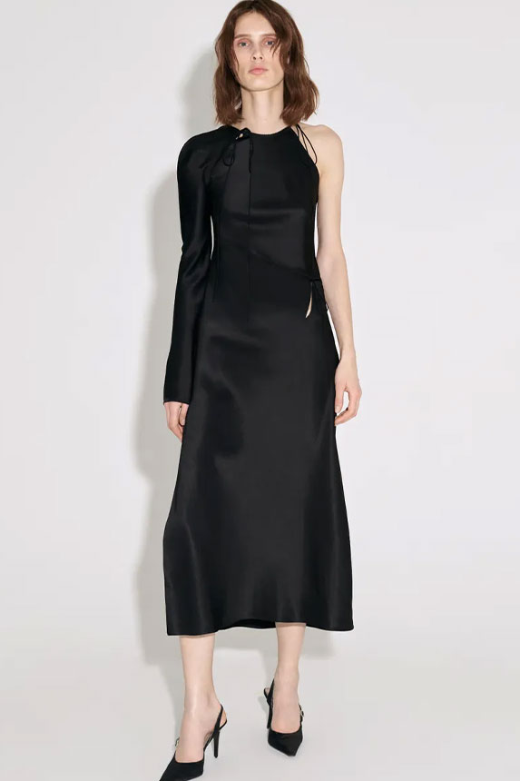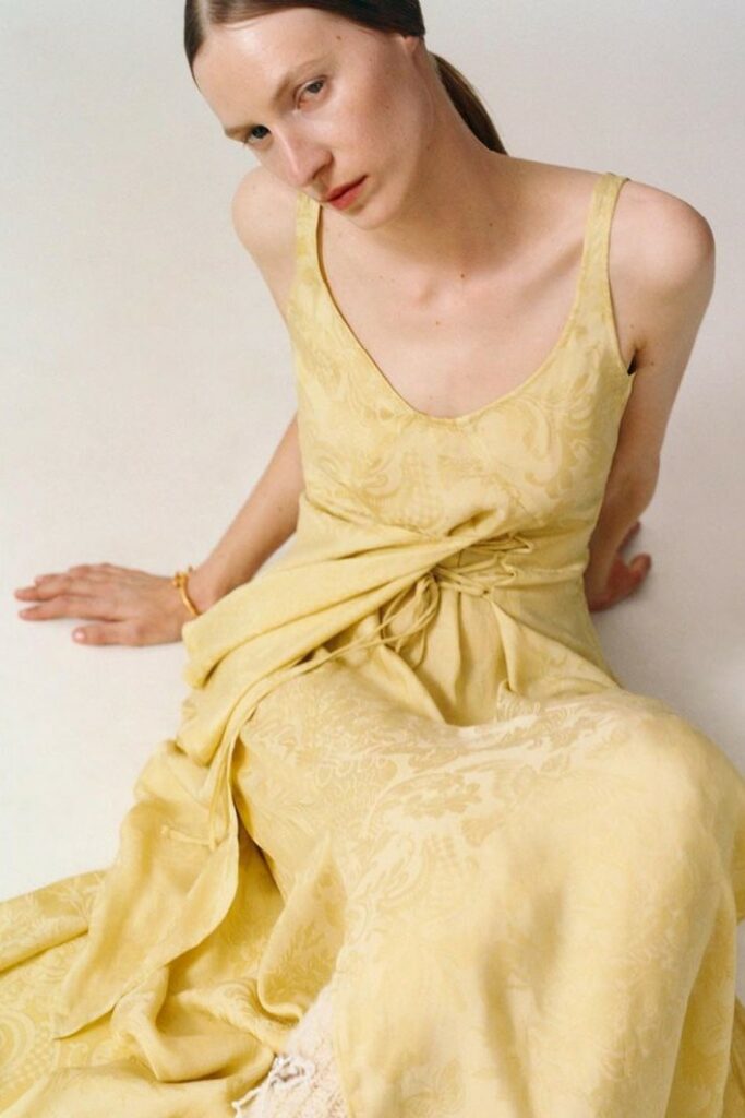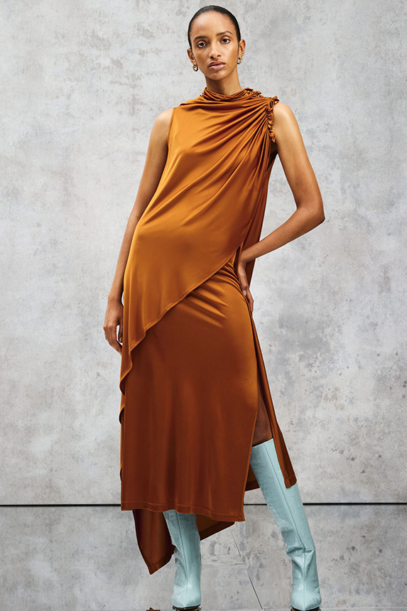 FW23 is full of beautiful new details. For the dress category, the next winter season is set to explore highly comfortable and versatile styles with elevating details on a larger scale. The fitted silhouette is still leading, though new drapes and twists are loosening up the silhouette and introduce more movement to the hyper-tight dresses of the recent post-pandemic momentum. Long sleeves are adding sophistication to mini and slip dresses. But the seduction of previous season remains. New lingerie looks embrace fuller skirts from volant and asymmetric lace drapes, while corsets are updated with more subtle chest-placed inserts. For women’s daily business, all-occasion dresses are moving in focus. From dressy slimline shapes with power shoulders that can move easily from business to evening to rather unfamiliar long jersey styles with lower waistlines, the minimal and flattering all-day dress is an intriguing novelty for FW23.