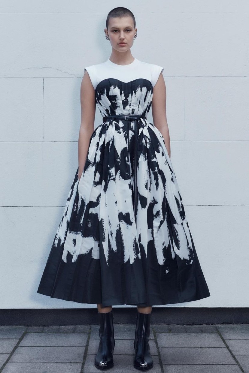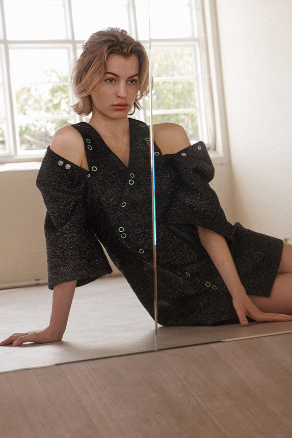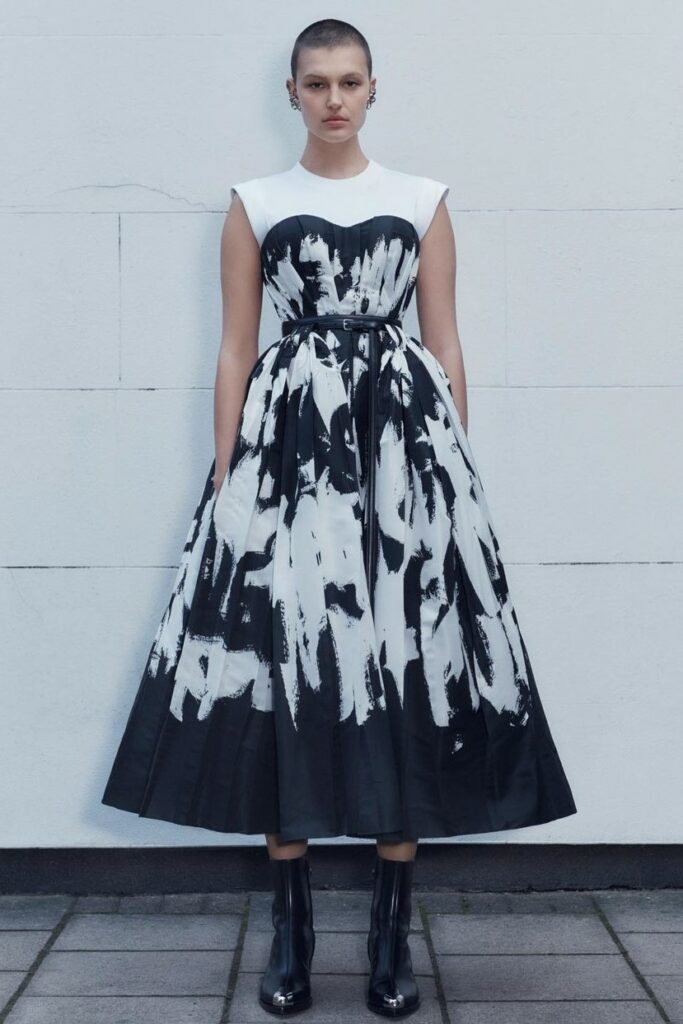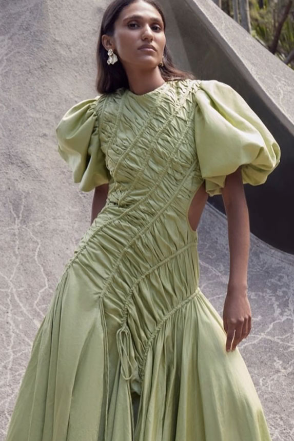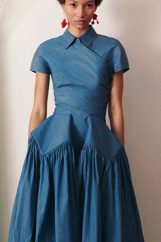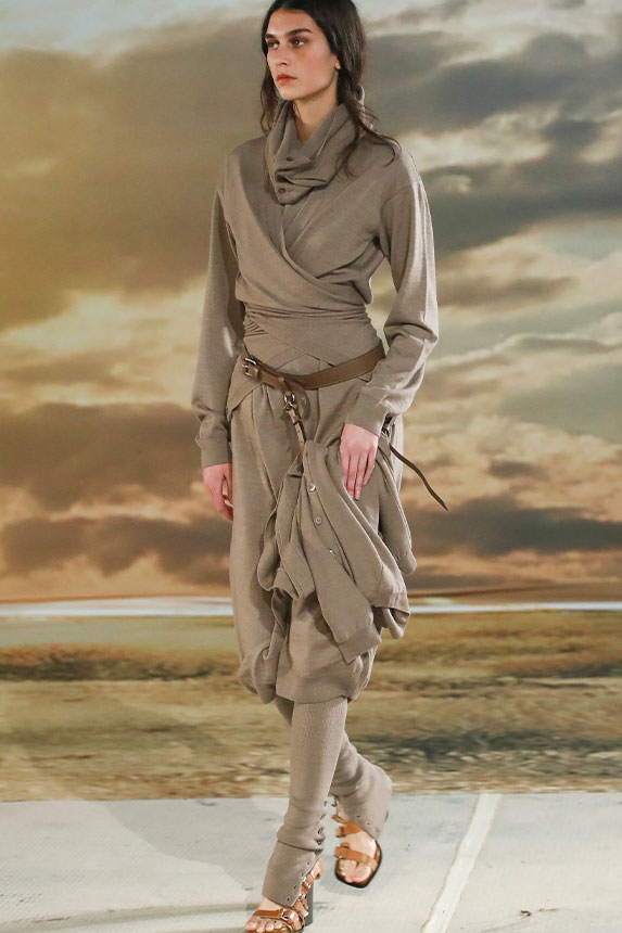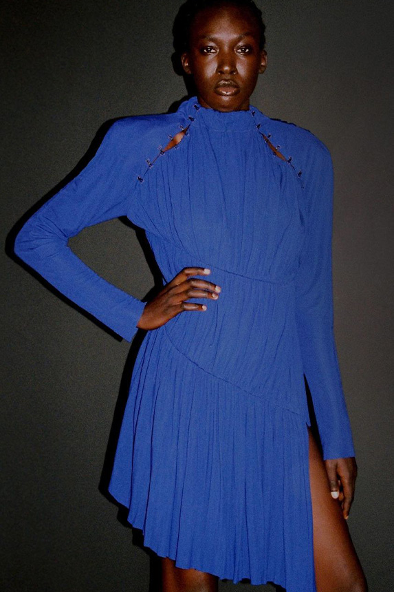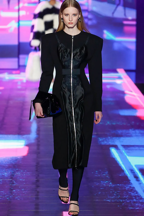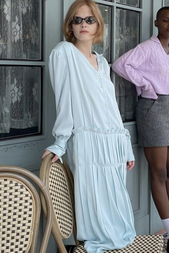FW23 is full of beautiful new details. For the dress category, the next winter season is set to explore highly comfortable and versatile styles with elevating details on a larger scale. The fitted silhouette is still leading, though new drapes and twists are loosening up the silhouette and introduce more movement to the hyper-tight dresses of the recent post-pandemic momentum. Long sleeves are adding sophistication to mini and slip dresses. But the seduction of previous season remains. New lingerie looks embrace fuller skirts from volant and asymmetric lace drapes, while corsets are updated with more subtle chest-placed inserts. For women’s daily business, all-occasion dresses are moving in focus. From dressy slimline shapes with power shoulders that can move easily from business to evening to rather unfamiliar long jersey styles with lower waistlines, the minimal and flattering all-day dress is an intriguing novelty for FW23.