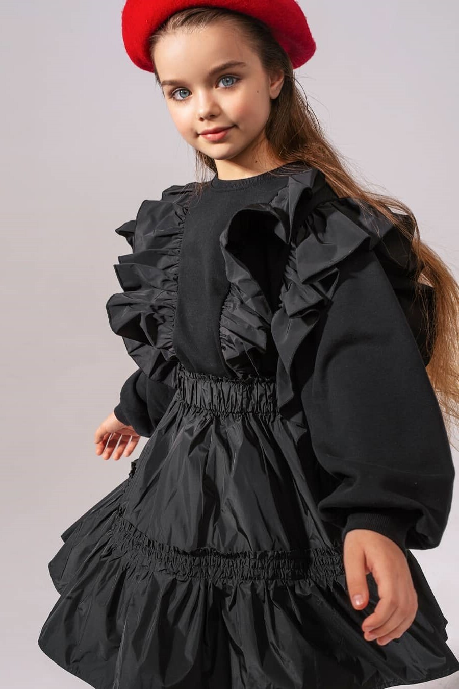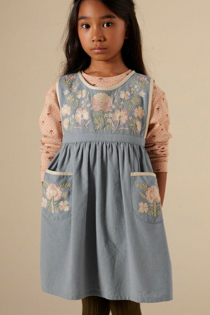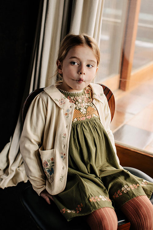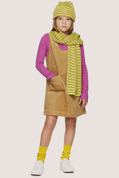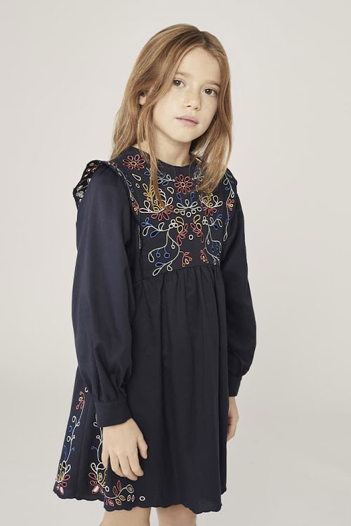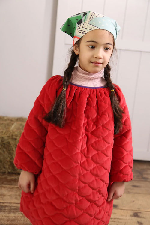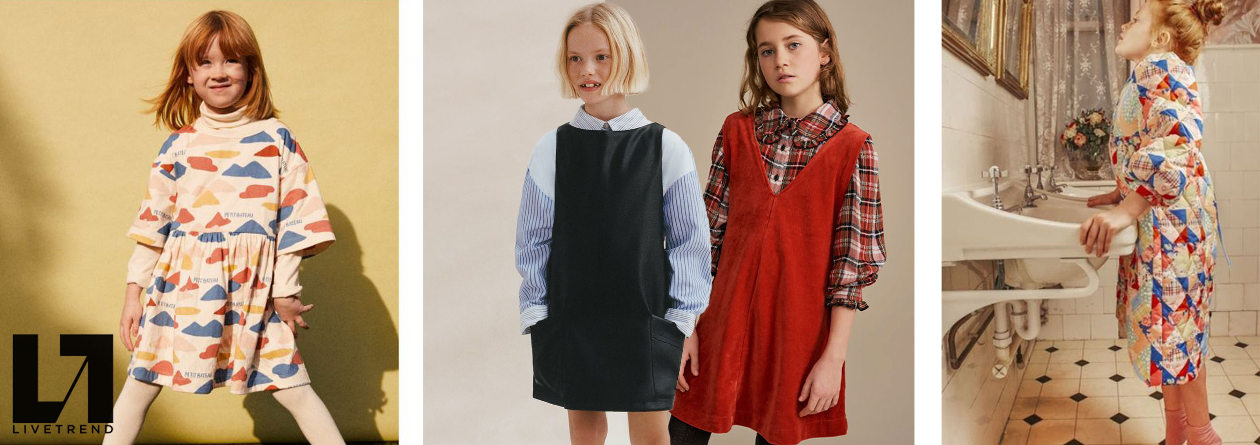 Cottage Tales & Urban Games. Girls embracing a duality within dress assortments for FW23. From romantic, rural vibes with ruffles and artisanal details the winter season offers a new take on the classic doll-collar cottage dress. The babushka dress has a more nostalgic feel due to its poetic embroideries and victorian ruffles. But more simple silhouettes in trending quilted materials or simple vest styles are proposing more stylish tiny-adult products. Considering a more urban style, oversizes shirts and sporty polo and skater dresses are enriching the range with a more practical and genderless note.
