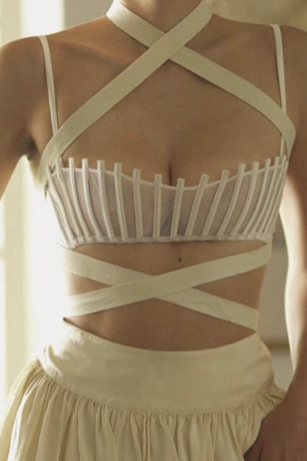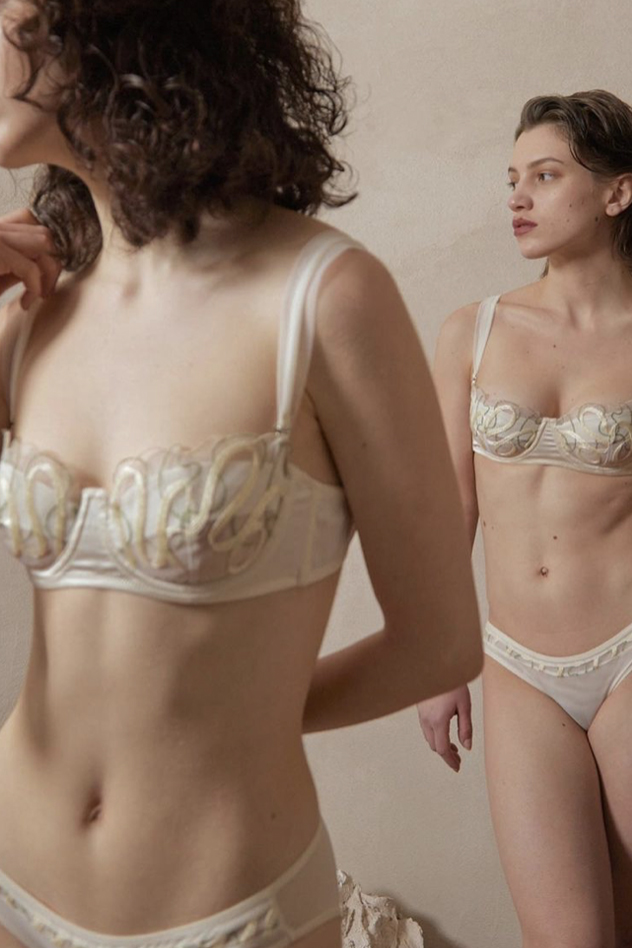 Romantic Subversion. For FW23 lingerie, it is essential to make women feel powerful and desired. The key ideas for the next season’s must-haves are: seduction, dreaminess and uncompromising ease. Women’s new sense of femininity maintains current intimate styles that are full of playful floss and strap details next to smooth and comfortable no-fuzz combos and more frivolous looks that dive into the archives of historic lingerie. While sexiness feels rather delicate than rough, the trending seductive appeal of daywear-lingerie remains. Looking at the numbers, halter bras have increased by +60% in searches over the past year, while corsets grew steadily by an equal +60% and bralettes even increased by +70%. Take a look at the Livetrend hot item selection for FW23 to inspire your silhouettes and detail choices: