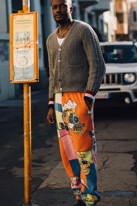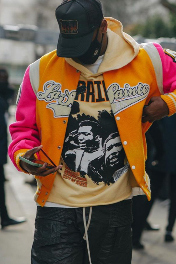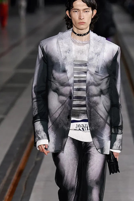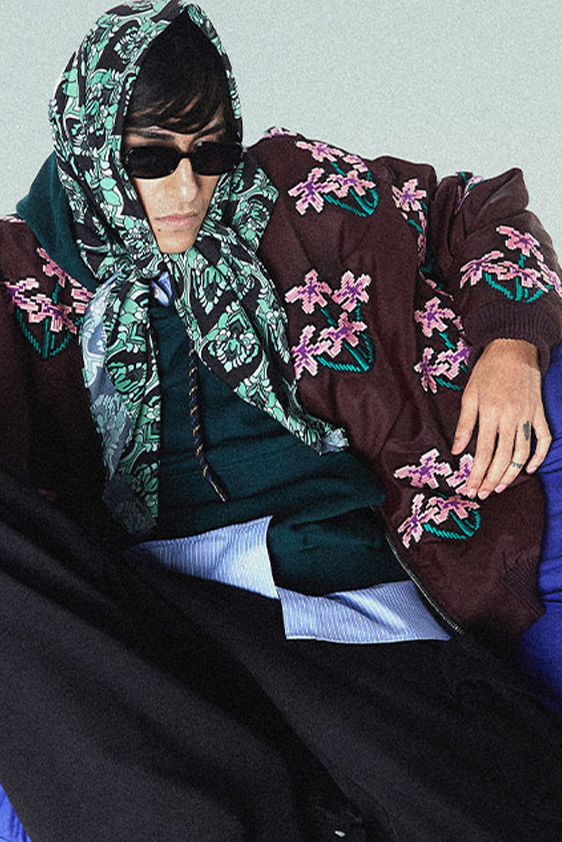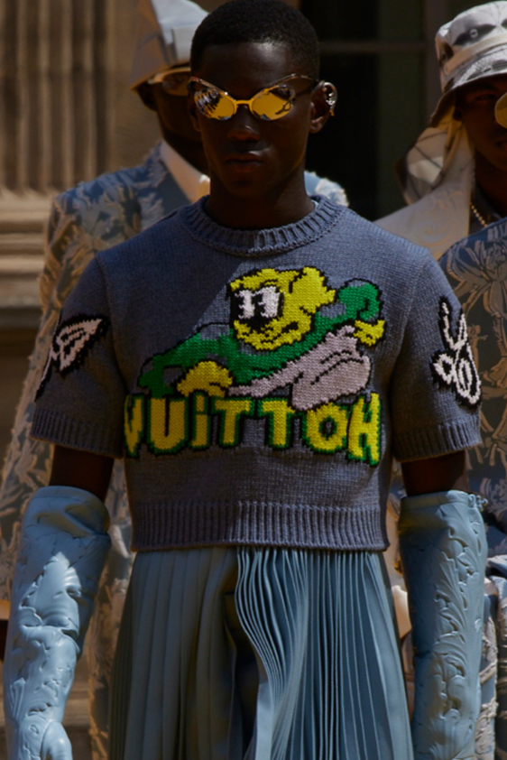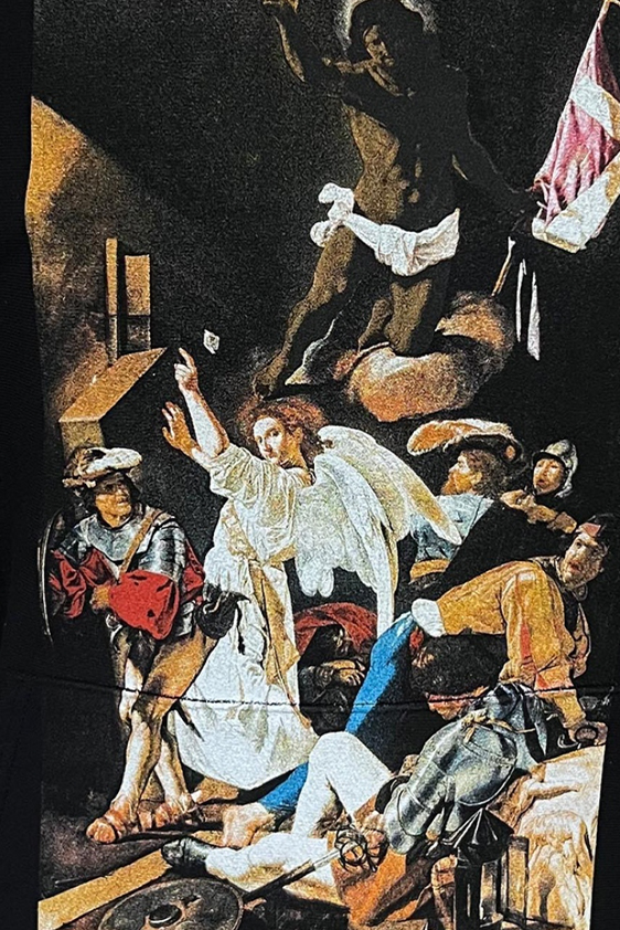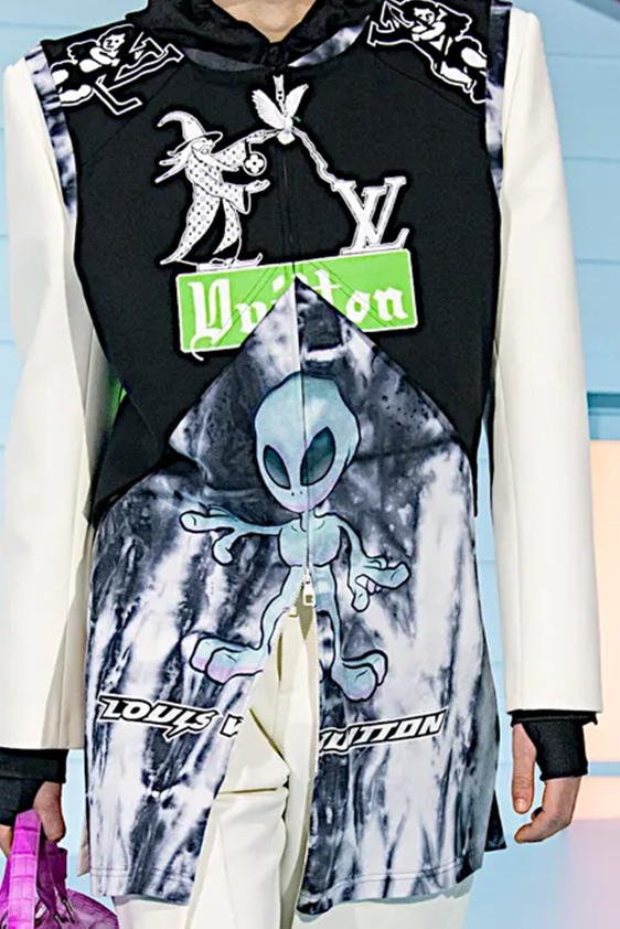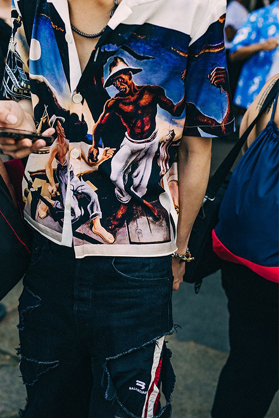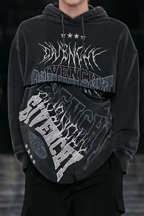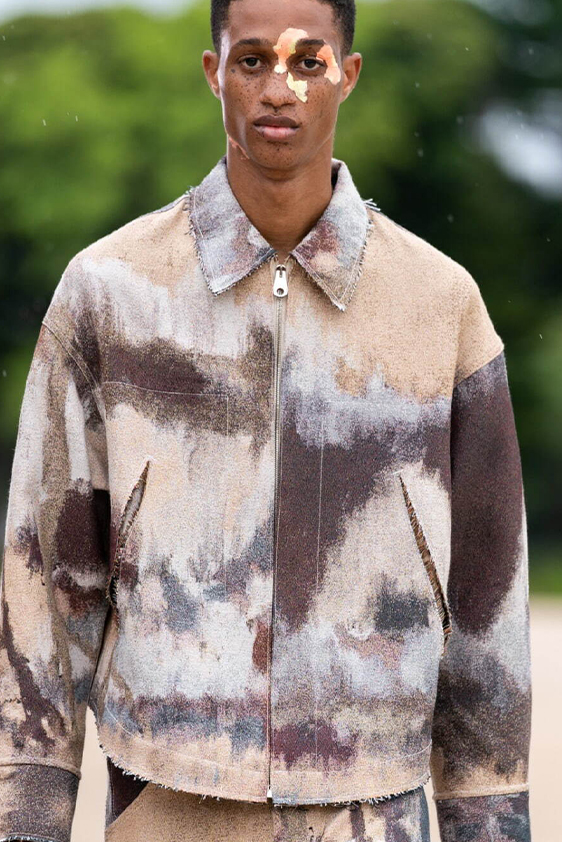 Serene & Hardcore – Graphics & Prints for FW23 Menswear are exploring several trends that are beginning to manifest currently, yet explore new and unexpected ways. While some core looks, such as artful prints or animal, become more abstract and vague others become even more realistic and precise, displaying a very dualistic state of mind. The biggest influences are most certainly a somber and dystopic moment, in contrast to another inspirational stream of effortless joy and childish ease. The individual in relation to its community or in relation to the planet are becoming predominant themes. Messages and statements, doodles and full-face representations of humankind capture such a new understanding of a more humanistic society.