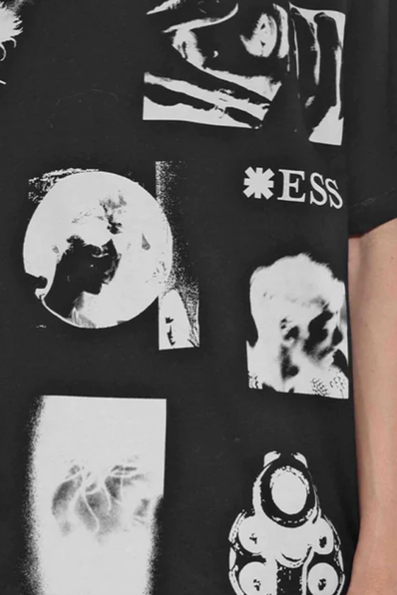 At the same time, subculture and rebellion remain not to miss, considering the big rise in gothic-inspired fashion. From studs to hardcore fonts, darker collages and the effects of photos or polaroids – the nocturnal and seductive feel is relevant for FW23 graphic choices. Tartan is back with +180% growth in search rates, but in a subcultural way can be explored with fresh overlays, such as florals or text. Anime T-Shirts also went up by +200% over the last year, adding youthful moments to the mix with comic inspirations, doodles and patches for an ironic scholar vibe.