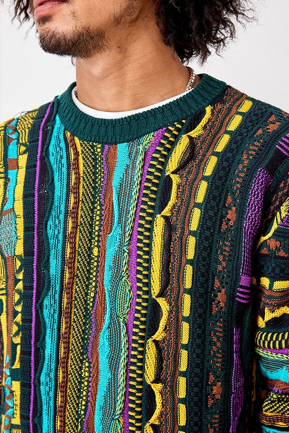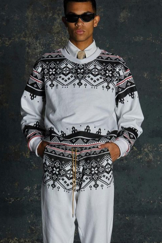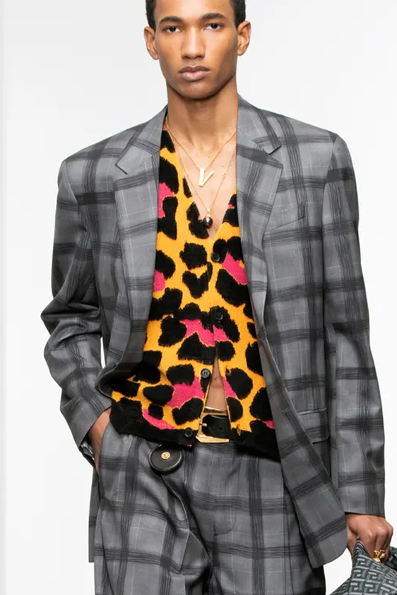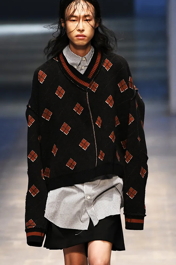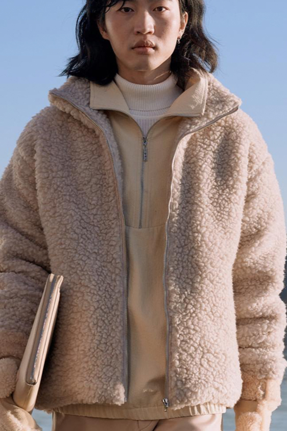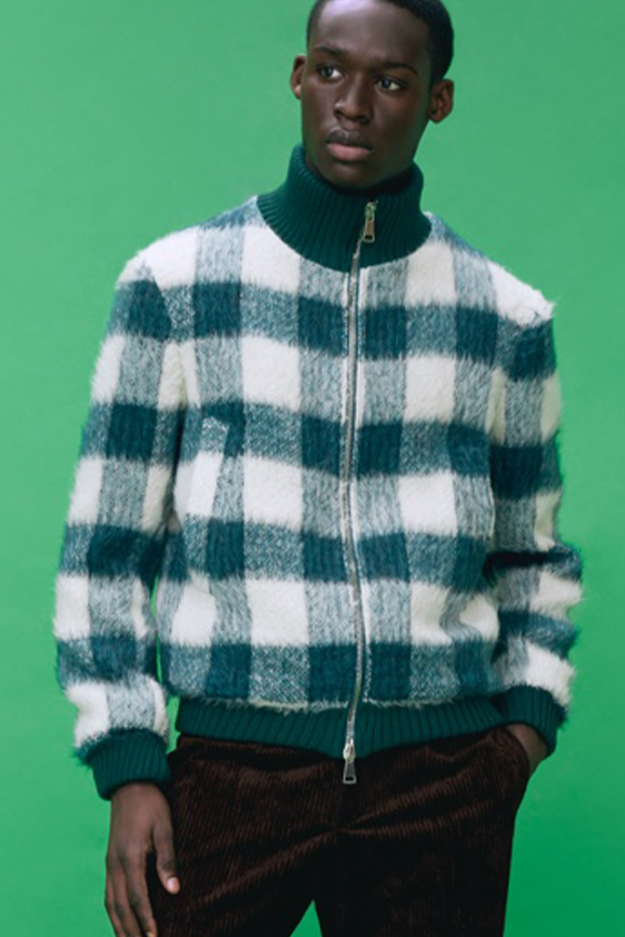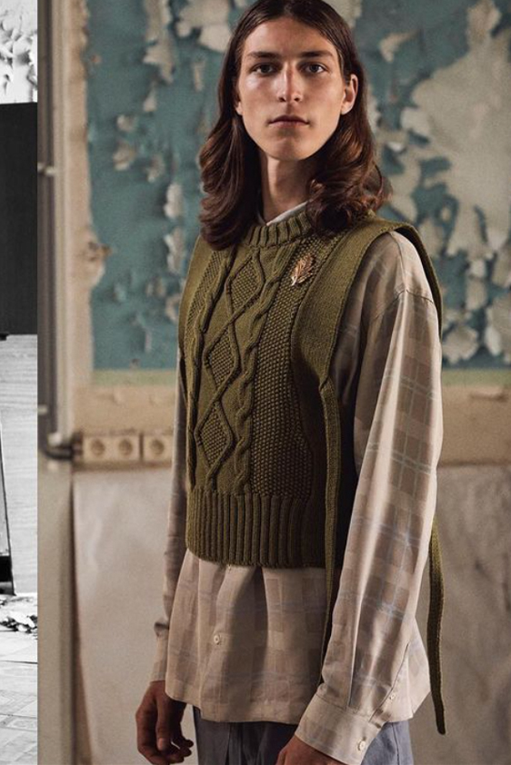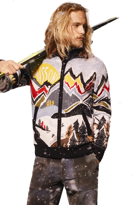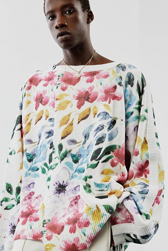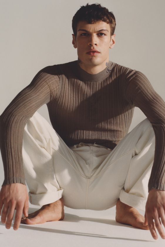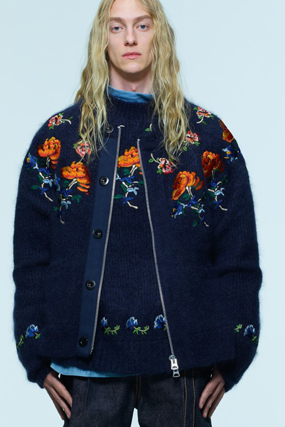 For shapes, the influence of new masculinity is adding slim fit silhouettes, dapper Polos and Deep-V shapes for a more fashionable client. Slouchier looks are ideal formal of those new grunge looks and build on elongated sleeves, dropped shoulders and crew or slashed necklines. From a modernist influence, technical zip-ups and half-zip-up products are explored and add an innovative sensibility. Zipped knitwear has increased by +60% in searches over the last year, showing a consumer taste for more engineered styles.  The futuristic look can be enhanced by plastron elements and new textures. Dive deeper into the new knitwear pieces and aesthetics below: