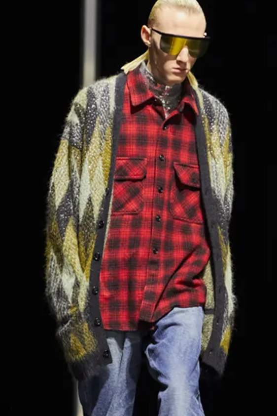 Goodbye simple jumpers! Knitwear is embracing bold storytelling for FW23 to help consumers express their identity. Colorful knit sweaters have grown by +80%, embracing jacquards and intarsia techniques for all-overs, motifs and new appearances. Jumpers and Cardigans are becoming a canvas for multiple design themes and depict current trends from Grunge, Horticulture, New Masculinity and Prep School Academia. Especially distressed and grungy styles are the must-have of the next season, with holes or loose yarns adding a rough look. The aesthetic has been seeing +120% growth in yearly search rates and have a promising business perspective.  Mohair is certainly a new favorite and consumers are spiking searches by +70% YOY now.