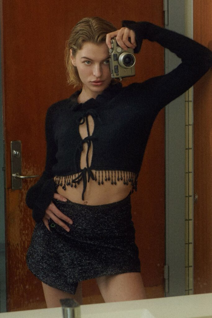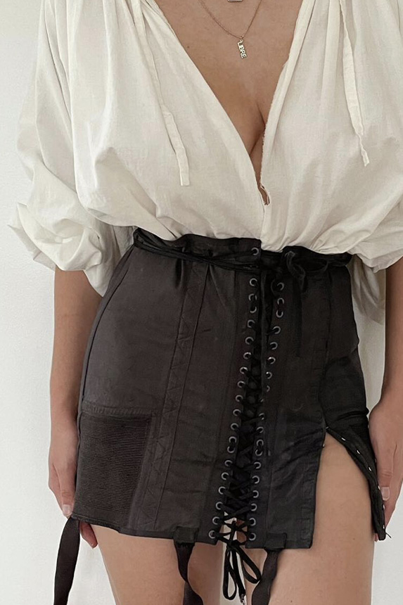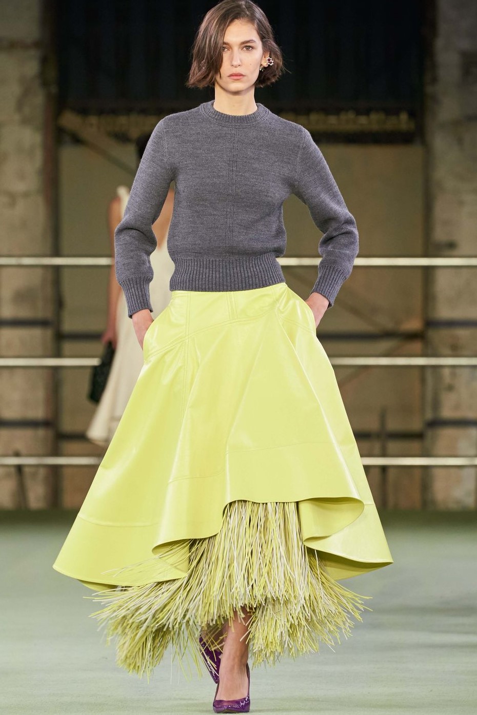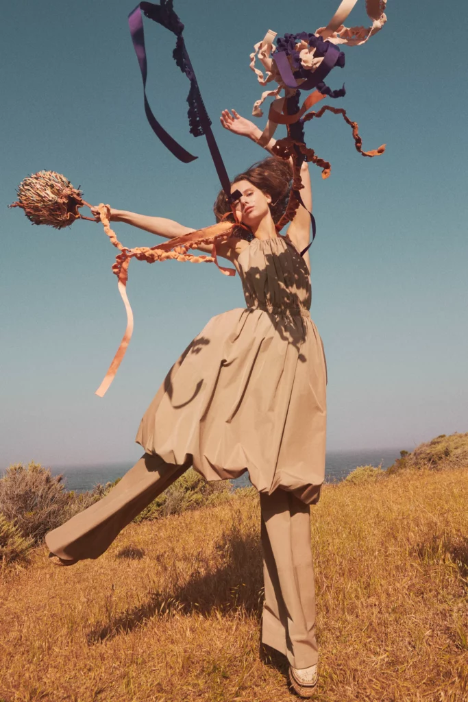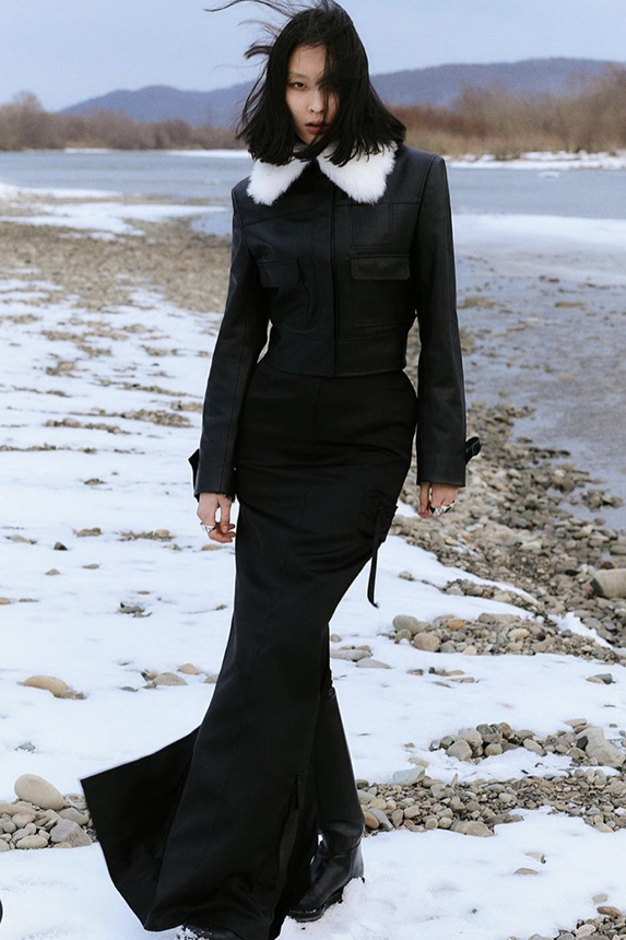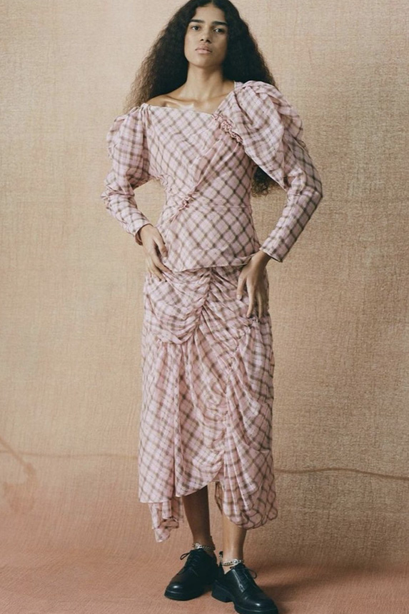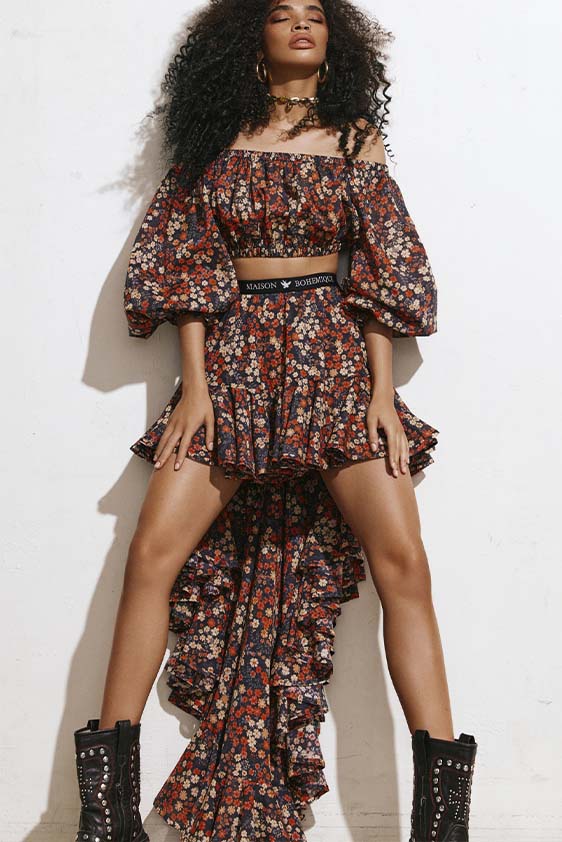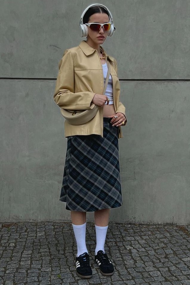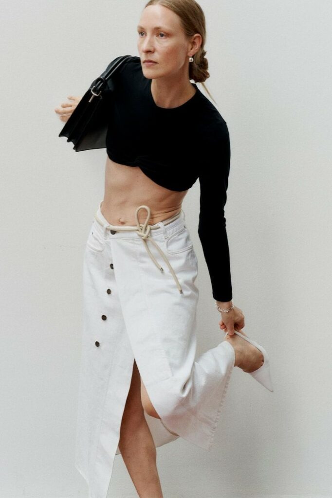 Bohemian Academia. FW23 skirts are exploring heritage and a newfound freedom equally. The essential range will build on column midi skirts and handkerchief silhouettes, which resonate those ides of something still and something dynamic. The category begins to open up to returning classics like the trumpet shape or A-Line, which add a sophisticated allure and feel very fashionable with trending low-waists. Due to the big success of the academic pleat style. Consumers still show interest in the style after the big social media boom during FW22 fashion week and maintain a growth of +50% YOY in search rates. Now, new quilt skirt emerge from the highlands by mixing layers or interpreting shorter lengths. Next to that, a deliberately minimal pleated skirts is feeling fresh again as it can explore a new focus on construction and detail.