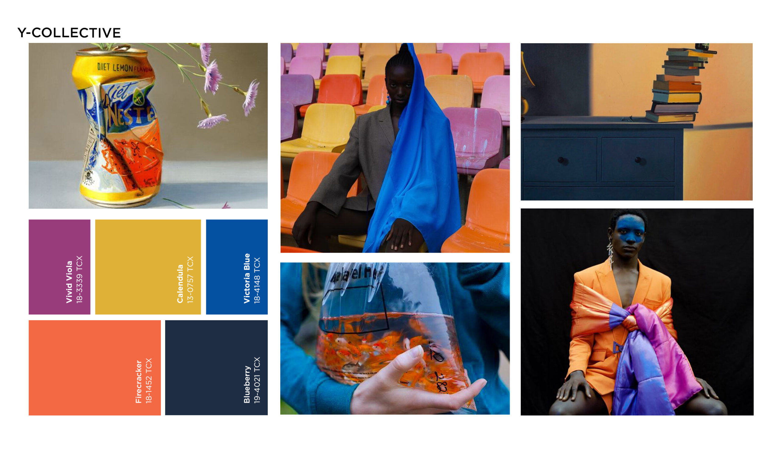 This palette narrates a modern story of community. New colors enhance the new traditions that built on re-established local networks and vital positivity. To reflect those communal sentiments, notes are feeling warm and contrasted. They offer a dynamism and depth that restores important attributes of successful societies. A bolder look that draws on the celebration of uniqueness provides hints of more saturated and classic vivid colors. Ranging from viola to electric blue, light is inserted into the palette to elevate its optimistic and youthful appeal.