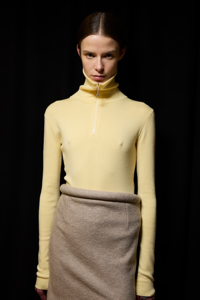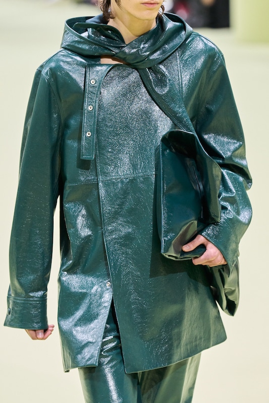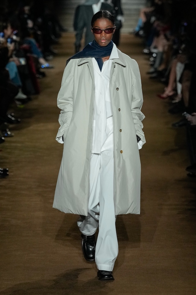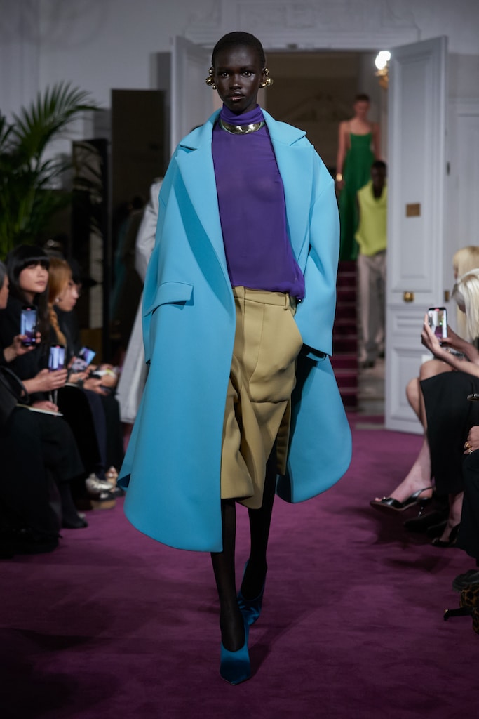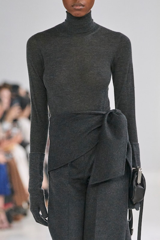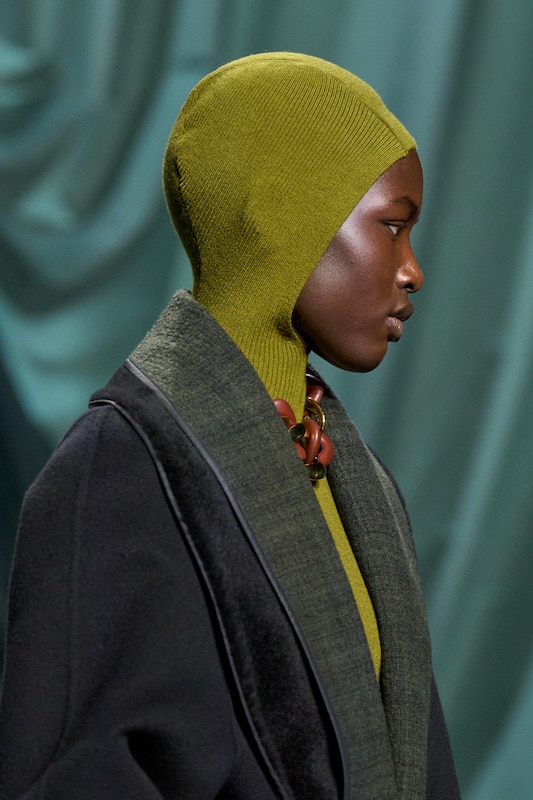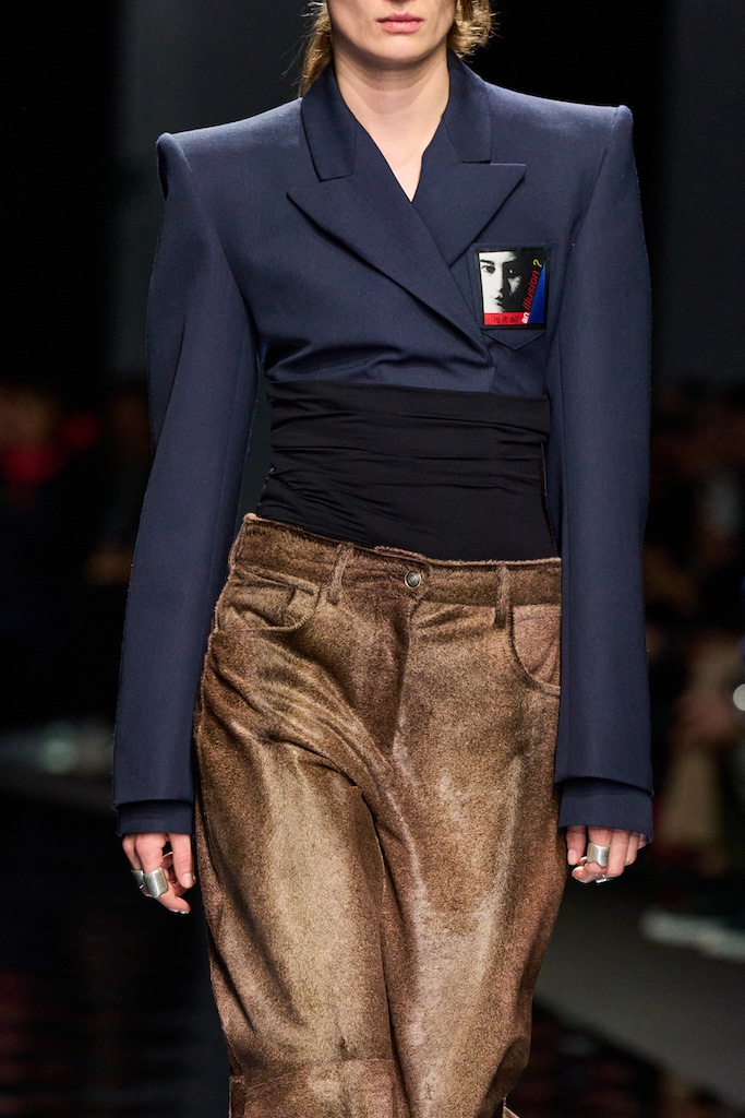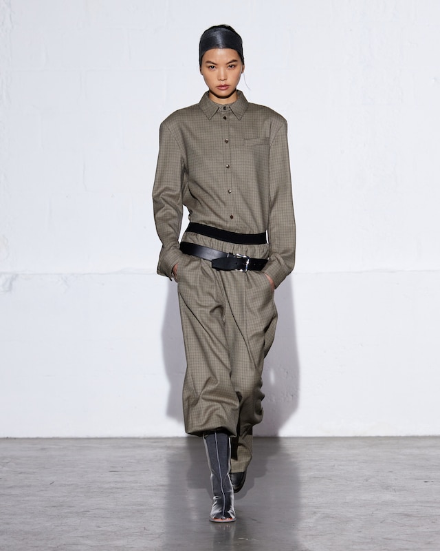This macrotrend embodies a visionary mindset, characterized by intelligence, adaptability, and forward-thinking. Rooted in corporate minimalism, this trend presents a future business look that reworks pieces with a fresh perspective. The aesthetic is both essential and refined, embracing simplified lines and sleek design elements that create almost clinical silhouettes with futuristic notions. At its core, this trend celebrates innovation and timelessness, seamlessly integrating tech elements into office wear to create a harmonious fusion of form and function. Each piece exudes a sense of understated elegance, with a focus on clean silhouettes and versatile styling. Bold color highlights punctuate the miniaml and sleek look, adding vibrancy and energy to the ensemble. Here monochrome silhouettes can be disrupted or new color-block can be explored. Sharp contours define each piece, contributing to the overall sense of precision and sophistication of the style. Embracing the mantra of „less is more,“ this trend prioritizes essential pieces that are both versatile and impactful, allowing for effortless integration into various wardrobes. The result is a shar revisited corporate look that offers a seamless transition from the office to any other setting.