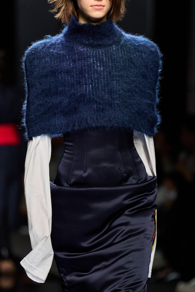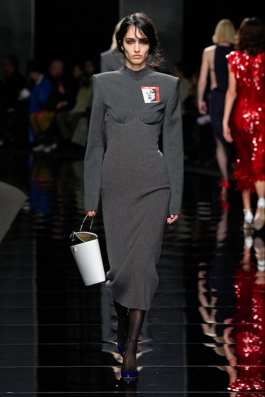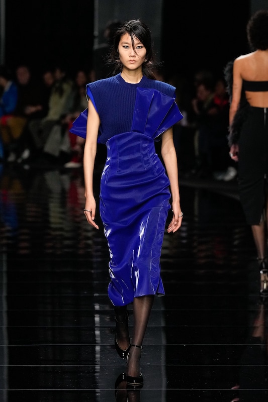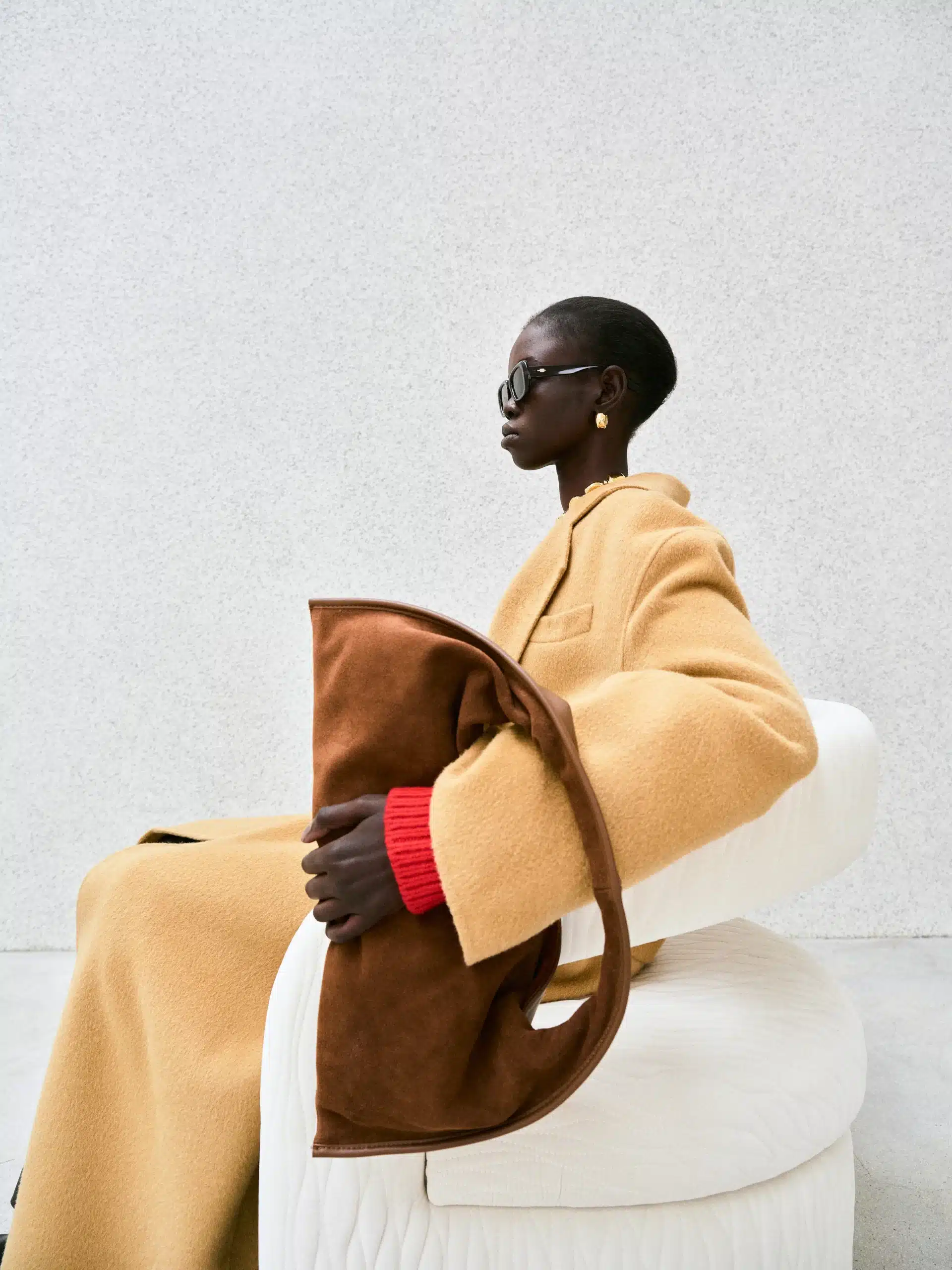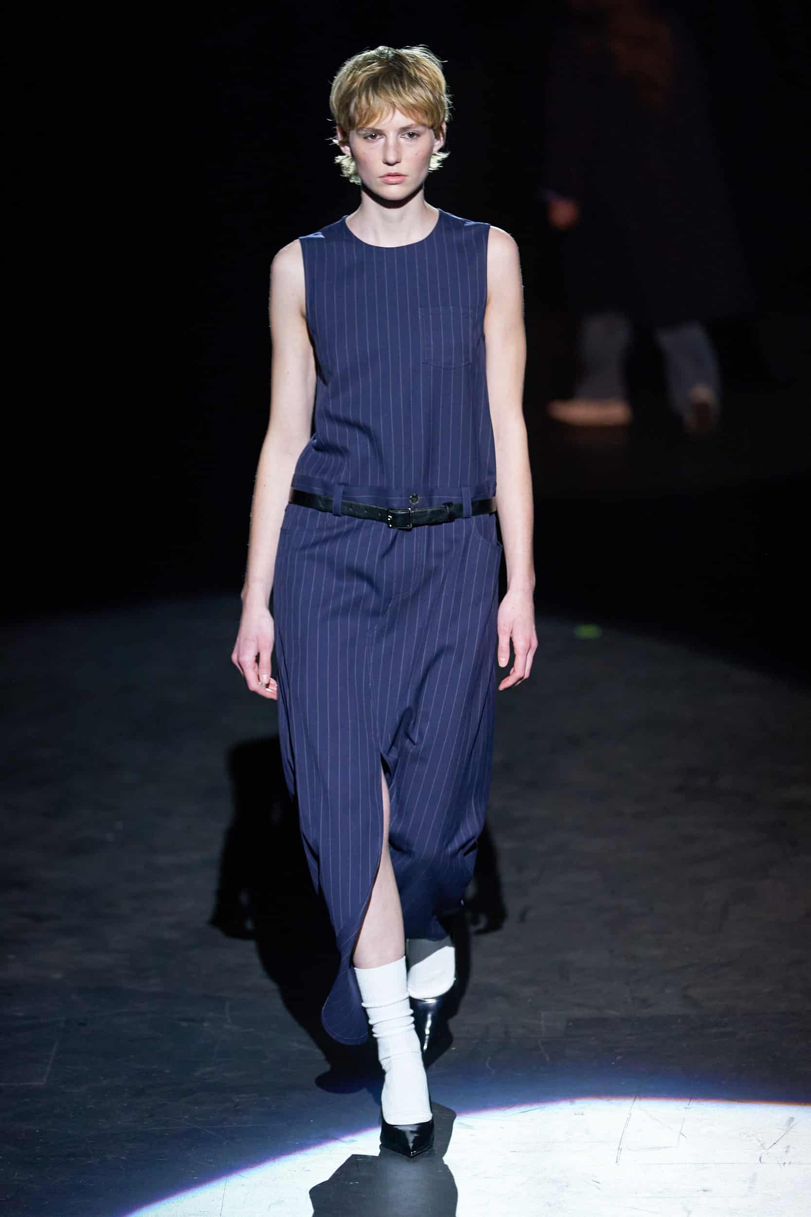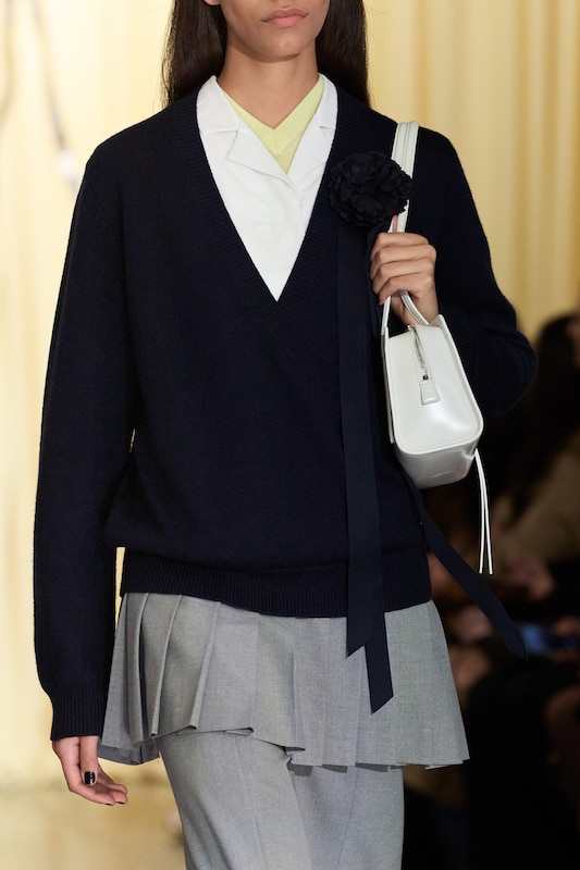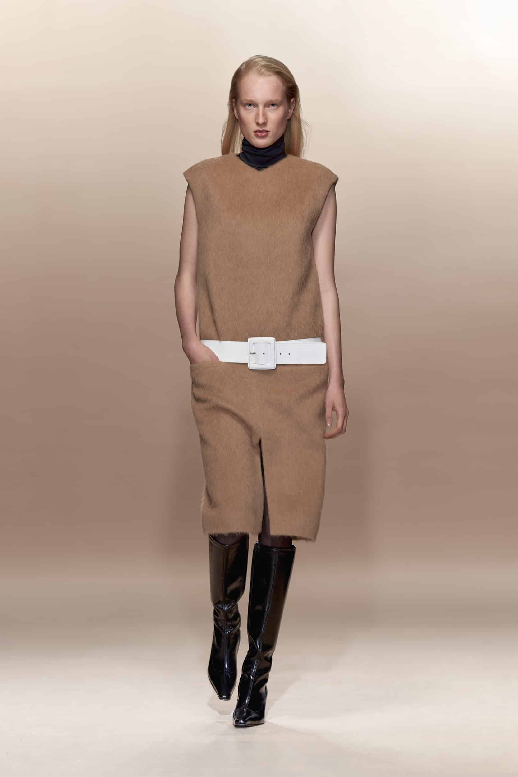 This macrotrend embodies a visionary mindset, characterized by intelligence, adaptability, and forward-thinking. Rooted in corporate minimalism, this trend presents a future business look that reworks pieces with a fresh perspective. The aesthetic is both essential and refined, embracing simplified lines and sleek design elements that create almost clinical silhouettes with futuristic notions. At its core, this trend celebrates innovation and timelessness, seamlessly integrating tech elements into office wear to create a harmonious fusion of form and function. Each piece exudes a sense of understated elegance, with a focus on clean silhouettes and versatile styling. Bold color highlights punctuate the miniaml and sleek look, adding vibrancy and energy to the ensemble. Here monochrome silhouettes can be disrupted or new color-block can be explored. Sharp contours define each piece, contributing to the overall sense of precision and sophistication of the style. Embracing the mantra of „less is more,“ this trend prioritizes essential pieces that are both versatile and impactful, allowing for effortless integration into various wardrobes. The result is a shar revisited corporate look that offers a seamless transition from the office to any other setting.