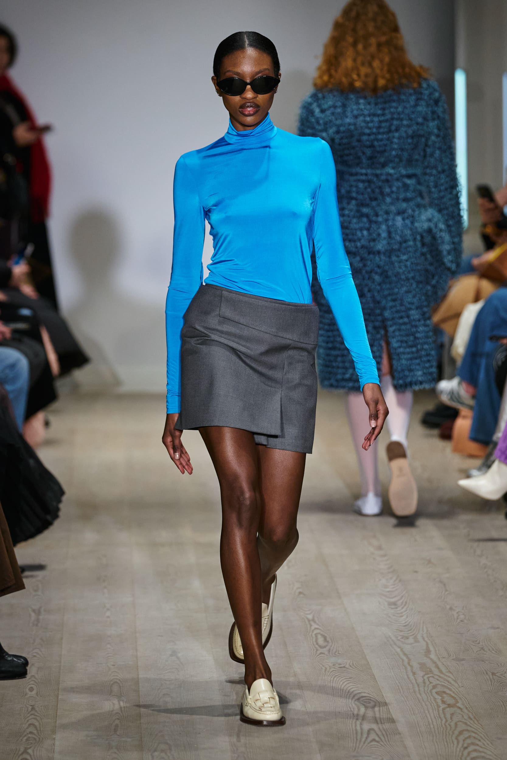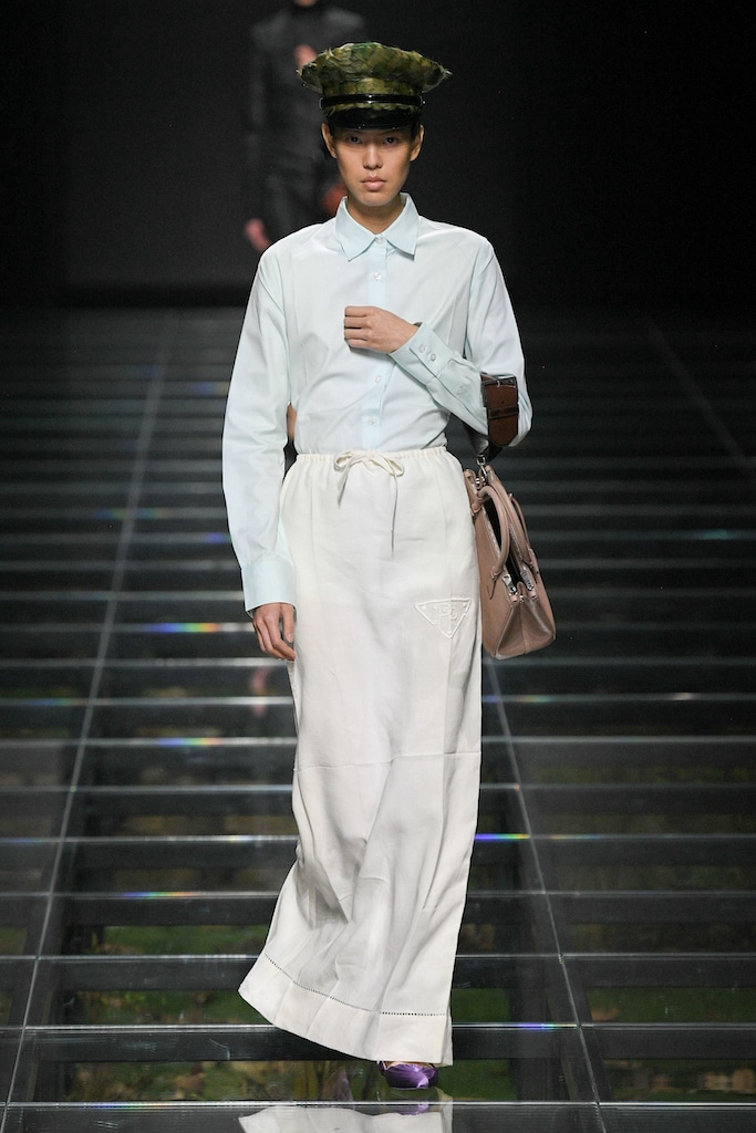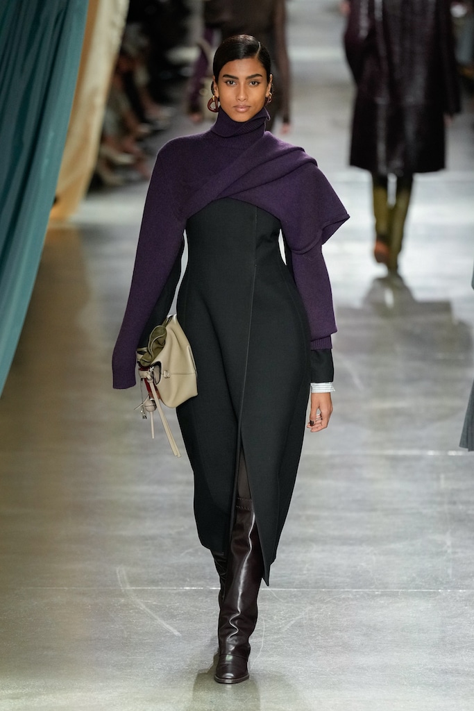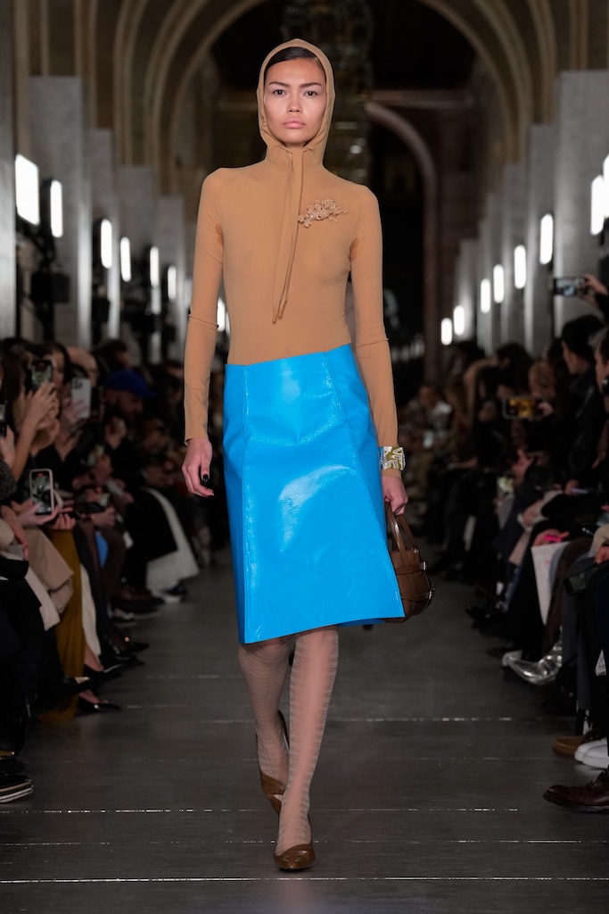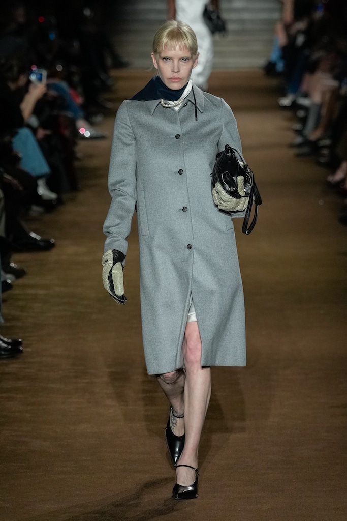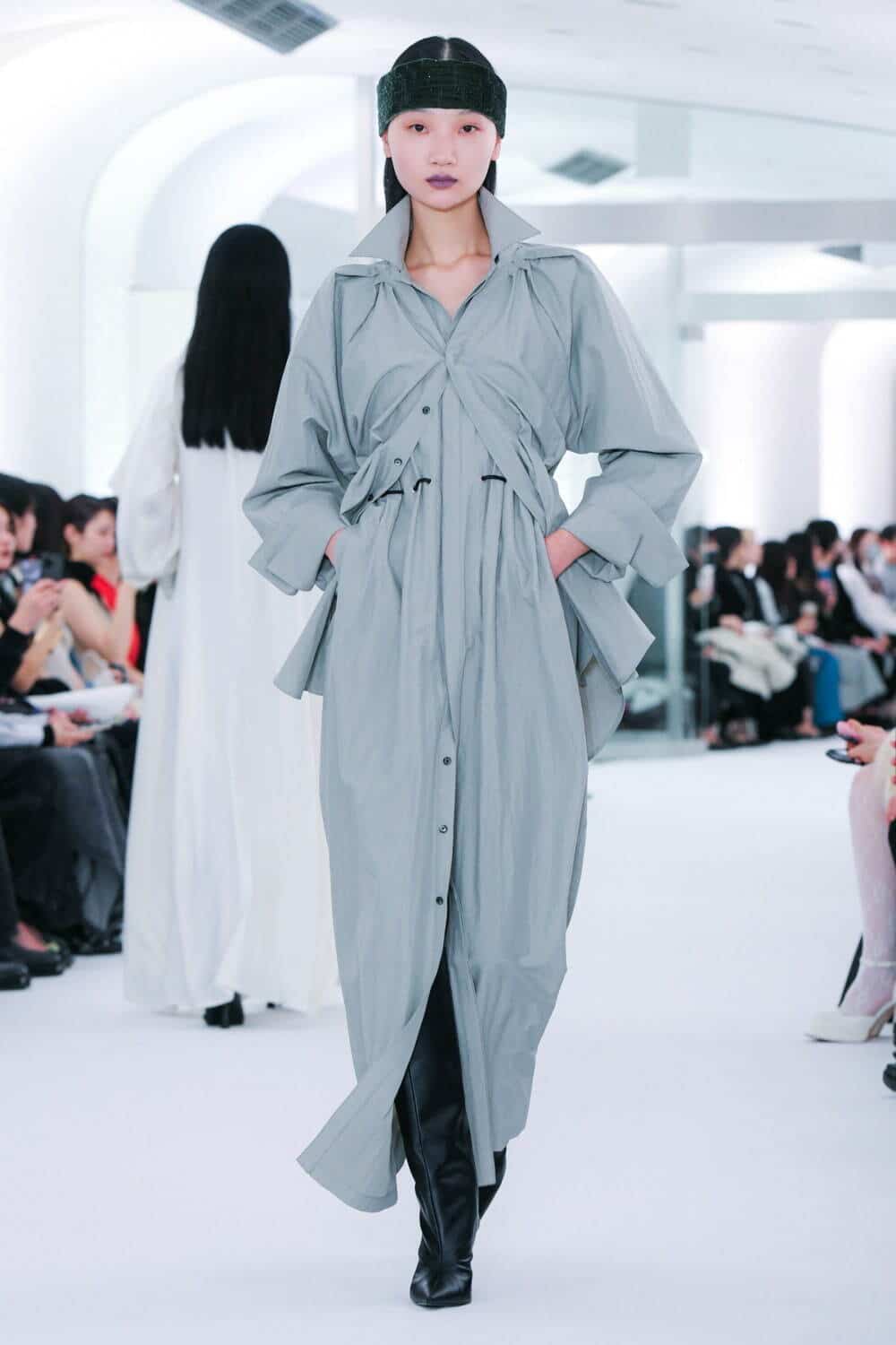 This macrotrend embodies a visionary mindset, characterized by intelligence, adaptability, and forward-thinking. Rooted in corporate minimalism, this trend presents a future business look that reworks pieces with a fresh perspective. The aesthetic is both essential and refined, embracing simplified lines and sleek design elements that create almost clinical silhouettes with futuristic notions. At its core, this trend celebrates innovation and timelessness, seamlessly integrating tech elements into office wear to create a harmonious fusion of form and function. Each piece exudes a sense of understated elegance, with a focus on clean silhouettes and versatile styling. Bold color highlights punctuate the miniaml and sleek look, adding vibrancy and energy to the ensemble. Here monochrome silhouettes can be disrupted or new color-block can be explored. Sharp contours define each piece, contributing to the overall sense of precision and sophistication of the style. Embracing the mantra of „less is more,“ this trend prioritizes essential pieces that are both versatile and impactful, allowing for effortless integration into various wardrobes. The result is a shar revisited corporate look that offers a seamless transition from the office to any other setting.