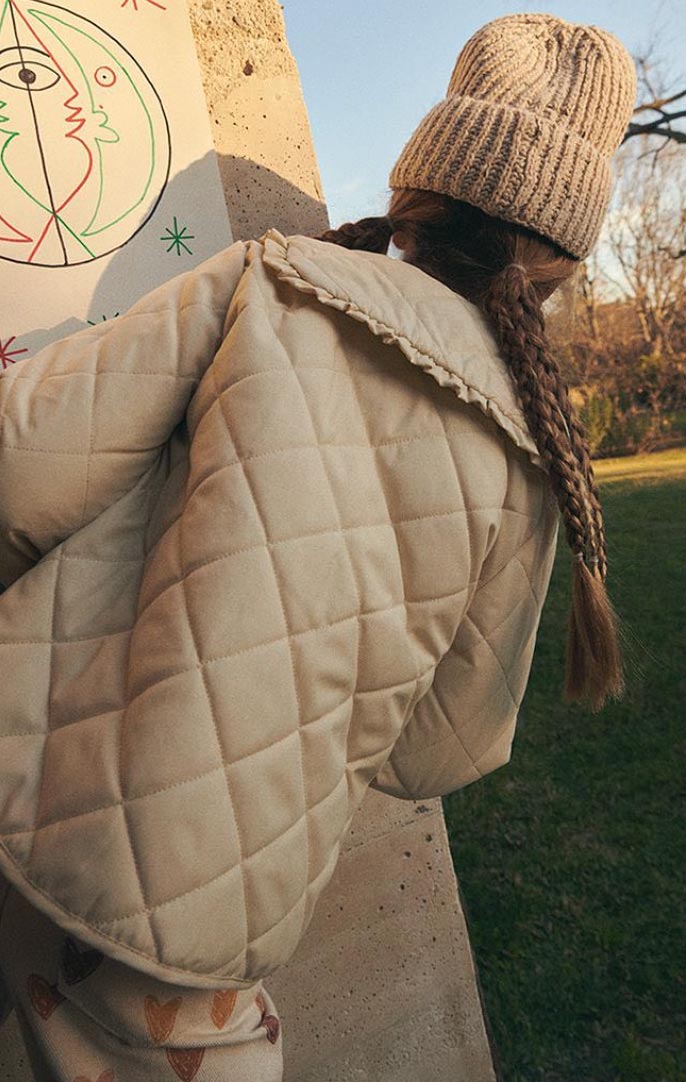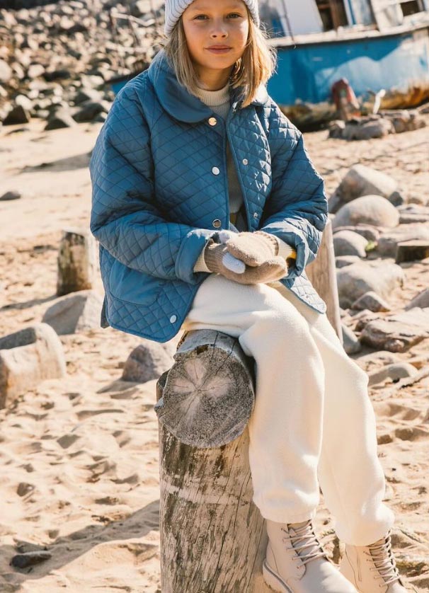The Poetic Outdoors trend embodies the essence of serene adventures and tranquil retreats, merging the quiet utility of functional design with the cozy comfort of home. Inspired by serene nature and the simplicity of the outdoors, this trend emphasizes tranquility and purity through subtle, textural details. Subtle mouliné knits and soft wadding offer a comforting embrace, while brushed yarns and polar fleece provide warmth and softness, perfect for exploring or unwinding. Dreamy fair-isle patterns evoke a sense of nostalgia and heritage, bringing a touch of whimsy to the collection. Corduroy adds a classic, tactile dimension, while nomadic toggles enhance the trend with a nod to rustic, adventurous journeys. This combination of materials and textures creates a harmonious blend of practicality and coziness, ideal for those seeking solace in nature or the comfort of a well-loved home environment. The Poetic Outdoors trend captures the essence of a quiet, reflective lifestyle, where the boundaries between indoor comfort and outdoor exploration blur. It invites individuals to embrace a slower pace, reconnect with nature, and find tranquility in the simple, timeless elements of their surroundings.