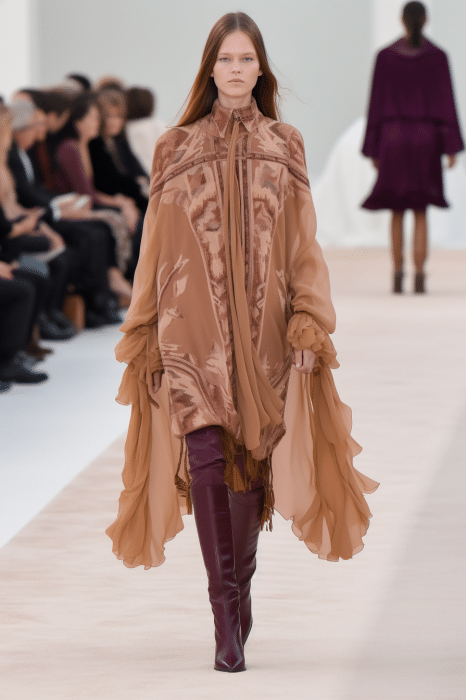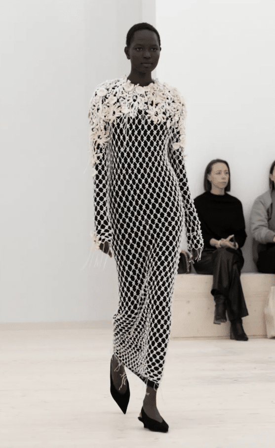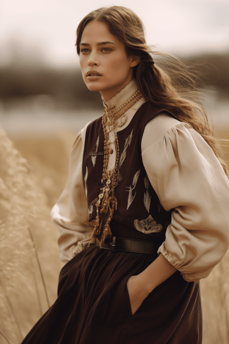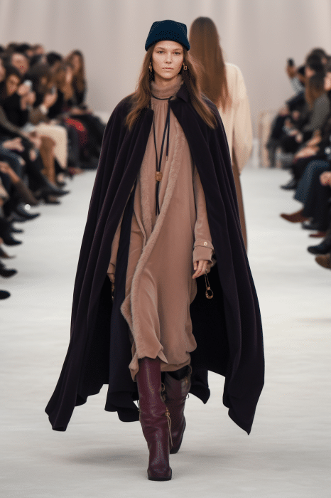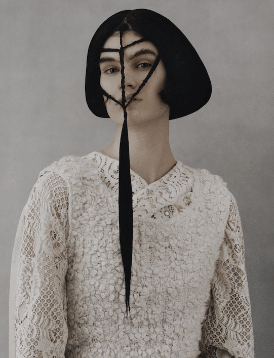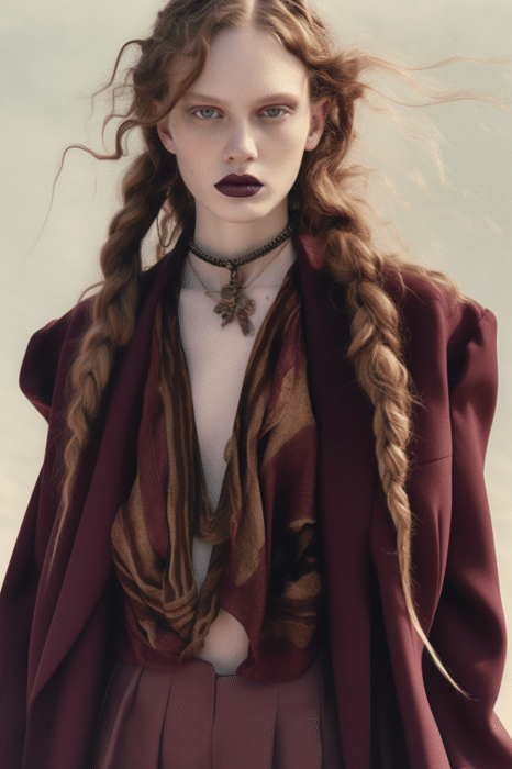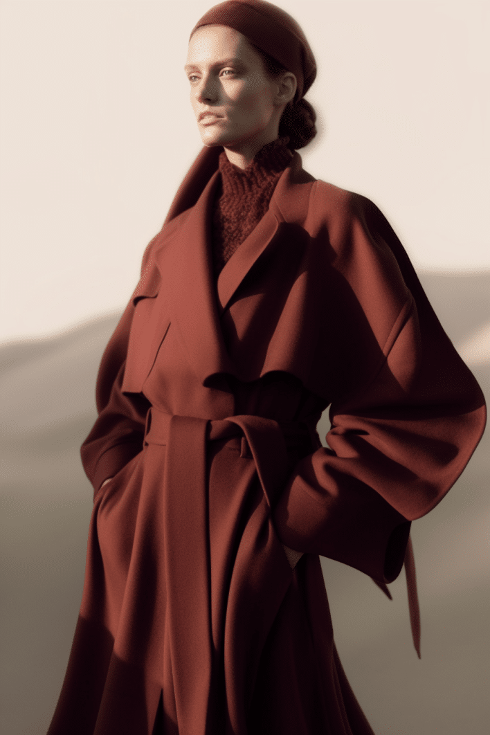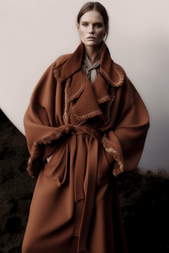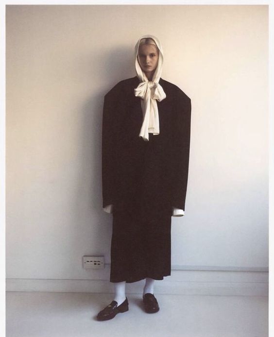 The macrotrend channels a mindset of restorative contemplation, drawing inspiration from austere ancestral traditions. Here, prevailing rigor and restraint are reviewed through more surereal lenses. It evokes a sense of reverence for past tarditions while embracing the present moment with inner peace and mindfulness. The aesthetic narrative unfolds from monk to priestess, where simplicity and modesty intertwine with a sense of splendor. Surreal modest dressing takes center stage. In black and whites, minimal monk-like silhouettes exude a sense of sacred elegance. While sacred nomads come in caped styles to add a touch of drama and mystique to the story. Heirloom additions of lace, openwork, or crafted knits and fringes add a touch of artisanal craftsmanship and heritage. Primal elements and ceremonial minimalism are underlining new looks and connect us to earth and spirituality. Each piece exudes a sense of active zen, inviting wearers to find plenitude in movement and stillness alike. This trend puts a focus on artisanal craftsmanship and heritage, creating a sense of connection to our roots. Overall, it offers a sanctuary in a fast-paced world, embracing the beauty of simplicity and finding solace in the timeless traditions of the past. It‘s a reminder to slow down, reflect, and find beauty in the quiet moments of life.