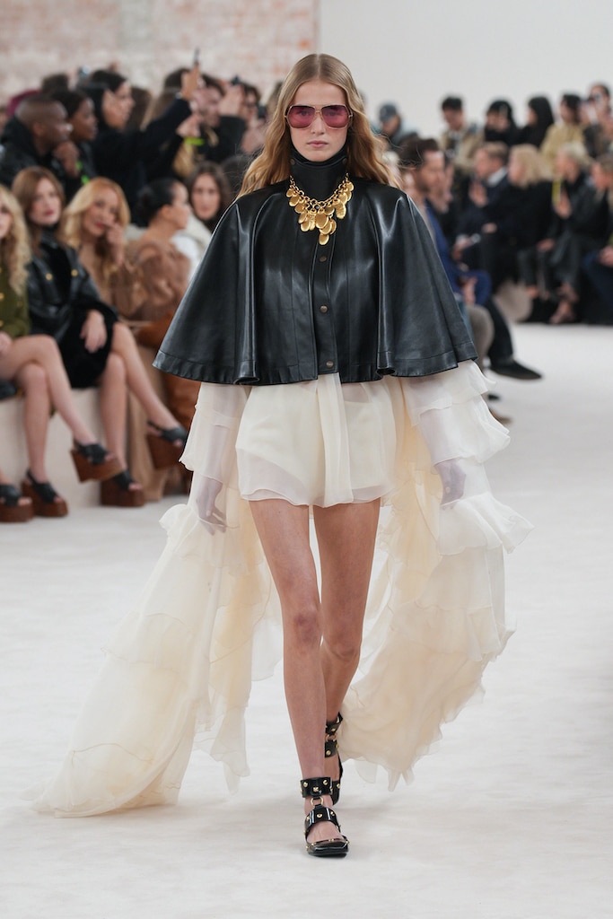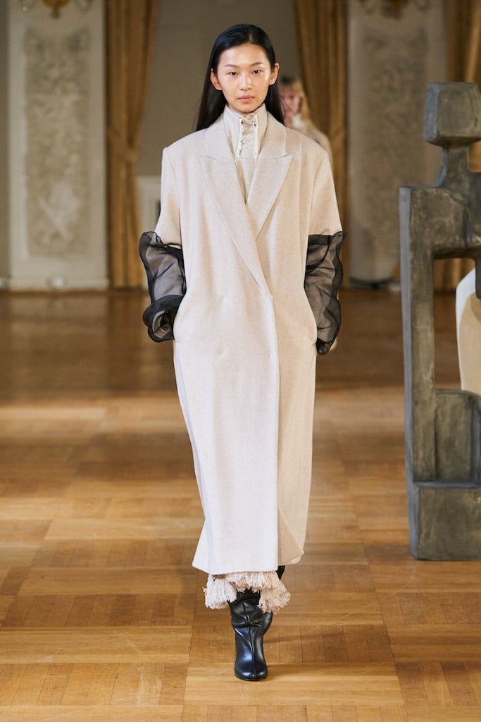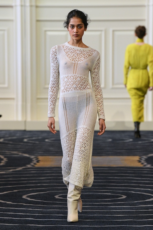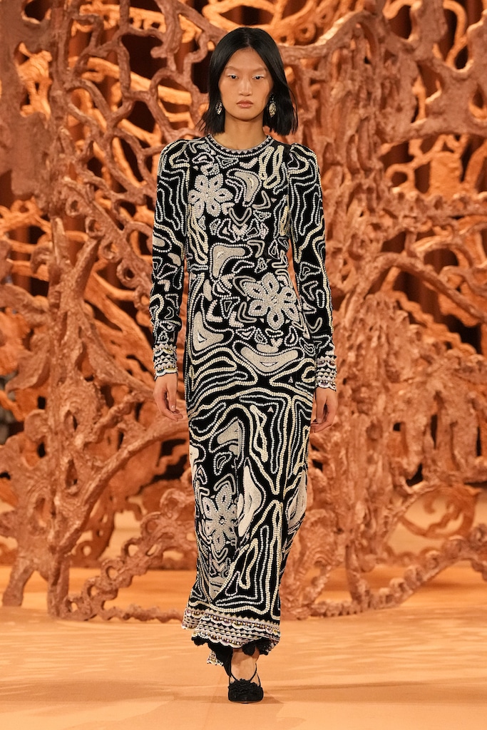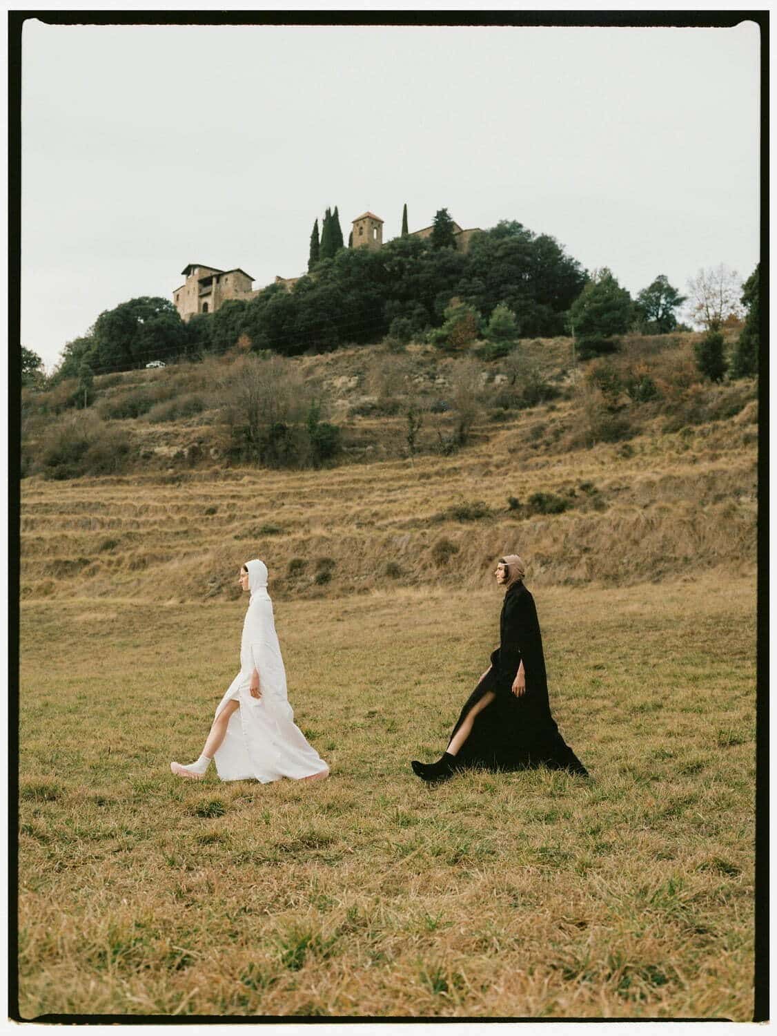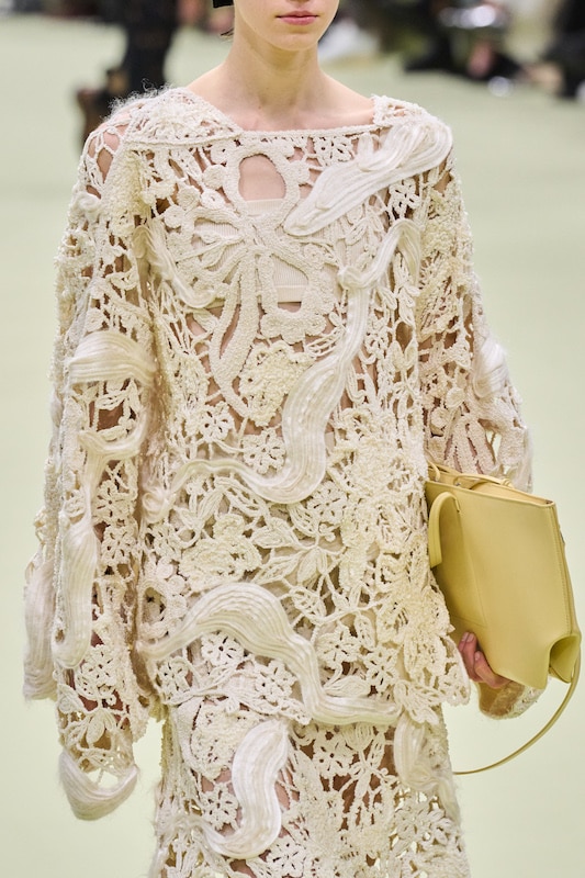 The macrotrend channels a mindset of restorative contemplation, drawing inspiration from austere ancestral traditions. Here, prevailing rigor and restraint are reviewed through more surereal lenses. It evokes a sense of reverence for past tarditions while embracing the present moment with inner peace and mindfulness. The aesthetic narrative unfolds from monk to priestess, where simplicity and modesty intertwine with a sense of splendor. Surreal modest dressing takes center stage. In black and whites, minimal monk-like silhouettes exude a sense of sacred elegance. While sacred nomads come in caped styles to add a touch of drama and mystique to the story. Heirloom additions of lace, openwork, or crafted knits and fringes add a touch of artisanal craftsmanship and heritage. Primal elements and ceremonial minimalism are underlining new looks and connect us to earth and spirituality. Each piece exudes a sense of active zen, inviting wearers to find plenitude in movement and stillness alike. This trend puts a focus on artisanal craftsmanship and heritage, creating a sense of connection to our roots. Overall, it offers a sanctuary in a fast-paced world, embracing the beauty of simplicity and finding solace in the timeless traditions of the past. It‘s a reminder to slow down, reflect, and find beauty in the quiet moments of life.