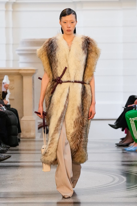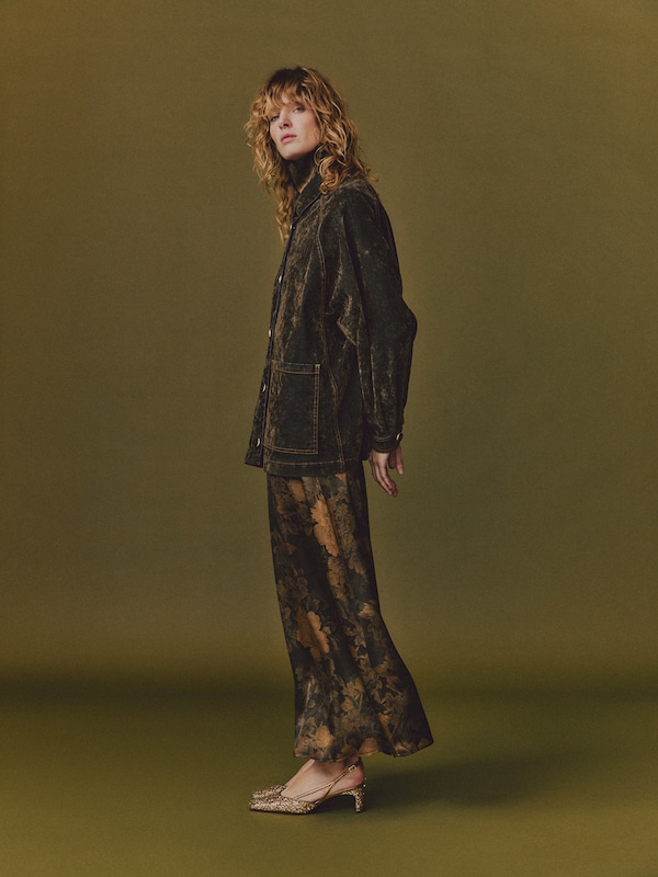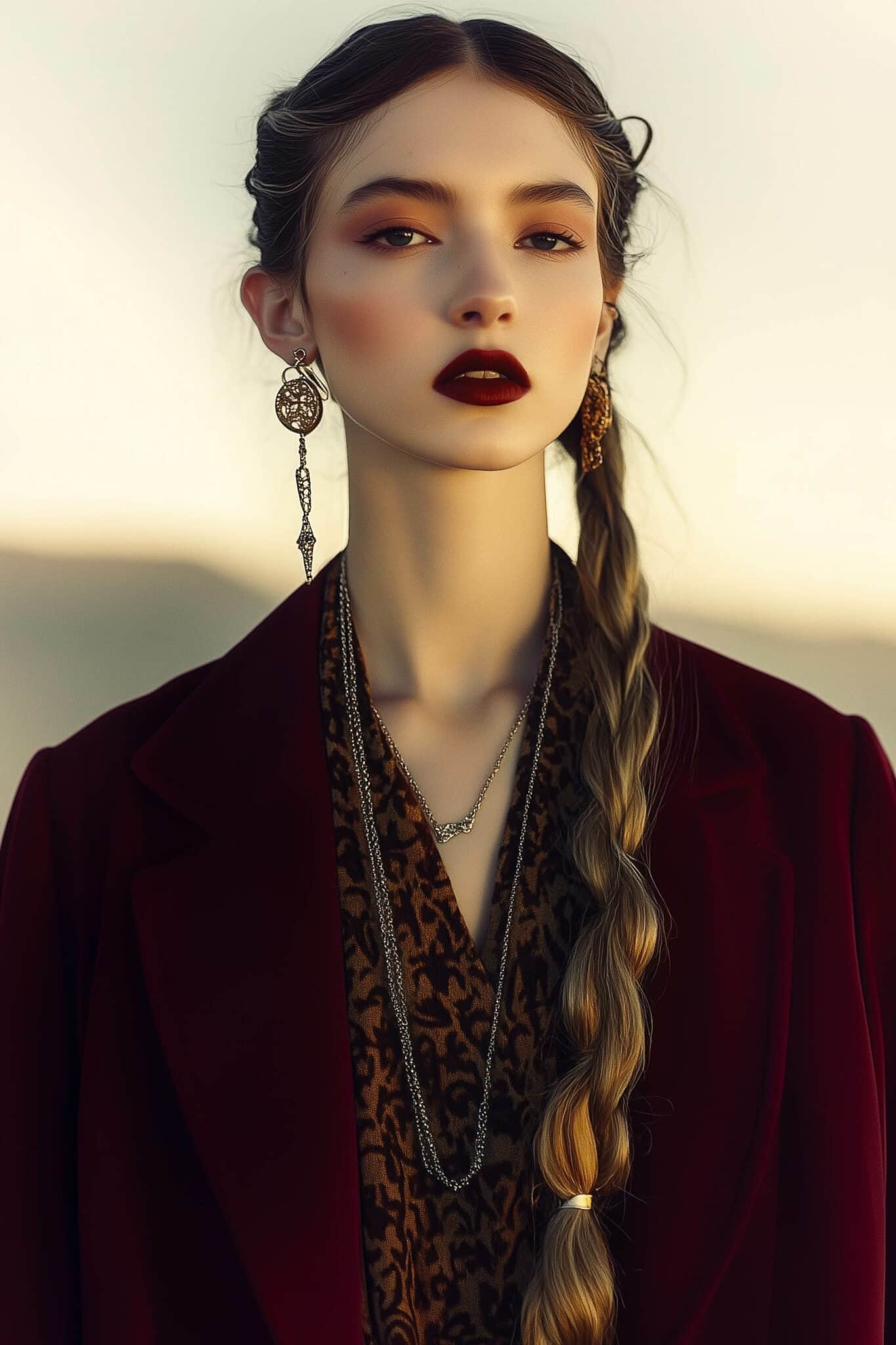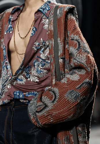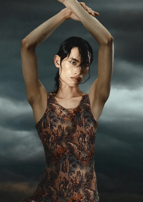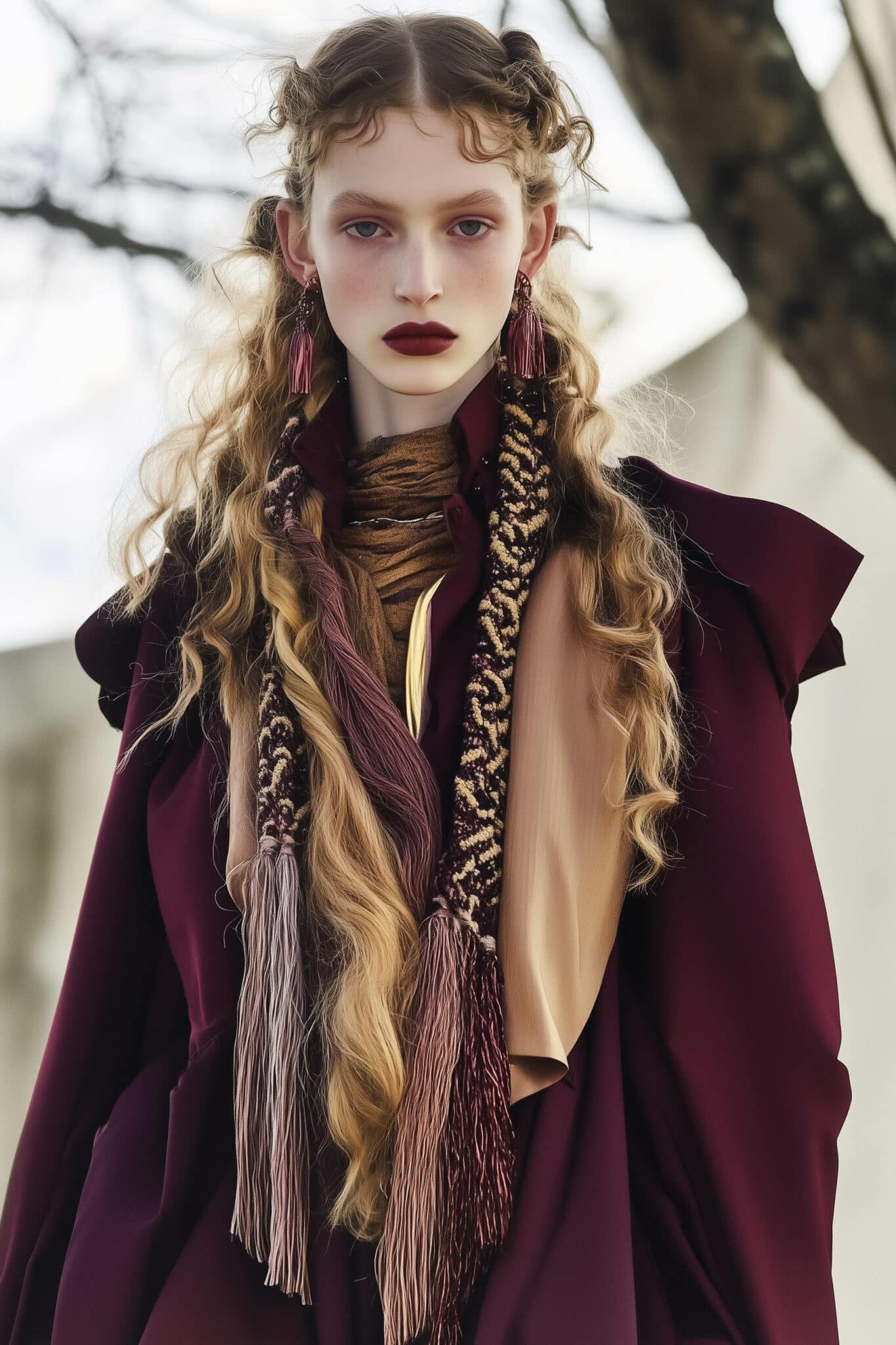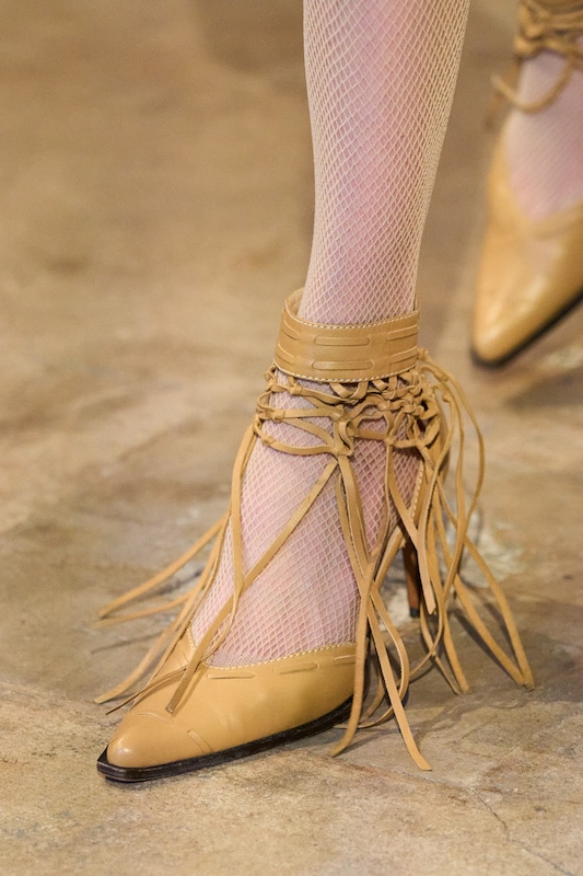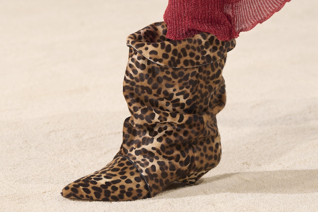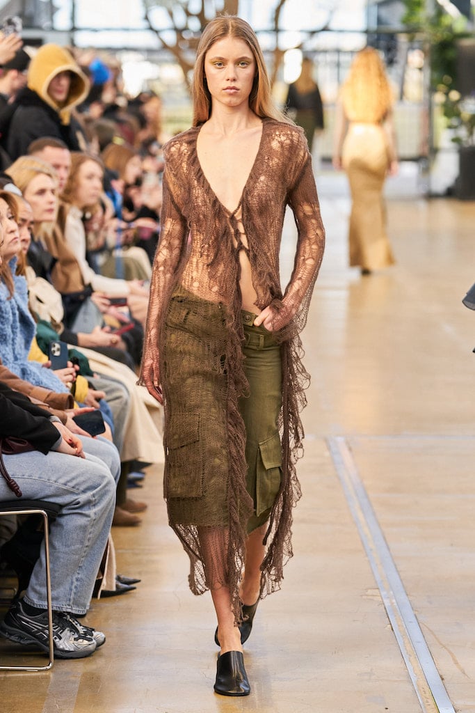 The aesthetic narrative fuses earthy stories and celestial notions, crafting new nomadic silhouettes in maxi length that billow with the whispers of ancient wisdom. Primal bohemian patterns embellish textiles, while layering and drapes create a sense of mystery. Chic silhouettes are juxtaposed with wilderness textiles and color palettes, marrying urban sophistication with the raw beauty of the untamed wilderness.